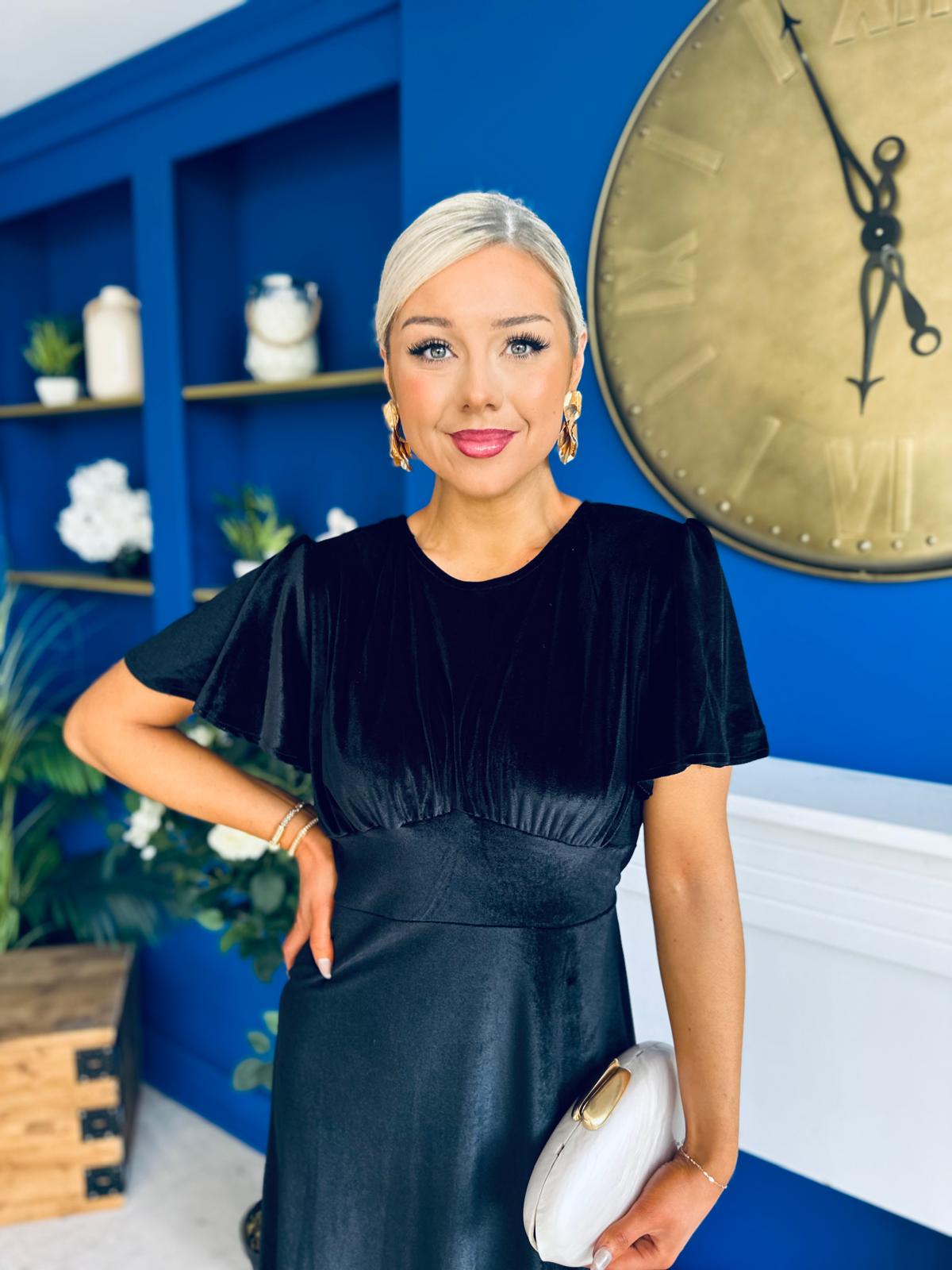 Maggie Angel Sleeve Velvet Occasion Dress Black