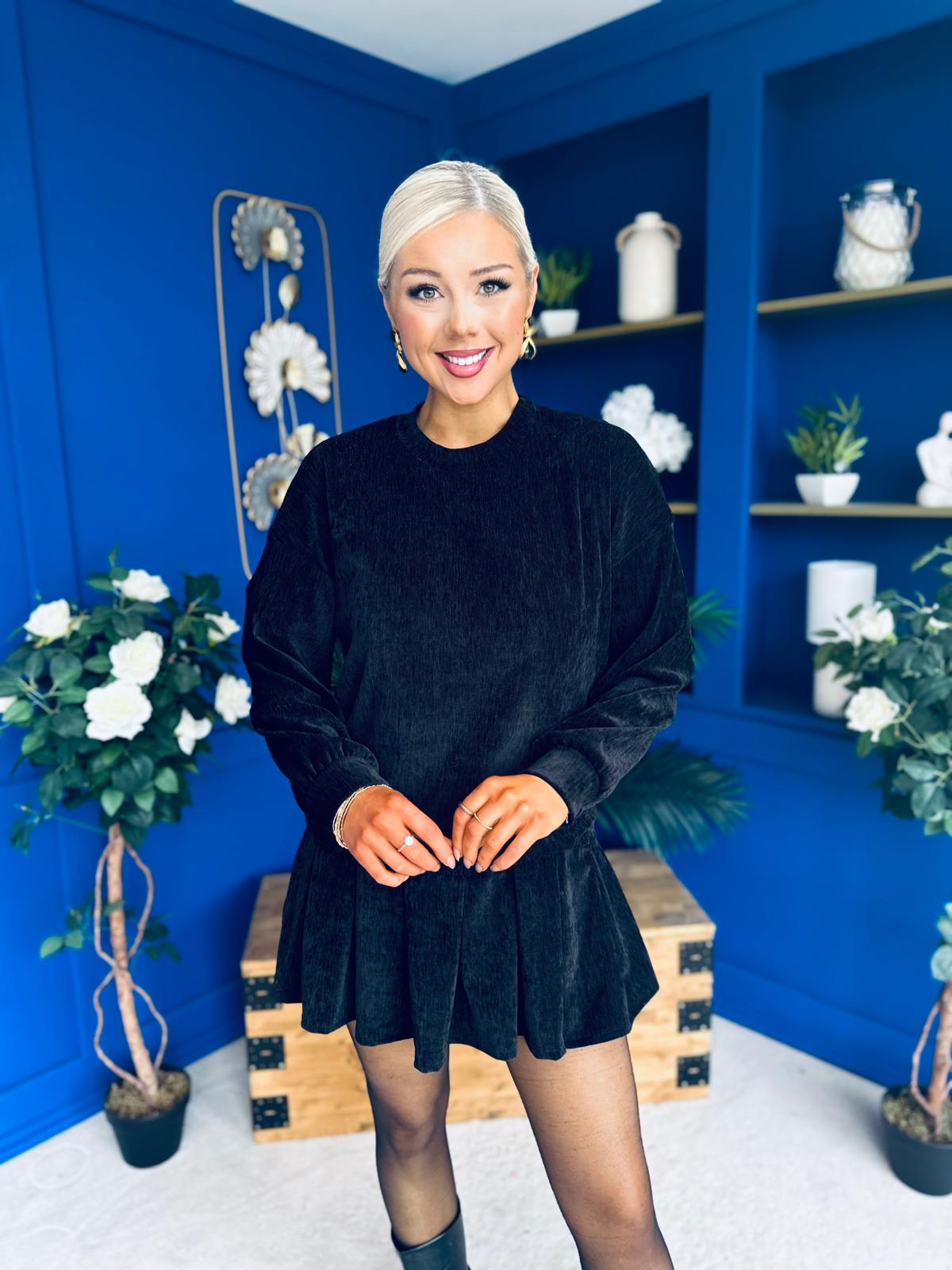 Crafted in a shape holding velvet material, full sleeve and flowing pleated skirt create a stand out country chic look