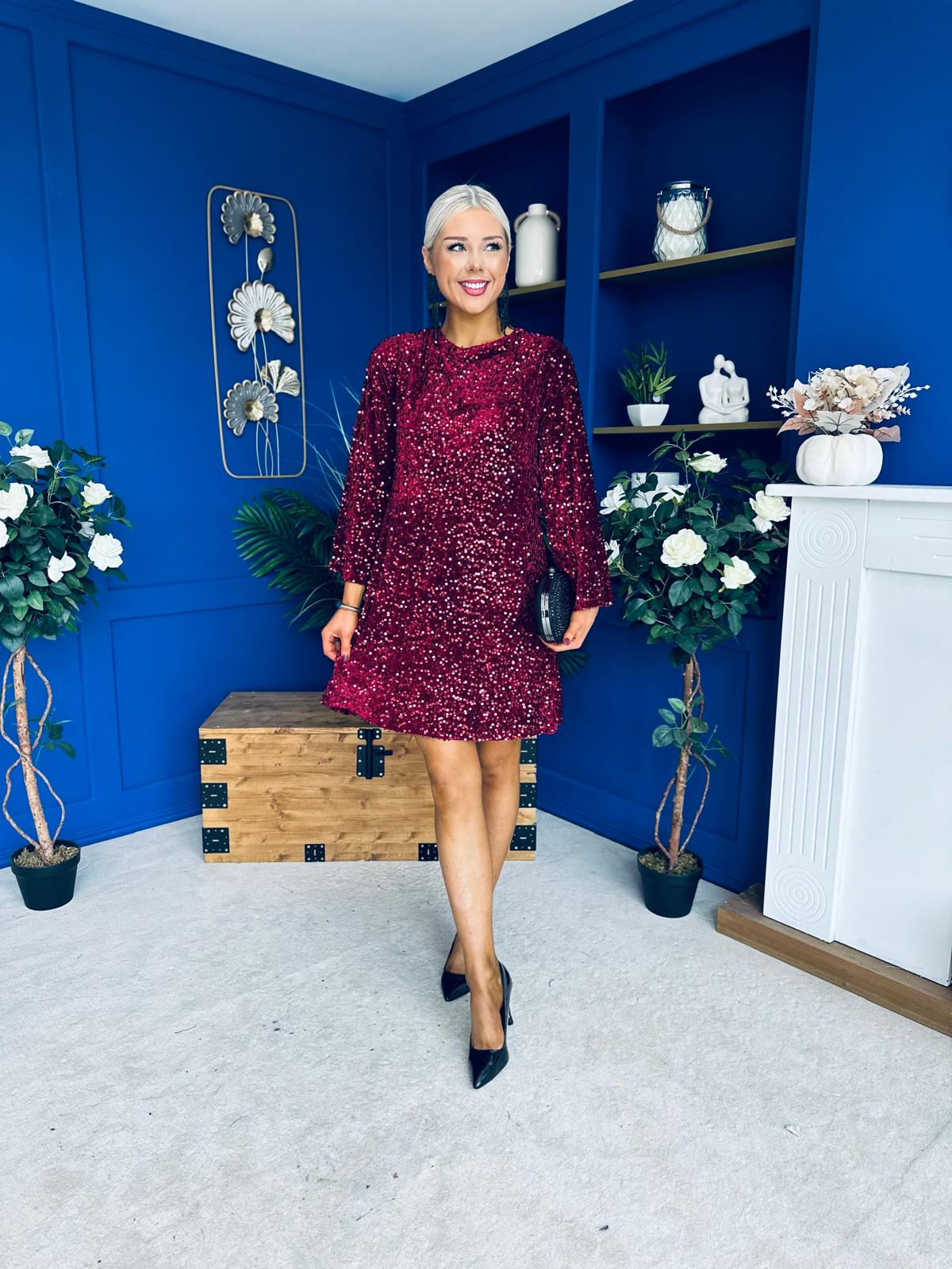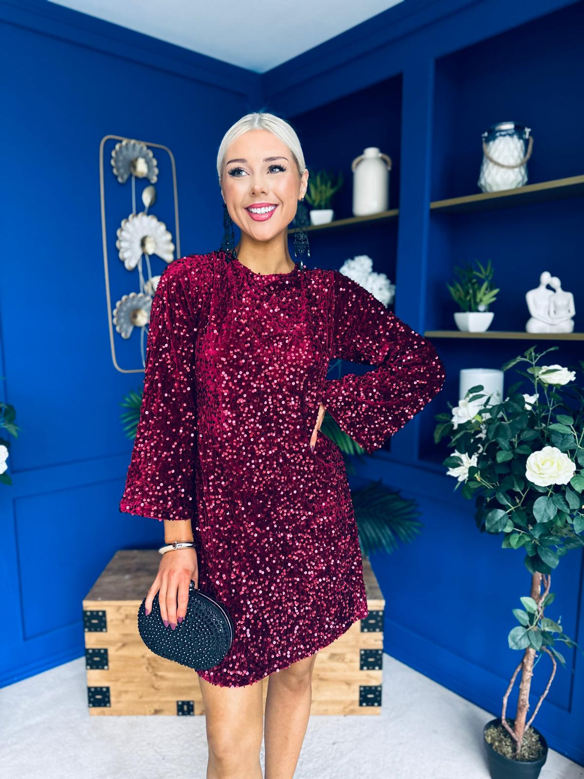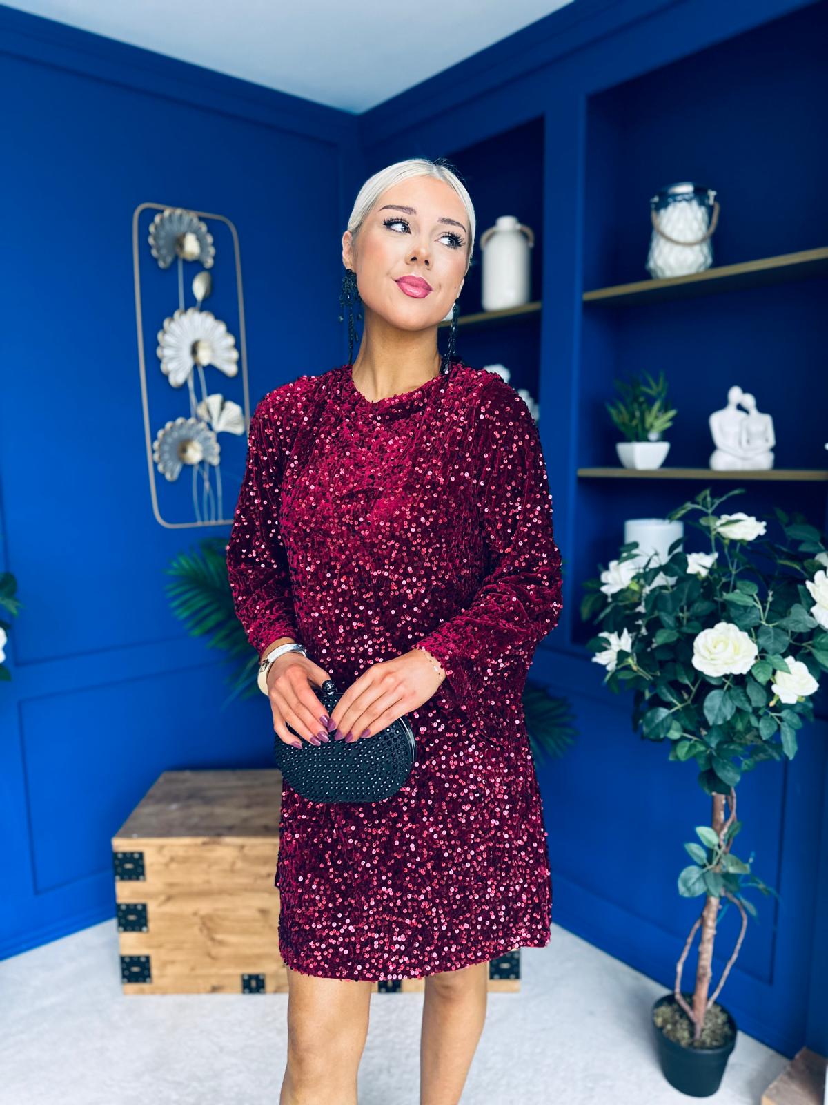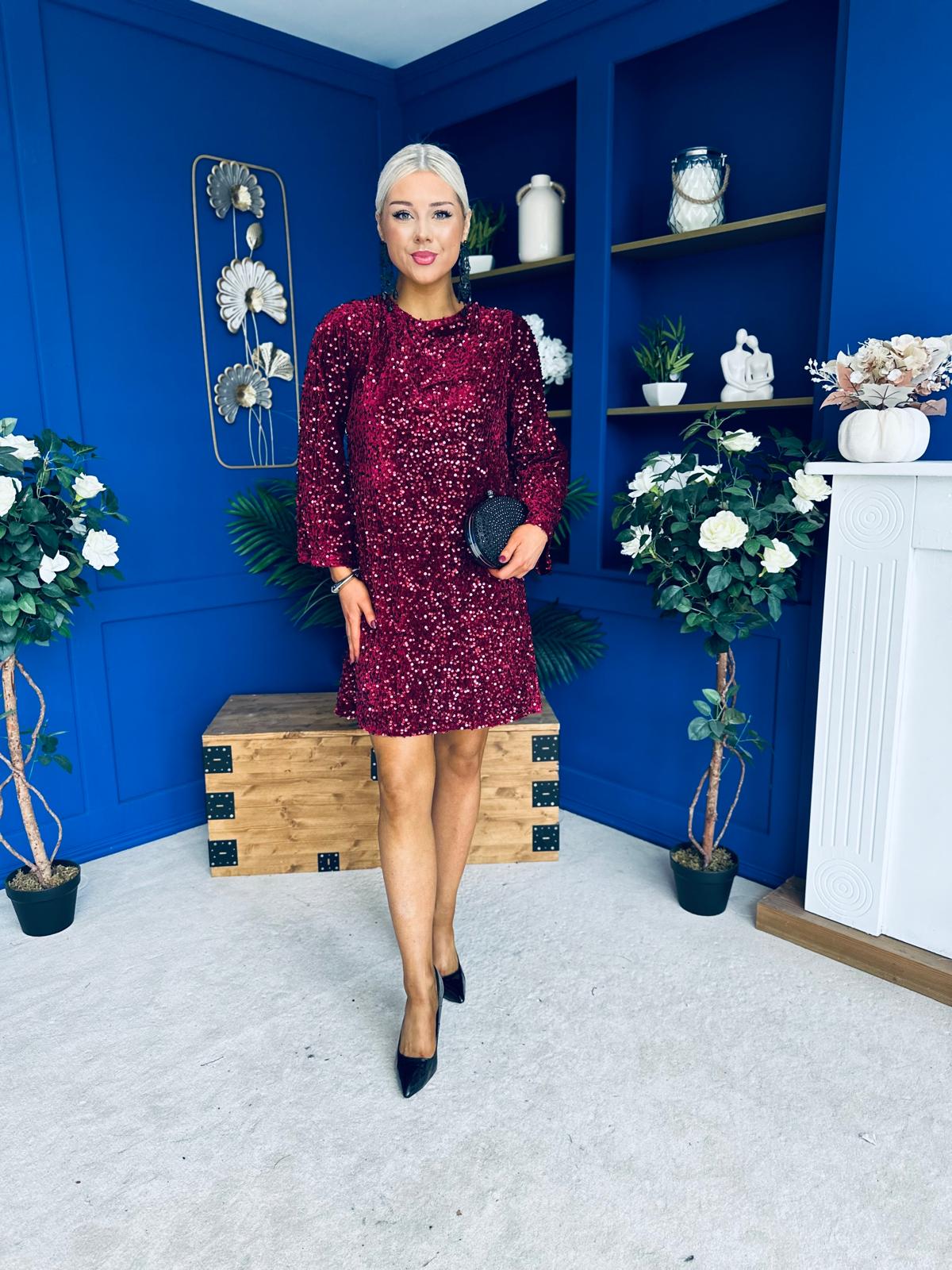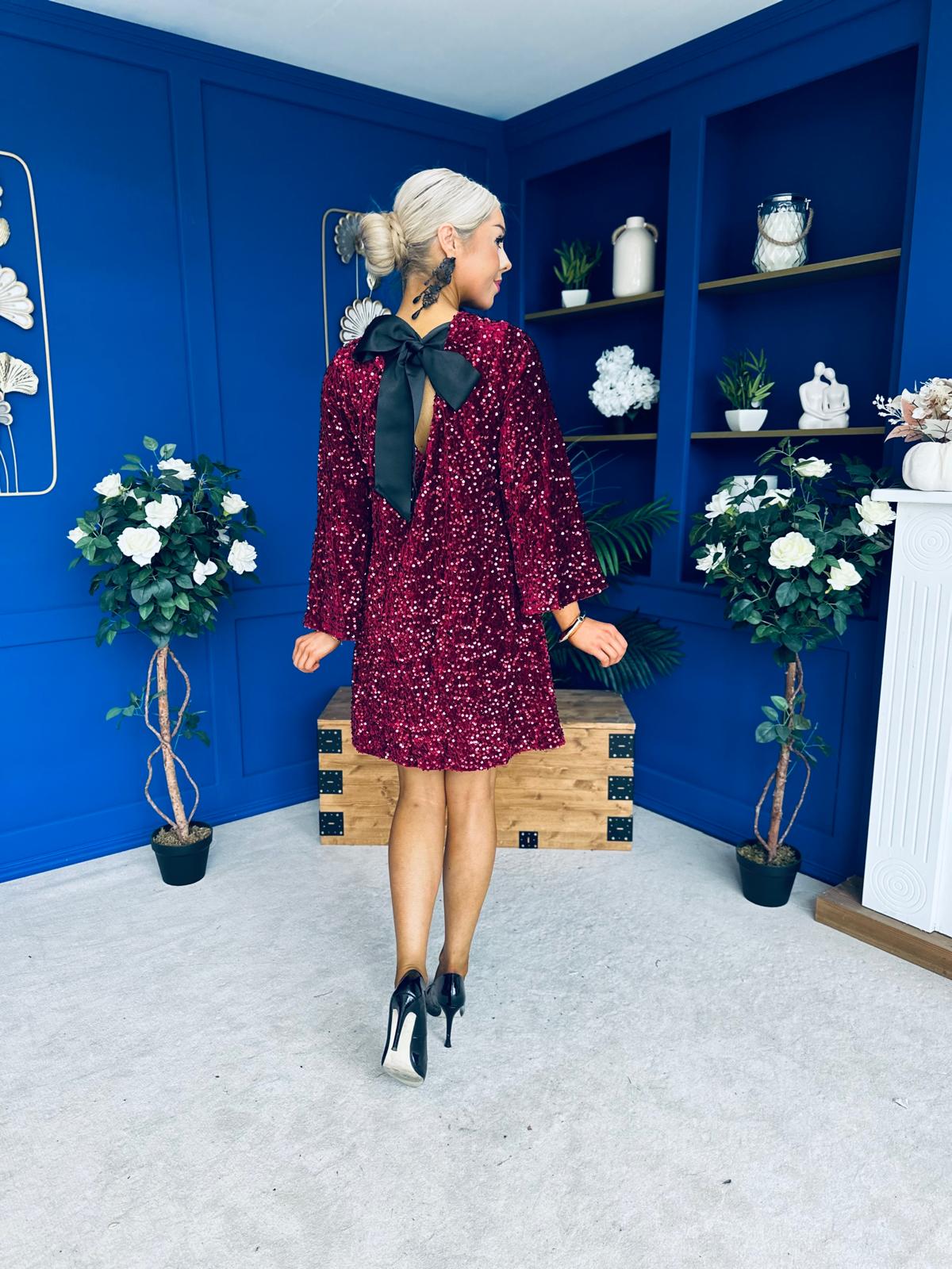 Marlie Bow Detail Sequin Mini Dress Burgundy
