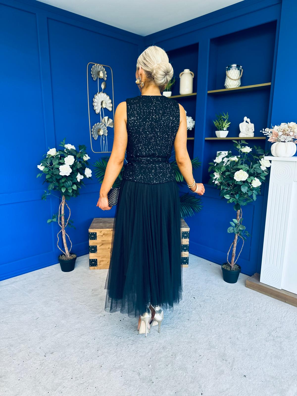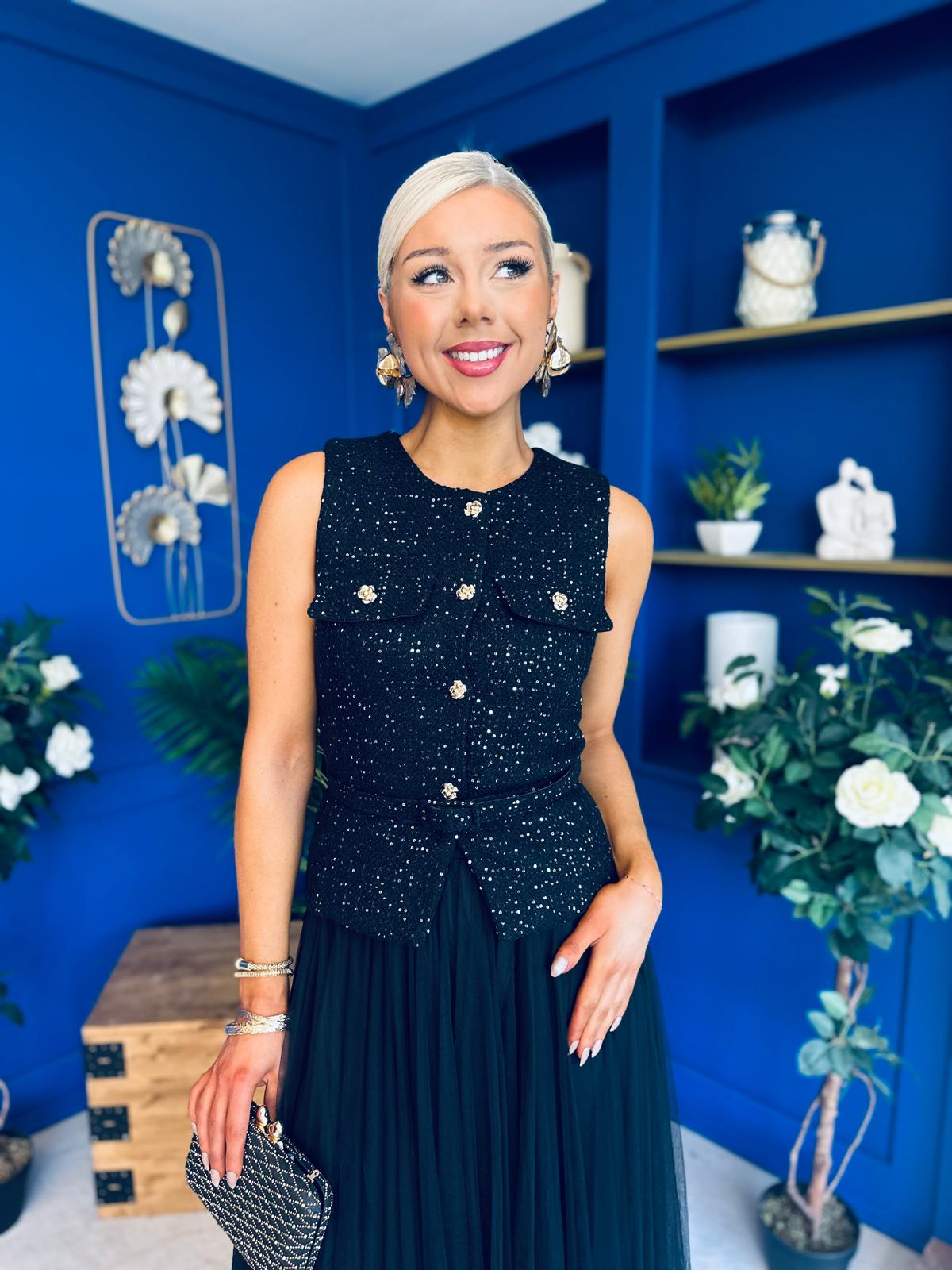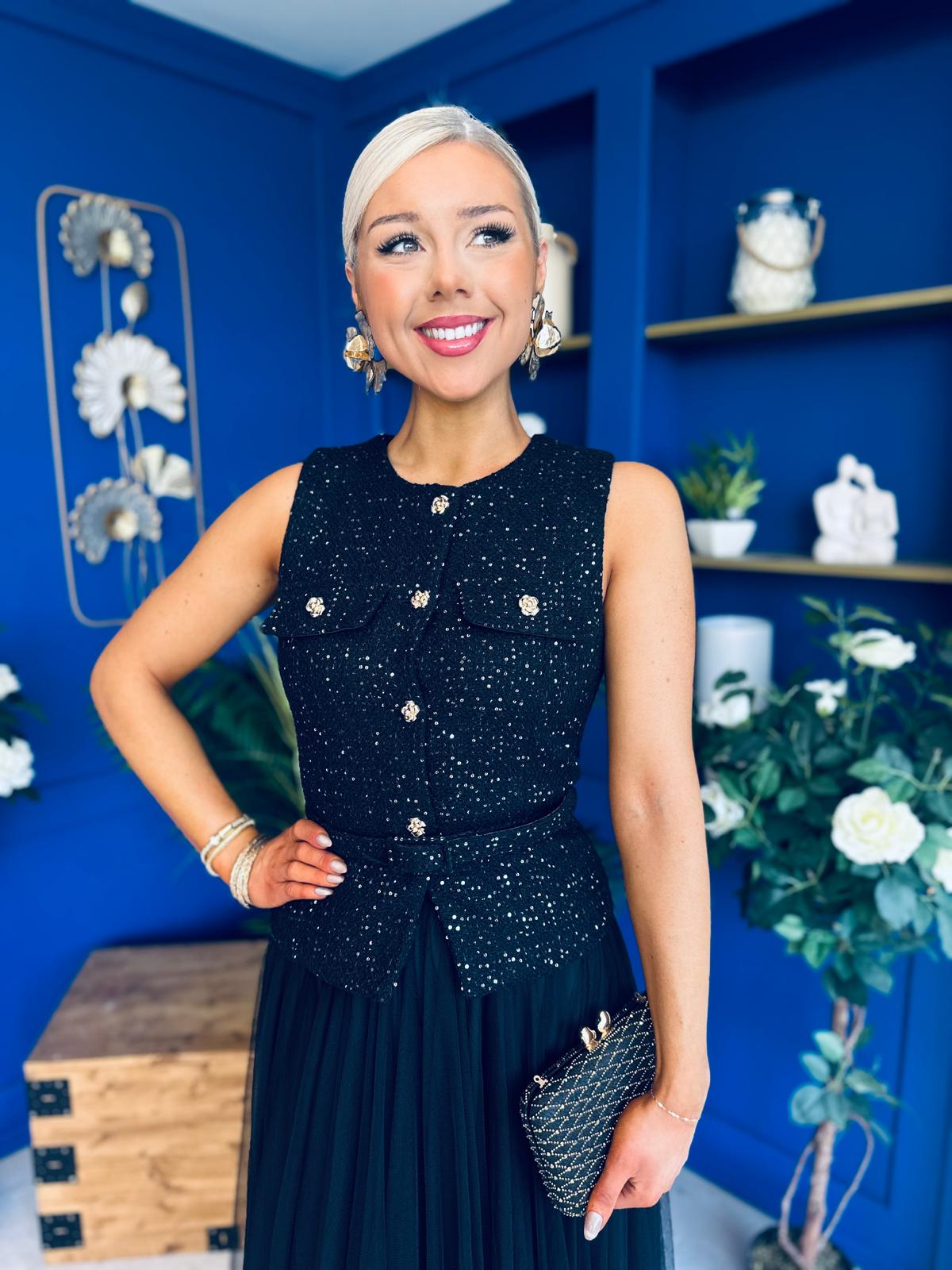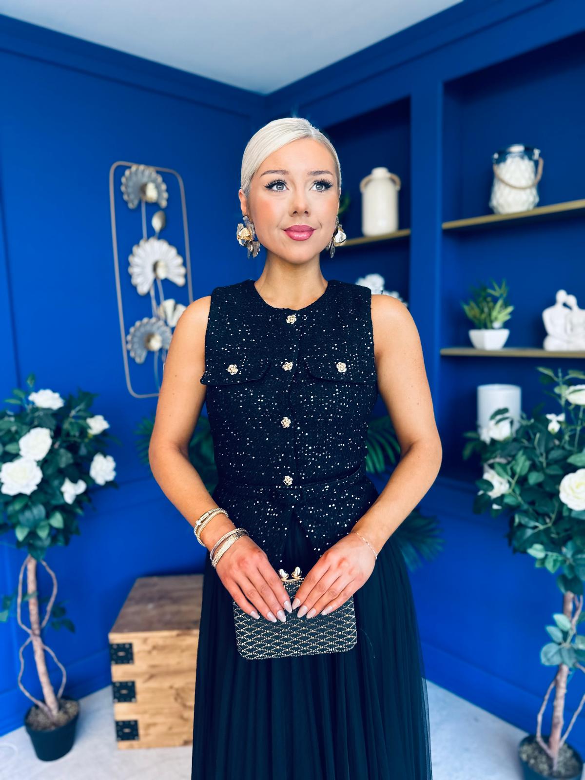 A stylish waistcoat in a luxurious Fabric with a touch of sequin.