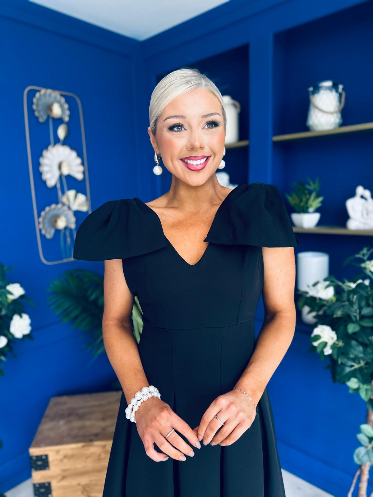 Our new Matilda Occasion Dress with bow shoulder detail is simply divine.