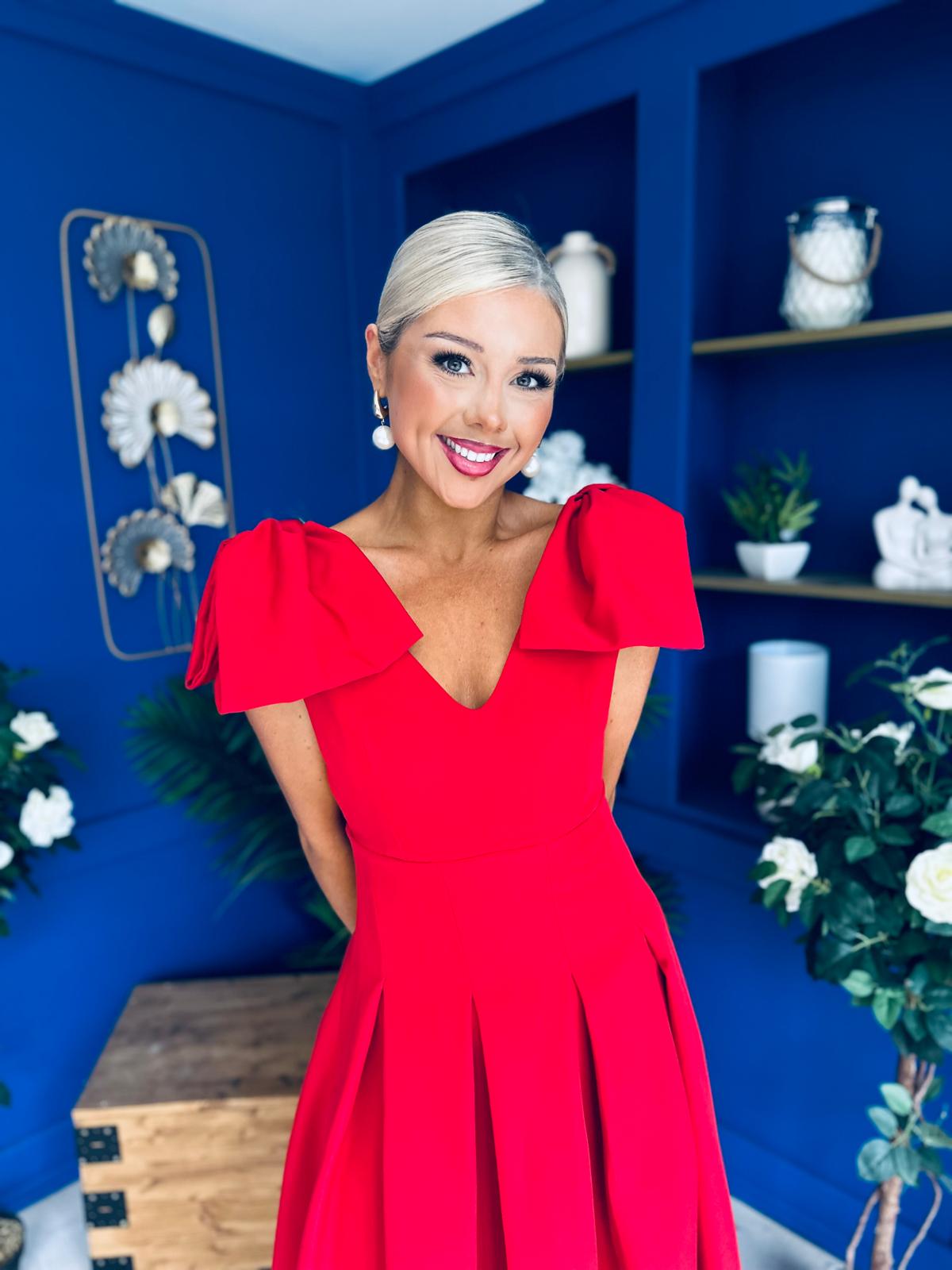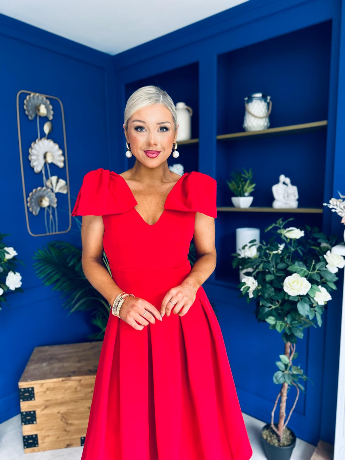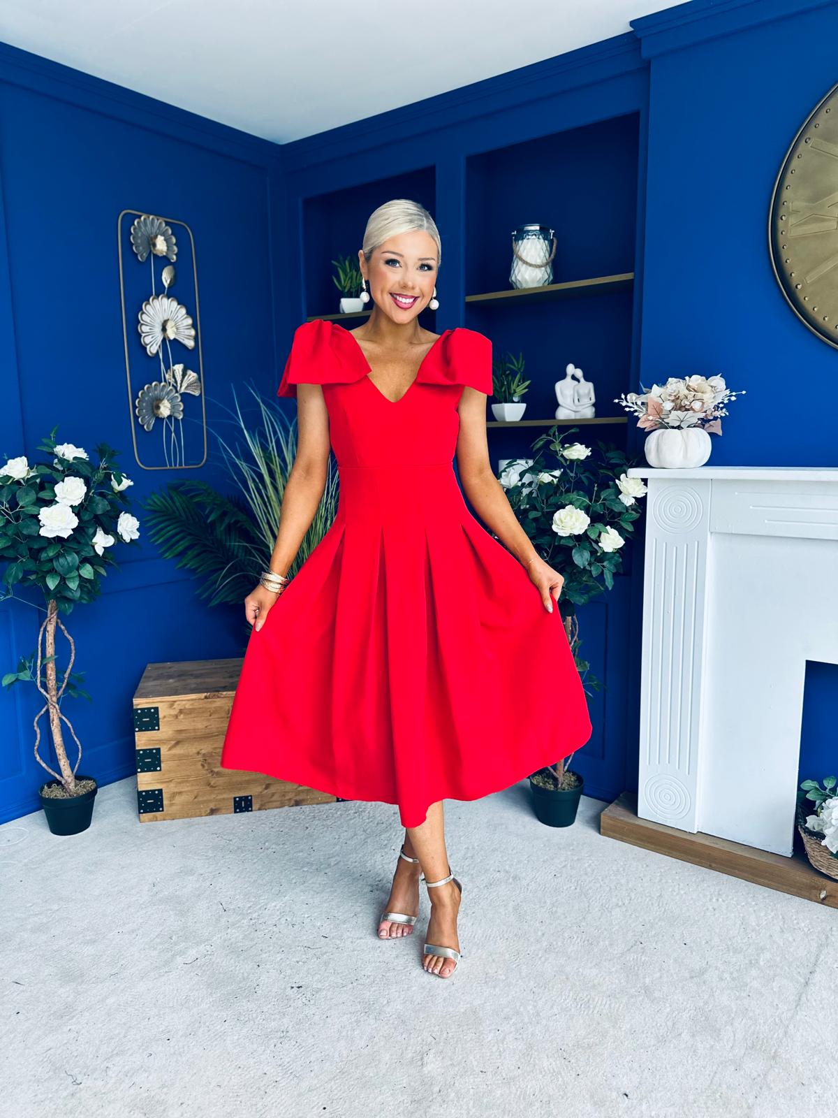Matilda Bow Detail Occasion Dress Red
