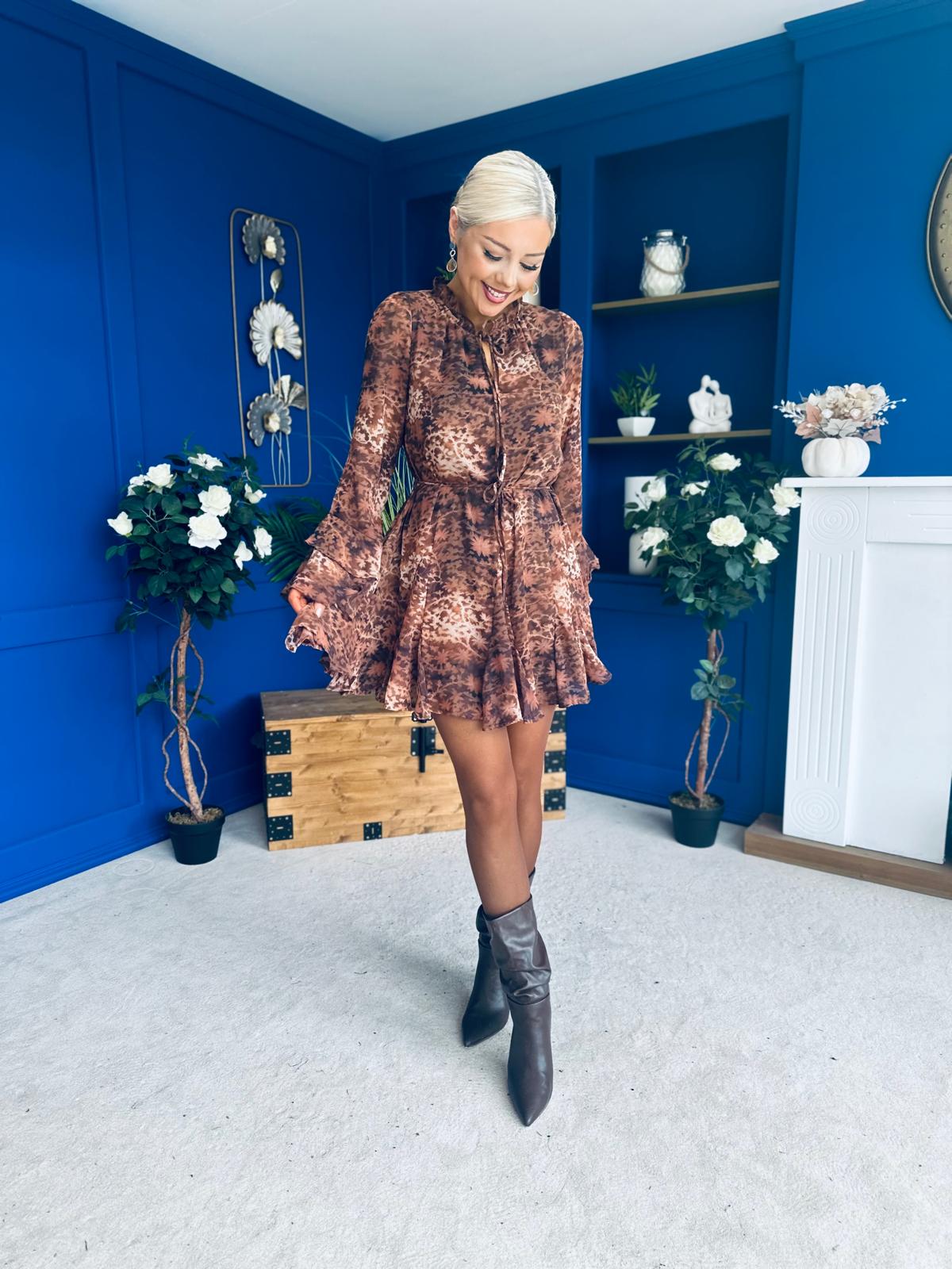 Look on trend with this detailed mini dress in the most fabulous fabric 🥰