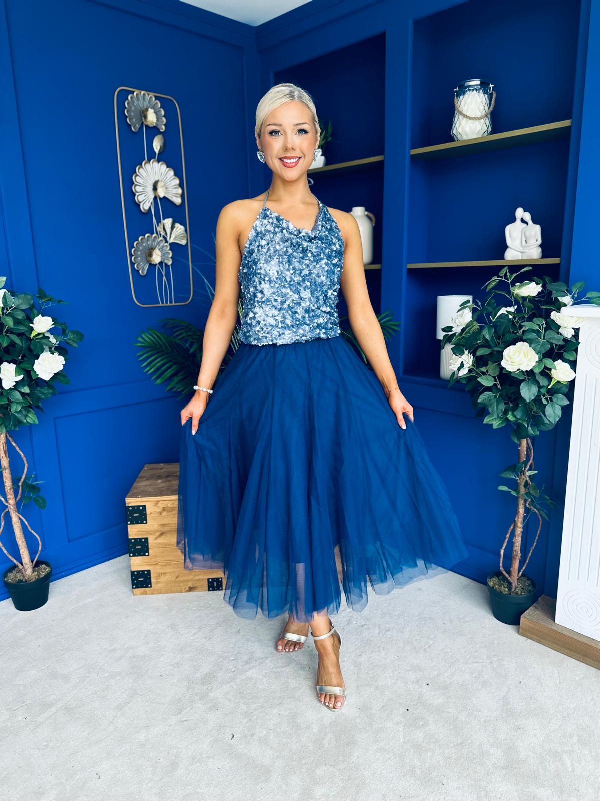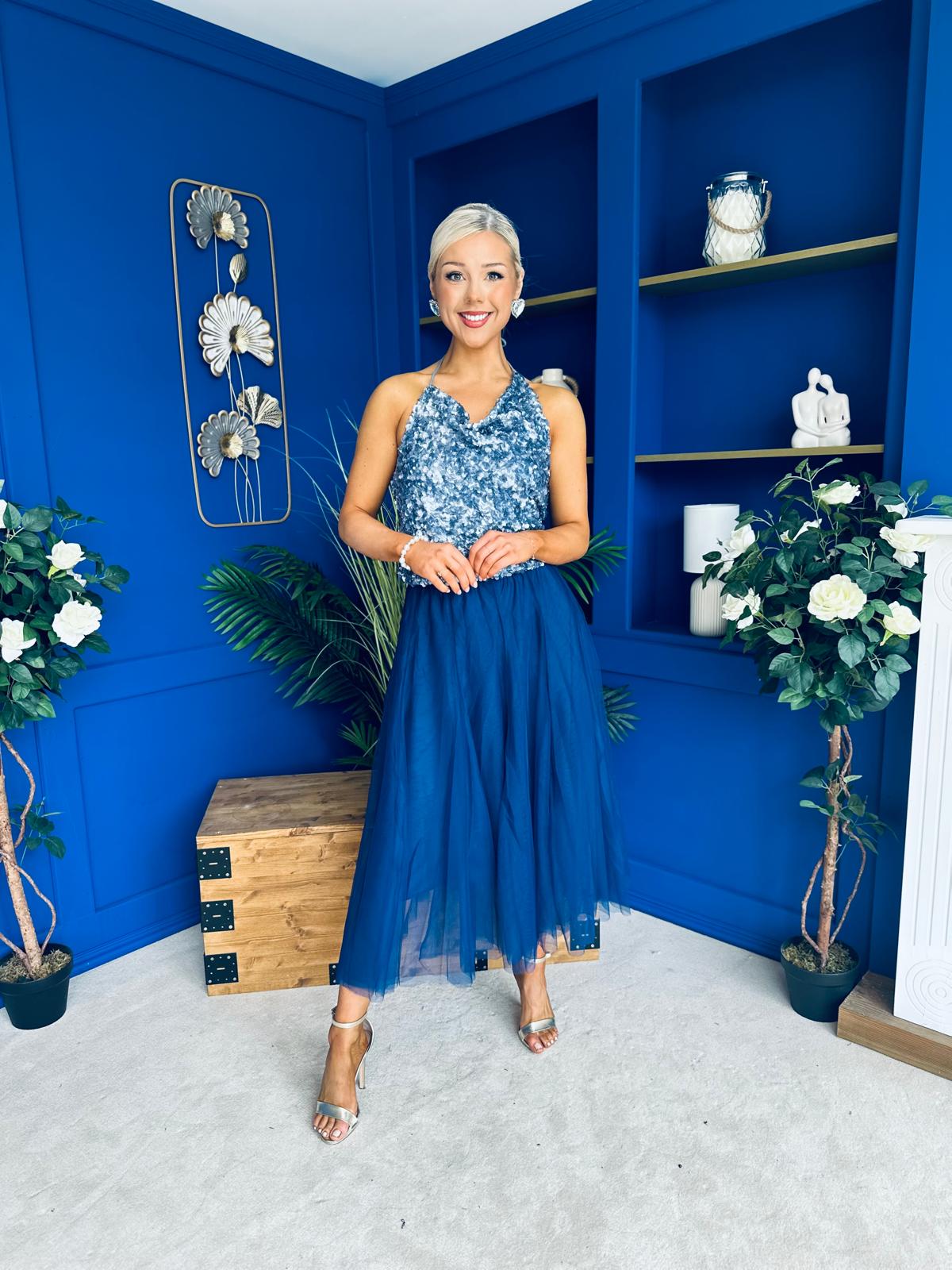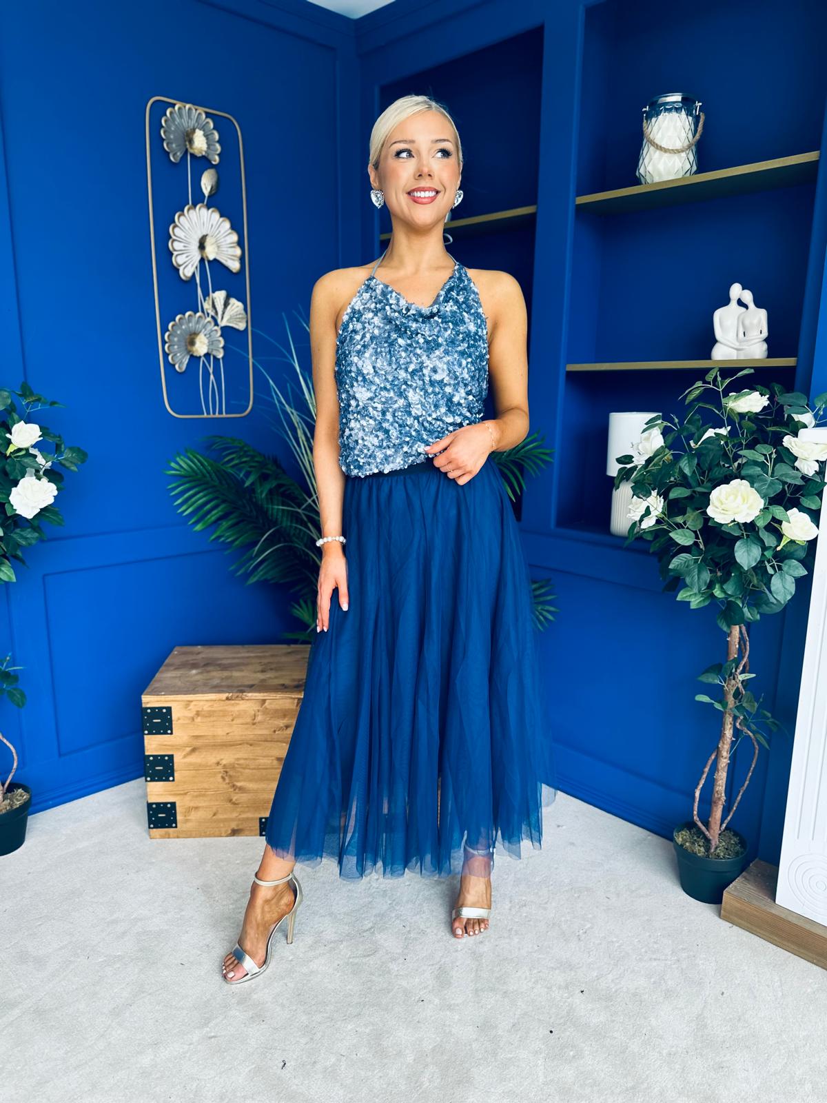 Maxine Tulle Midi Skirt Navy