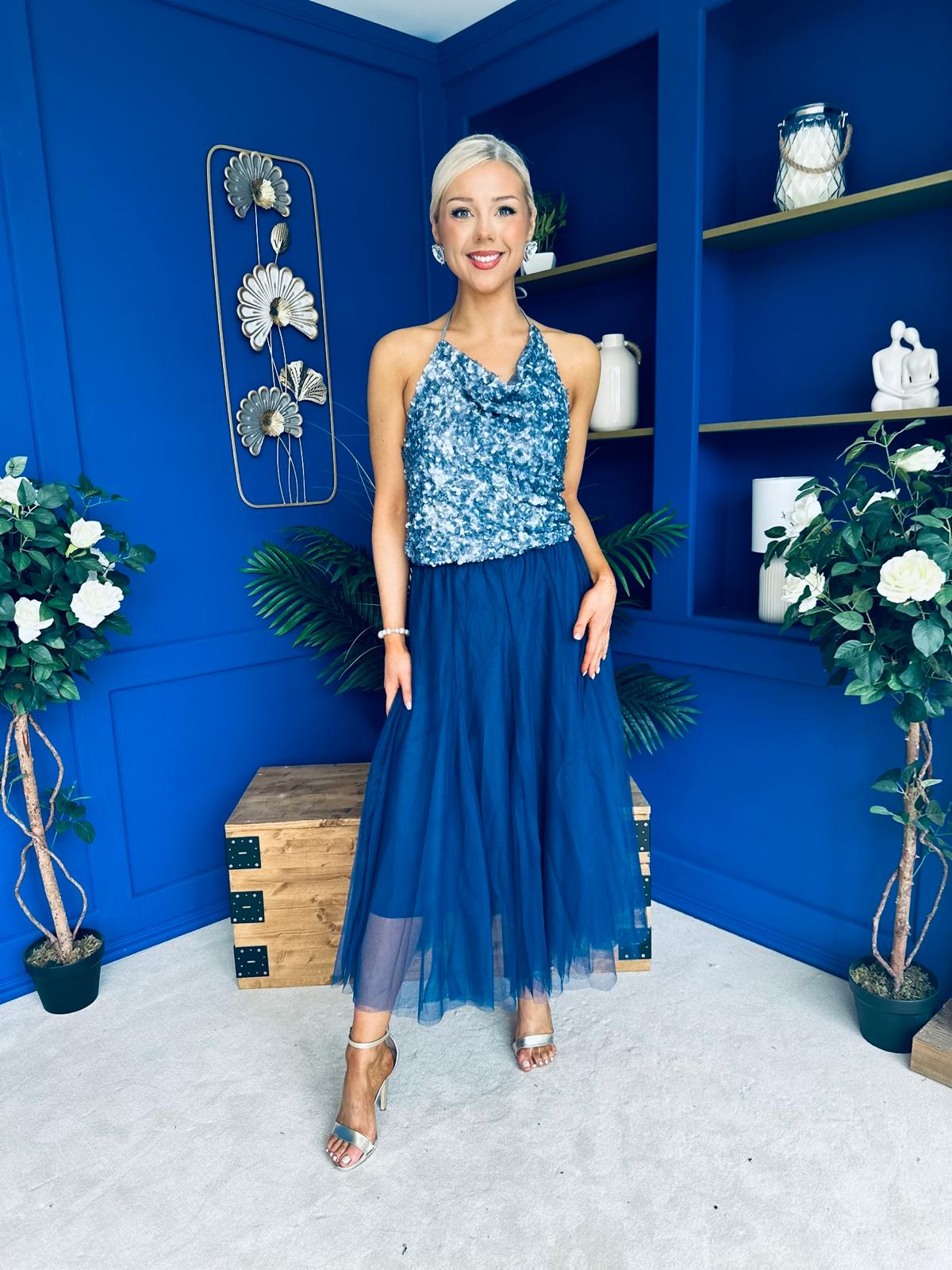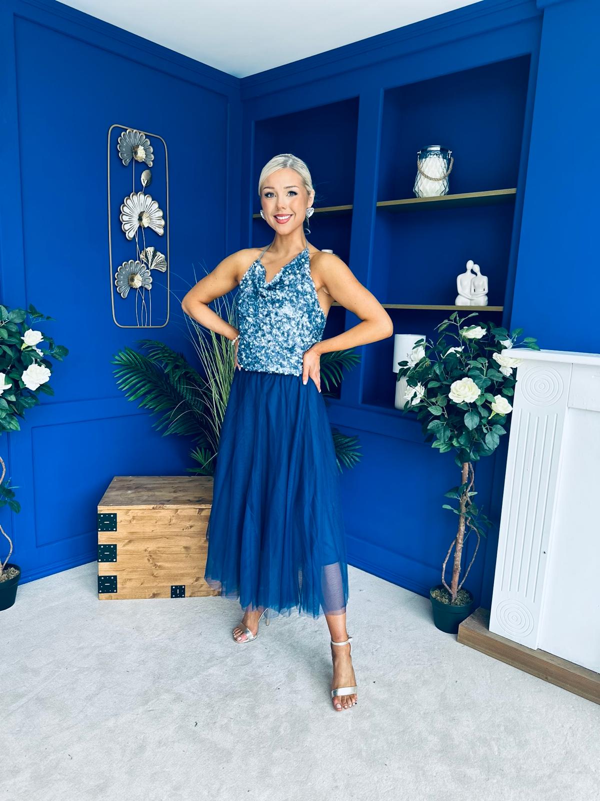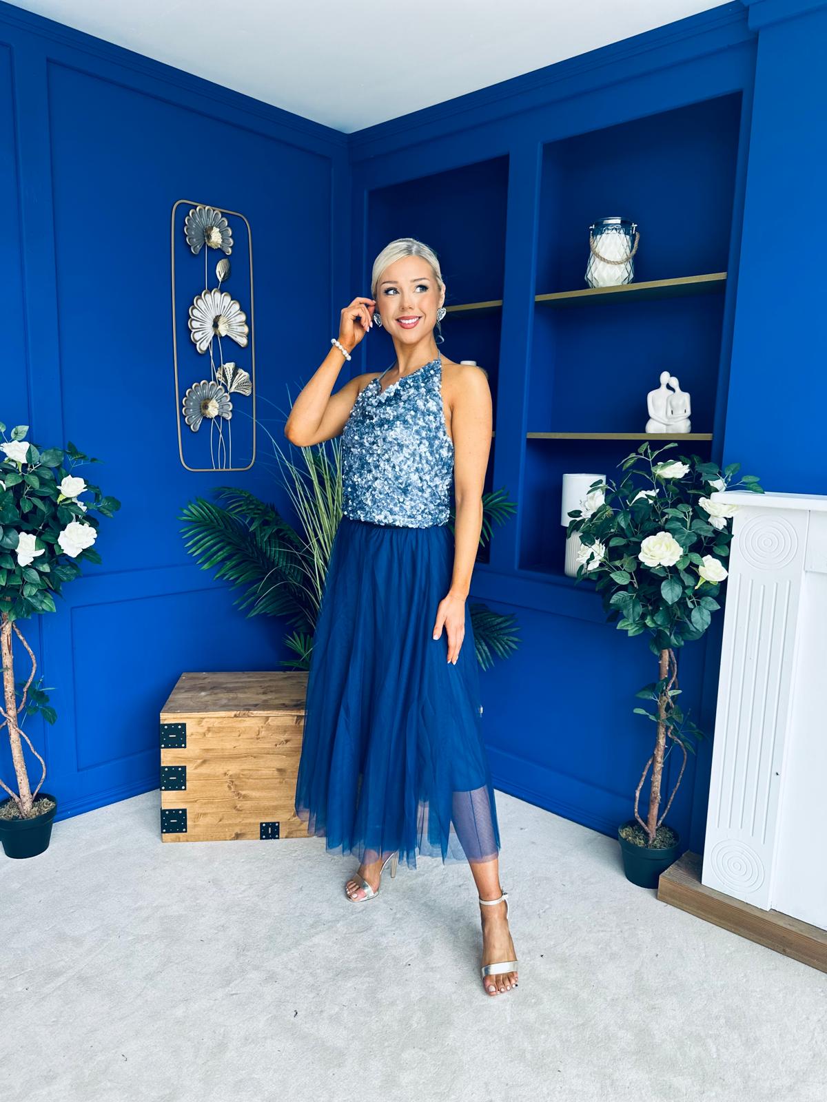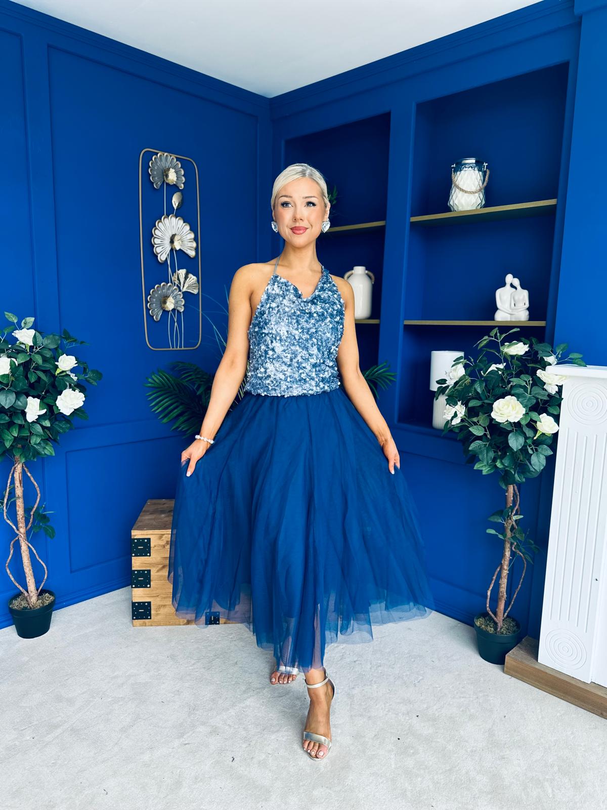 Maxine Tulle Midi Skirt Navy