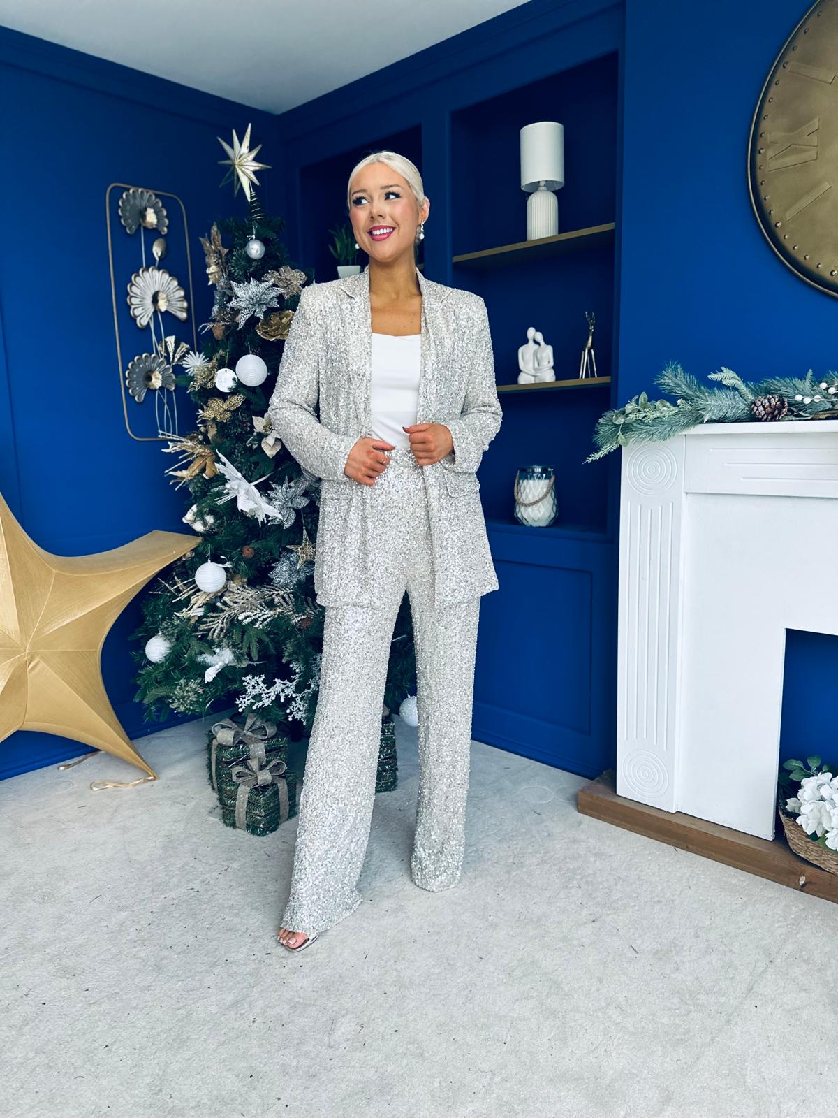 Elevate your style with the Monica Sequin Box Jacket, a statement piece that combines glamour and sophistication.