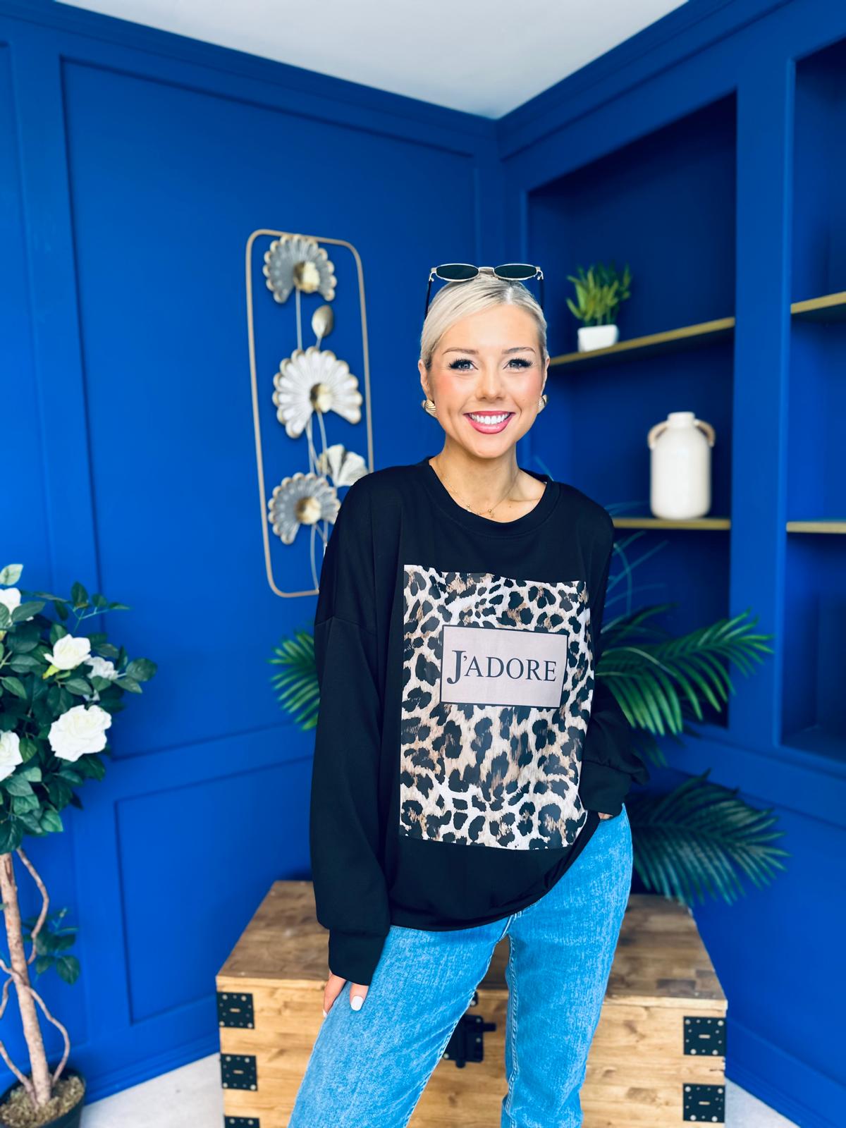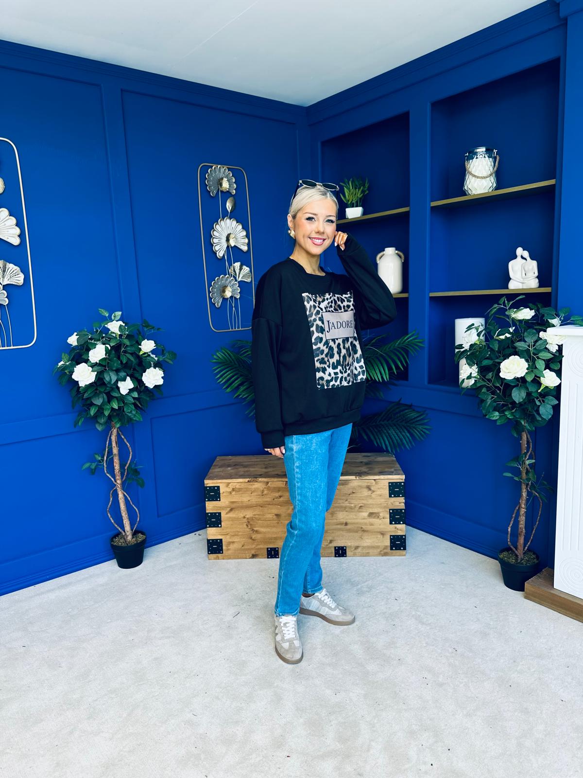 Gorgeous Sweatshirt with leopard detail. Just perfect for those cosy up days