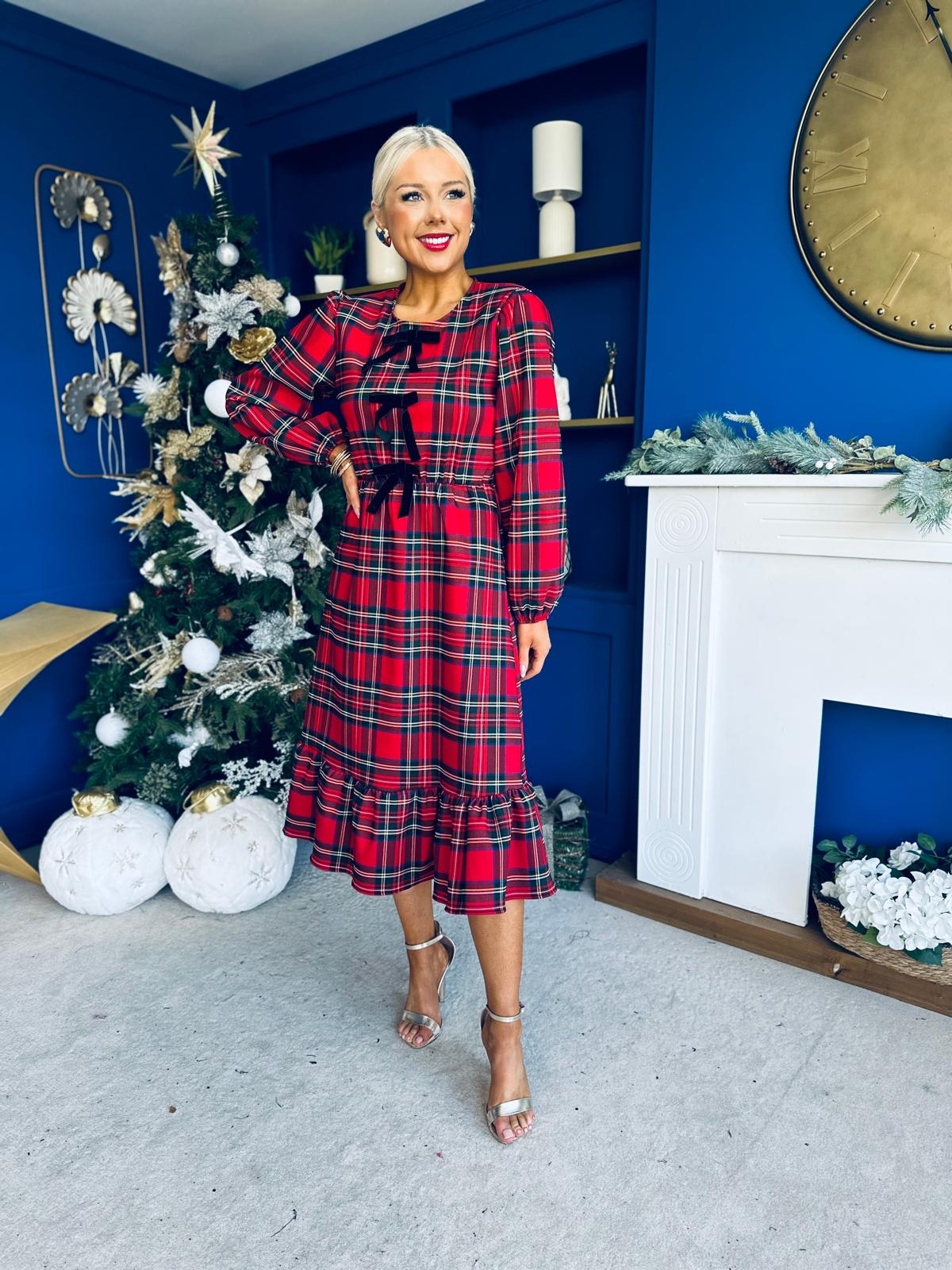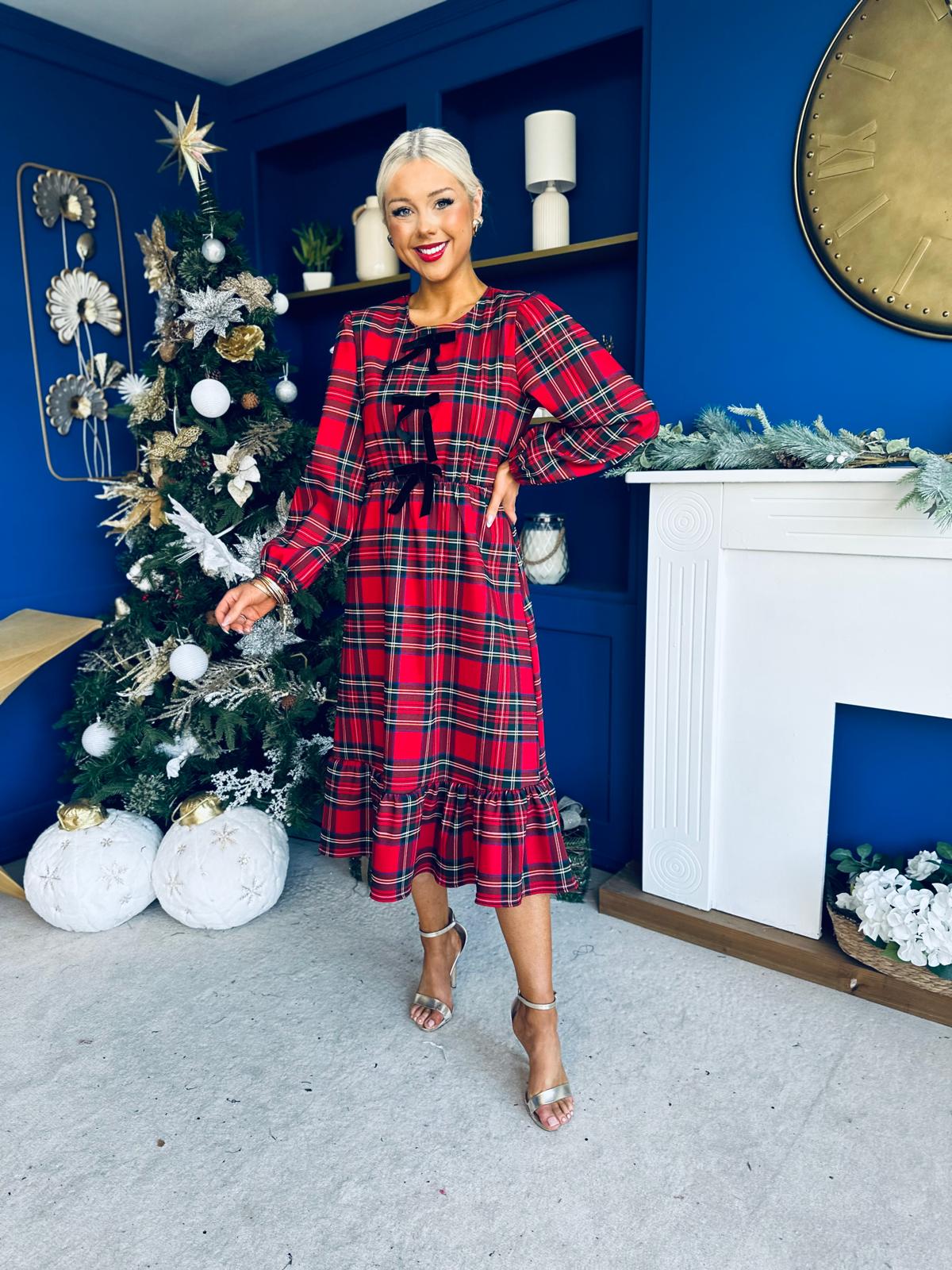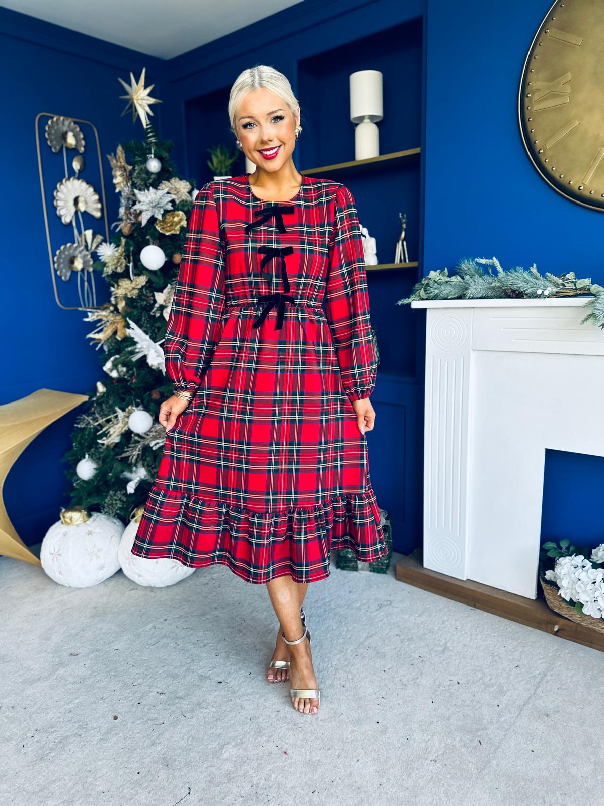 This dress has a beautiful full sleeve, round neckline, velvet bow detail to bust, elasticated waist and flowing skirt for a statement silhouette and a flattering look.