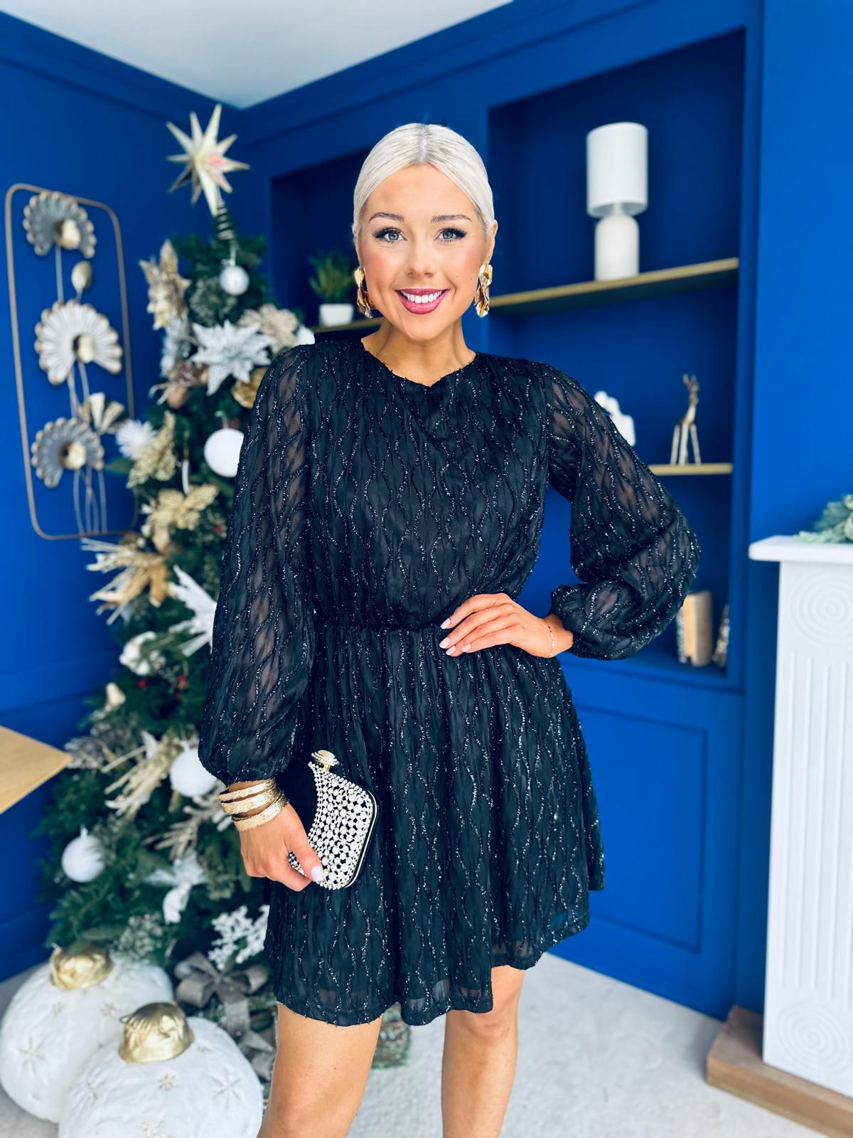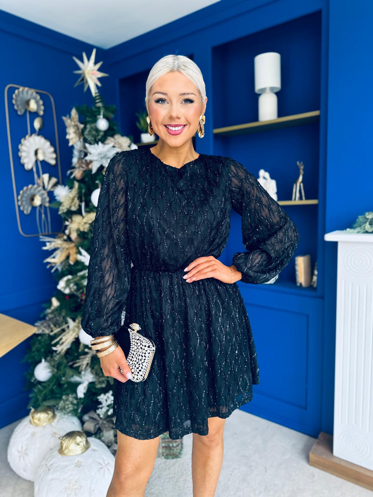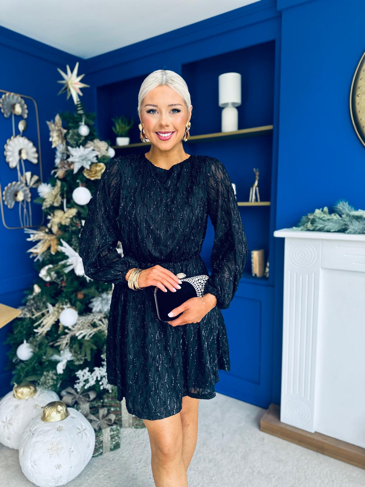 Its amazing high neckline to front and plunge back with full sleeve this dress is sure to catch the eye at any even