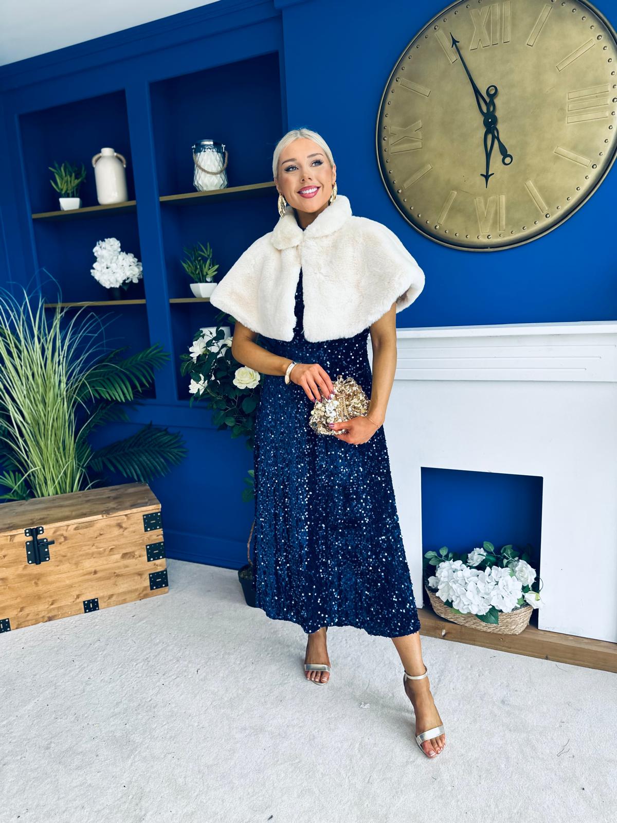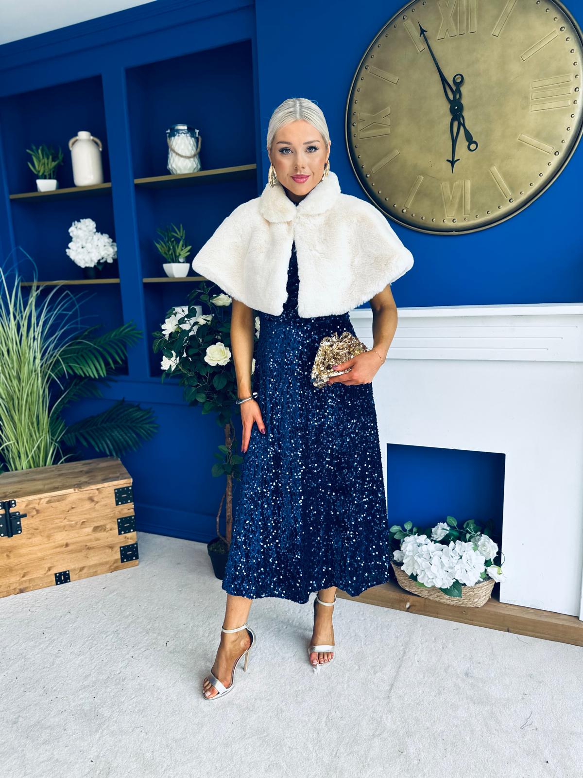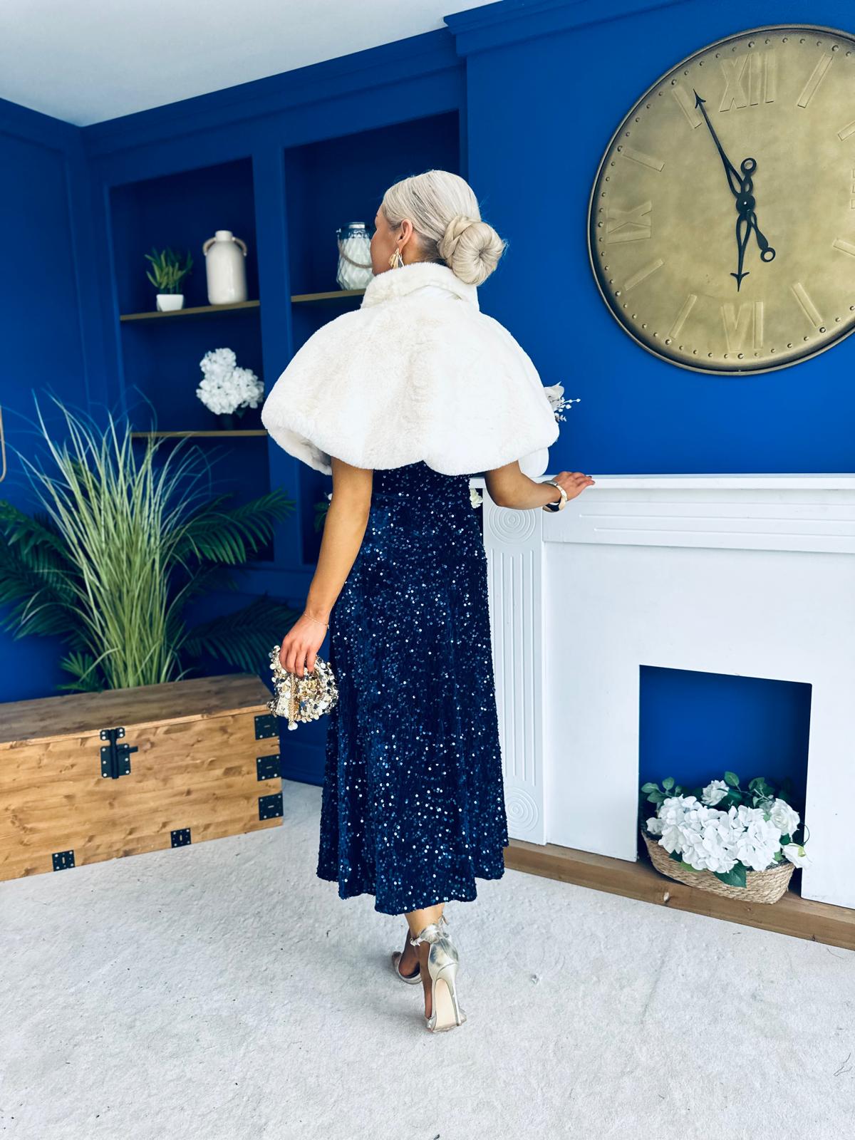 Parker Sequin Occasion Midi Dress Navy