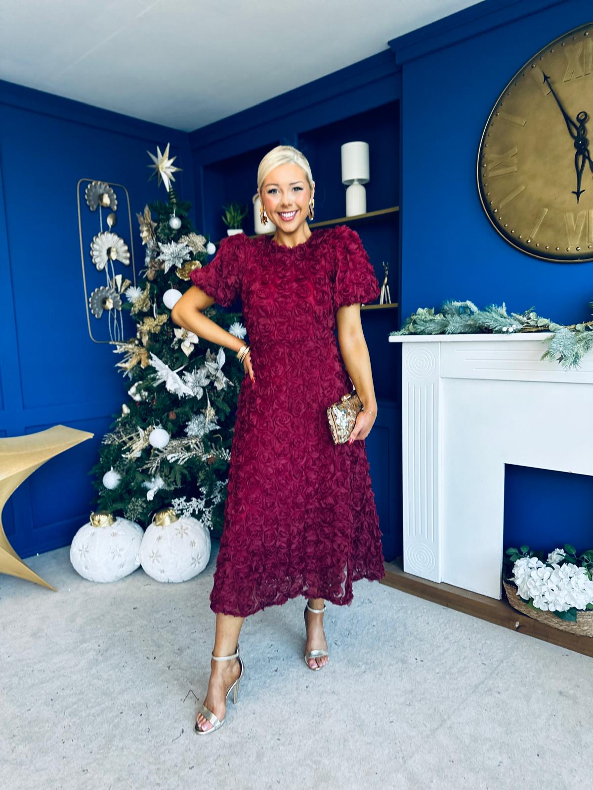 Pippa 3D Floral Occasion Dress Burgundy