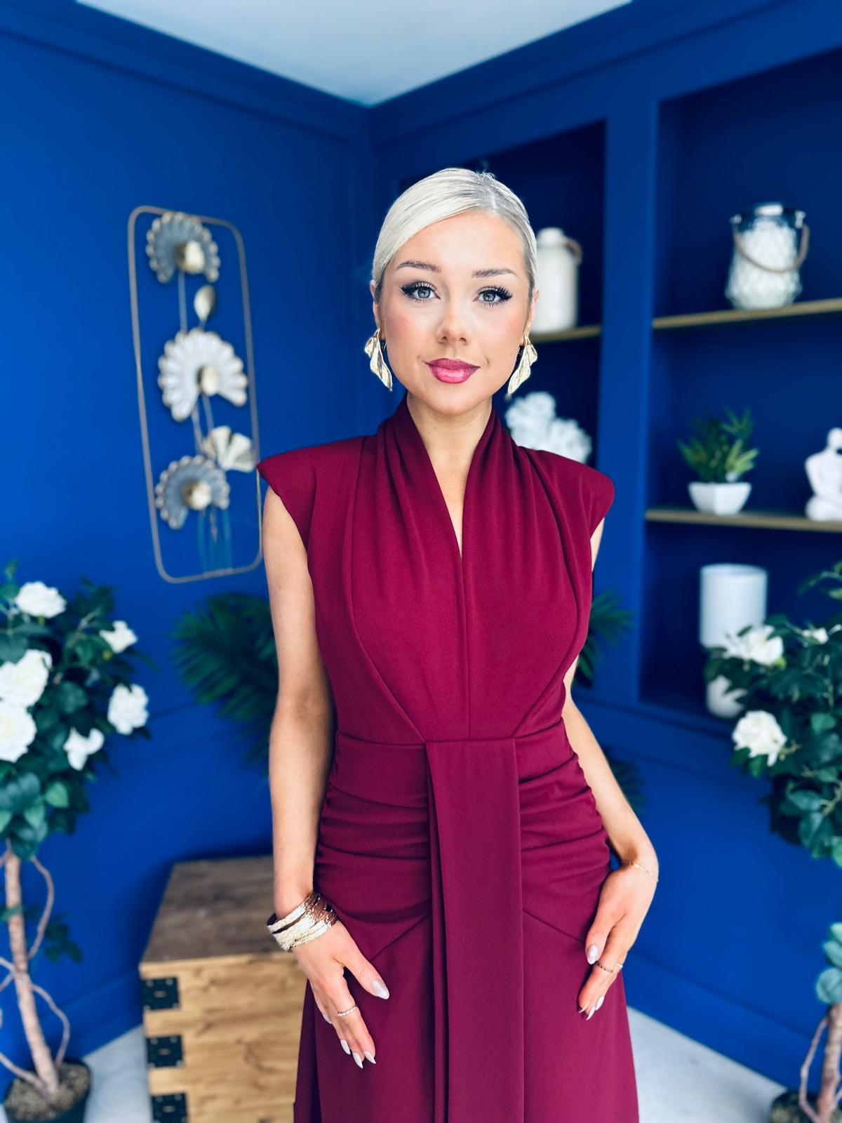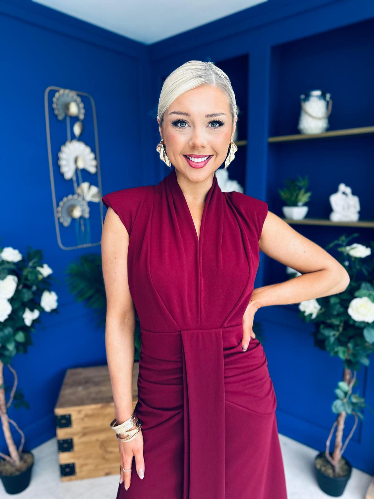 Quinn Drape Detail Midi Dress Wine