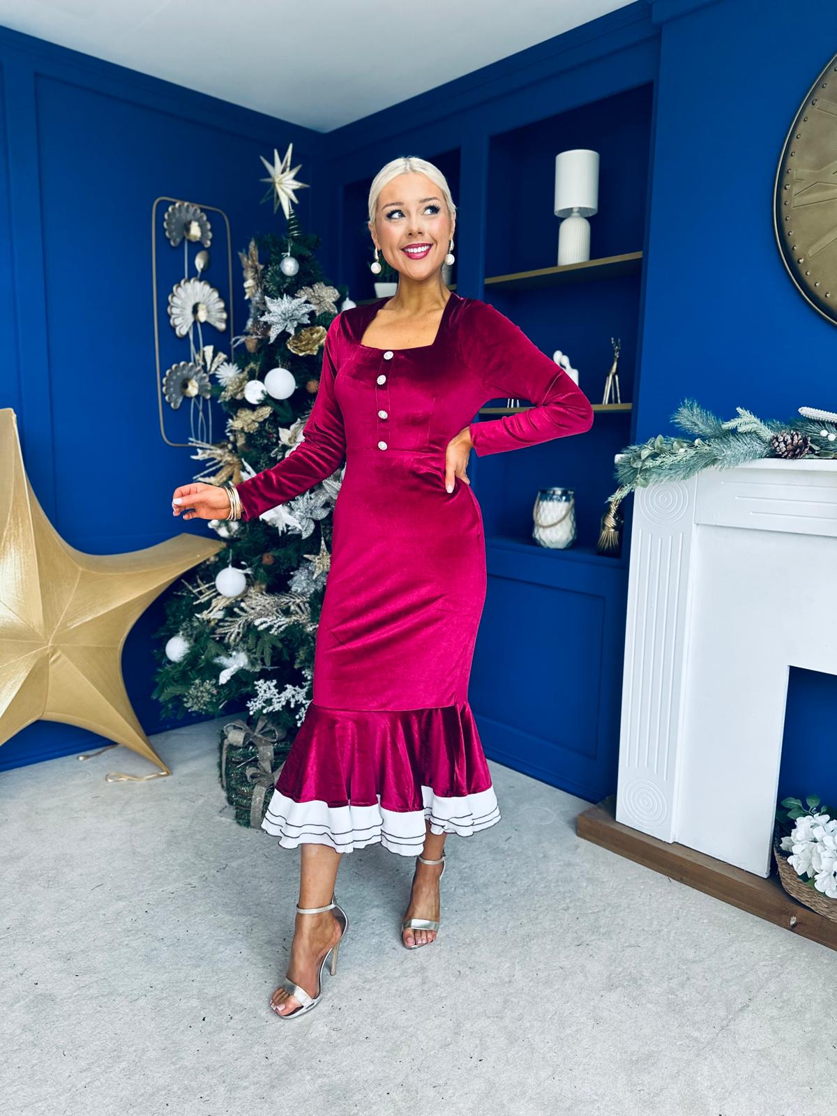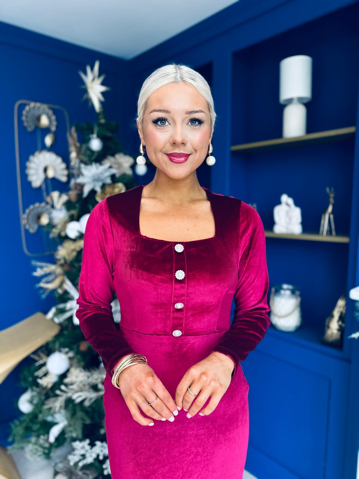 From the standout pearl embellished neckline, fabulous oversized floral sleeve, midriff hug & fabulous skirt, this dress is truly one of a kind & sure to make an impact at any event
