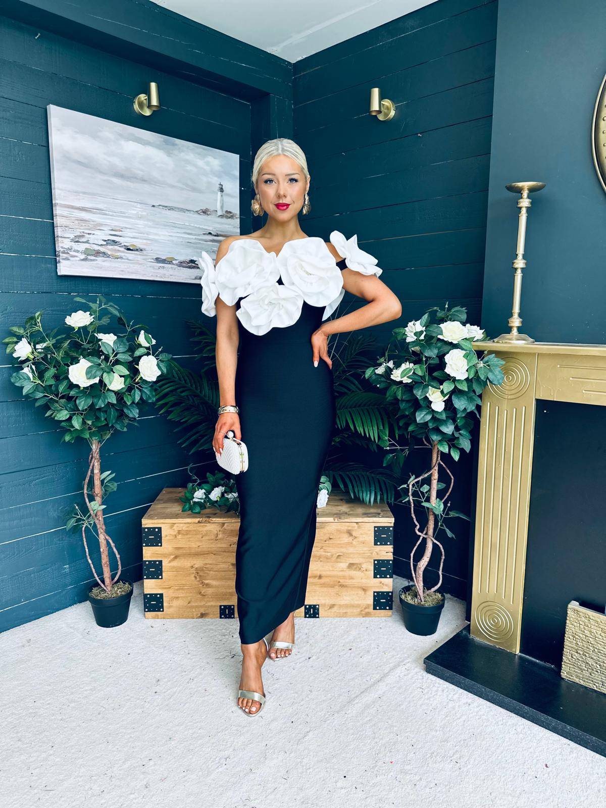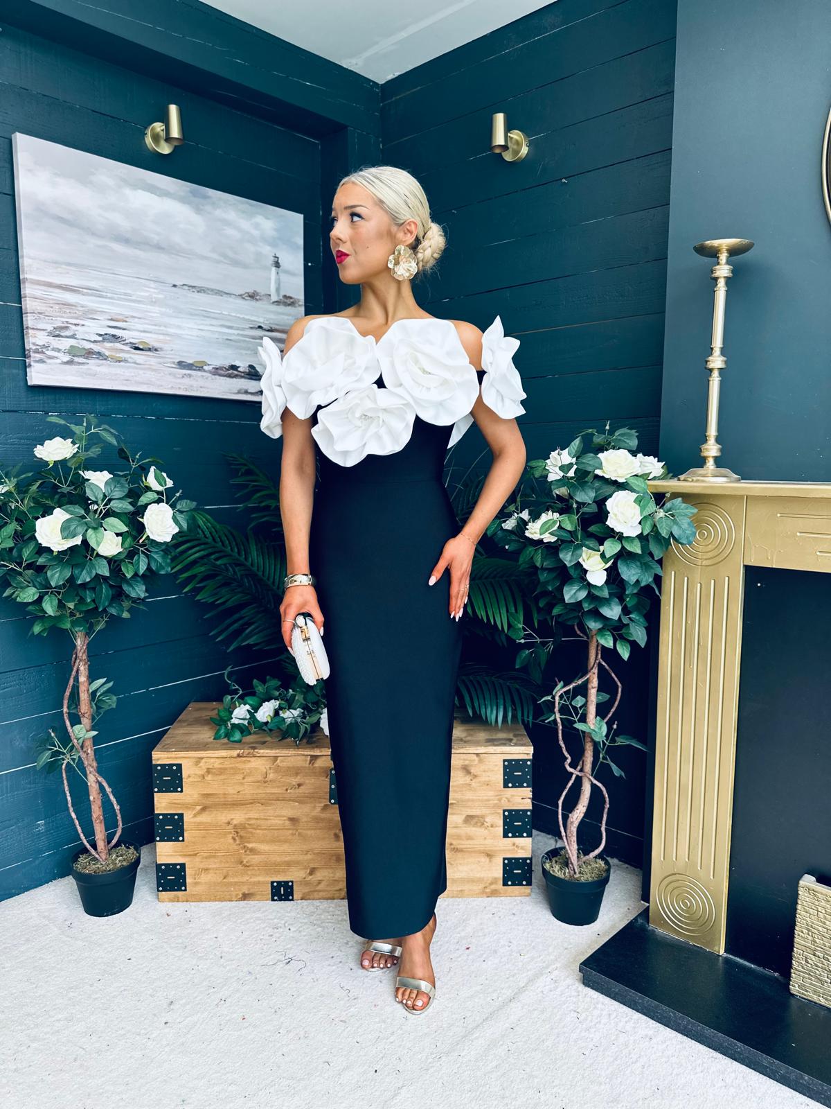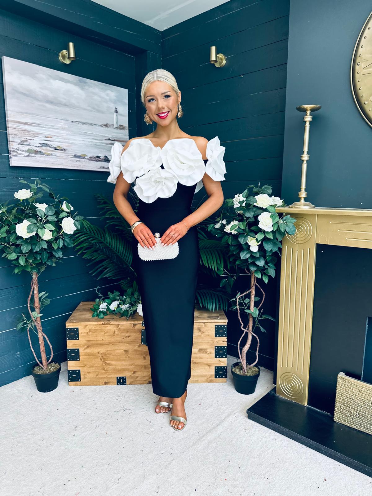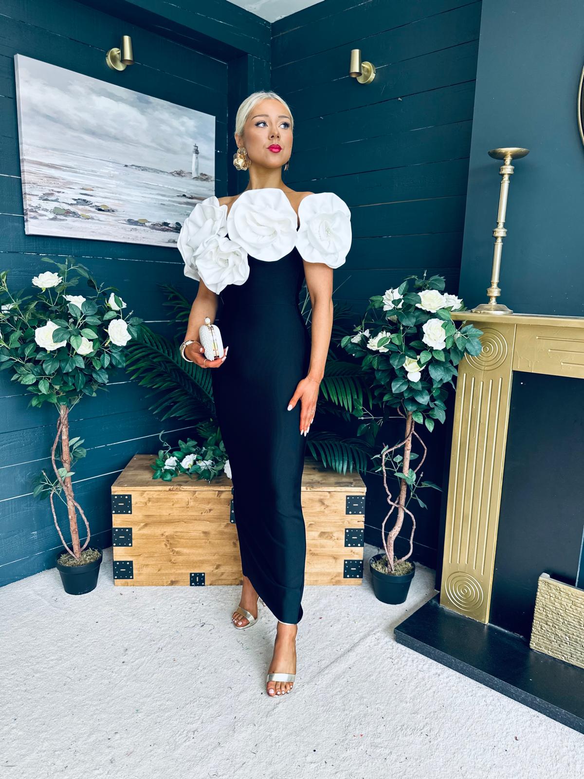 The most amazing occasion dress with large floral detailed neckline and huging skirt that is sure to make an entrance at any occasion.