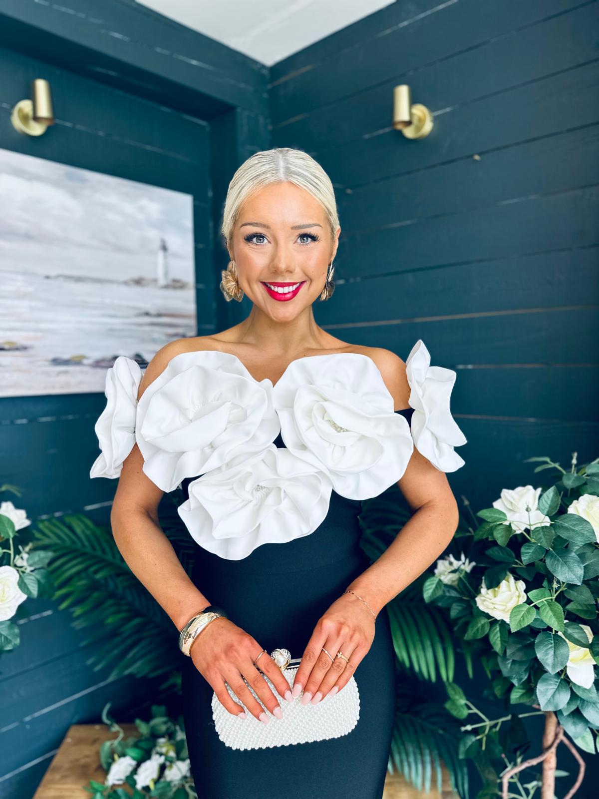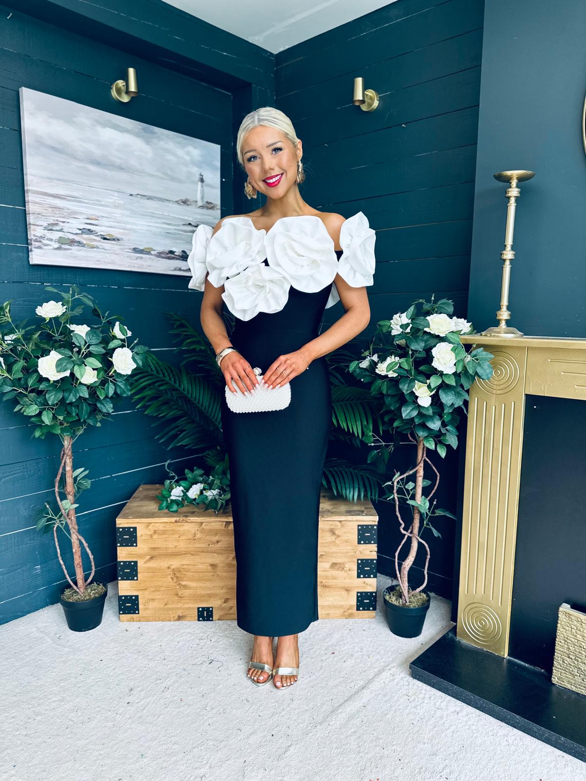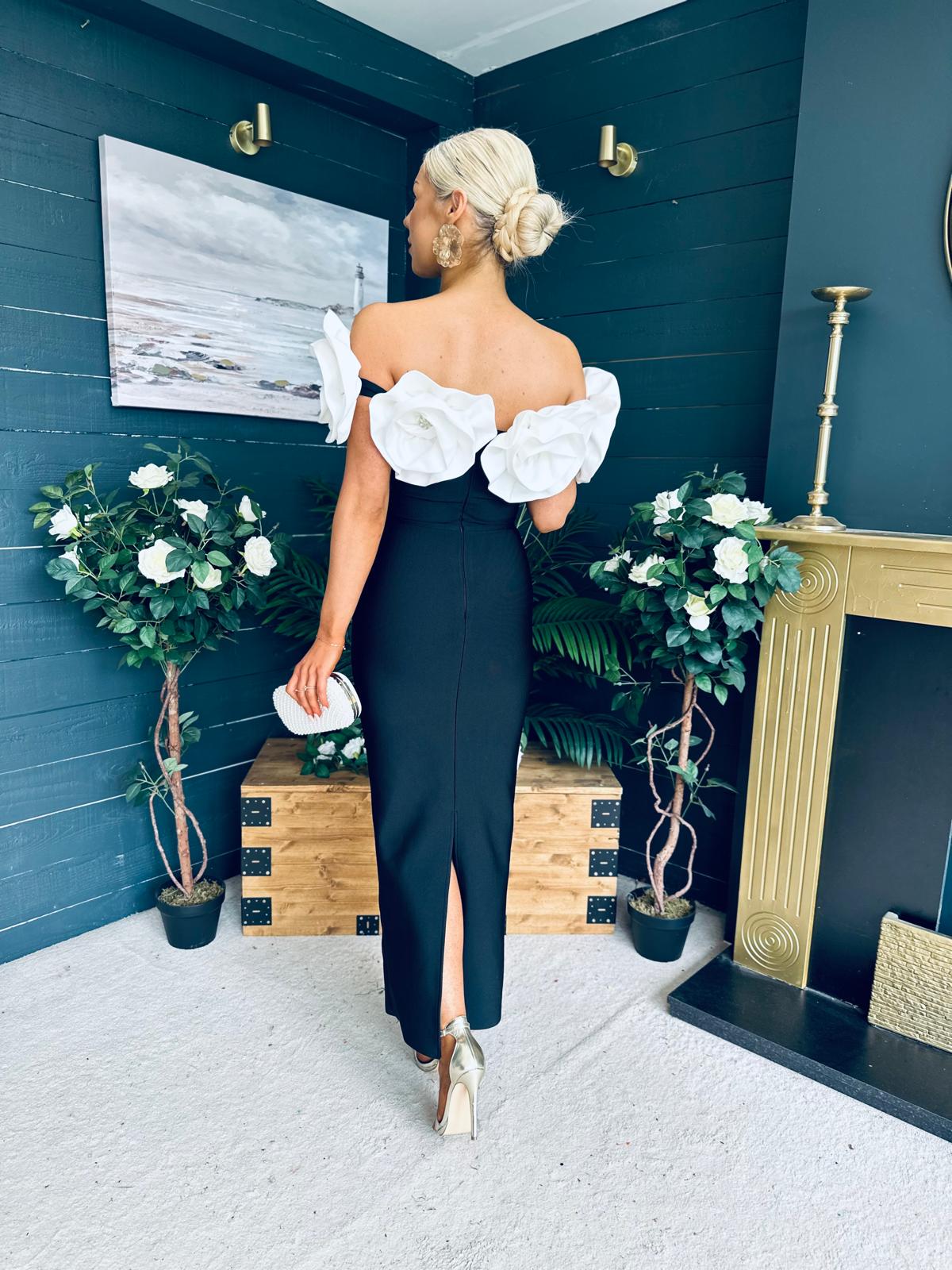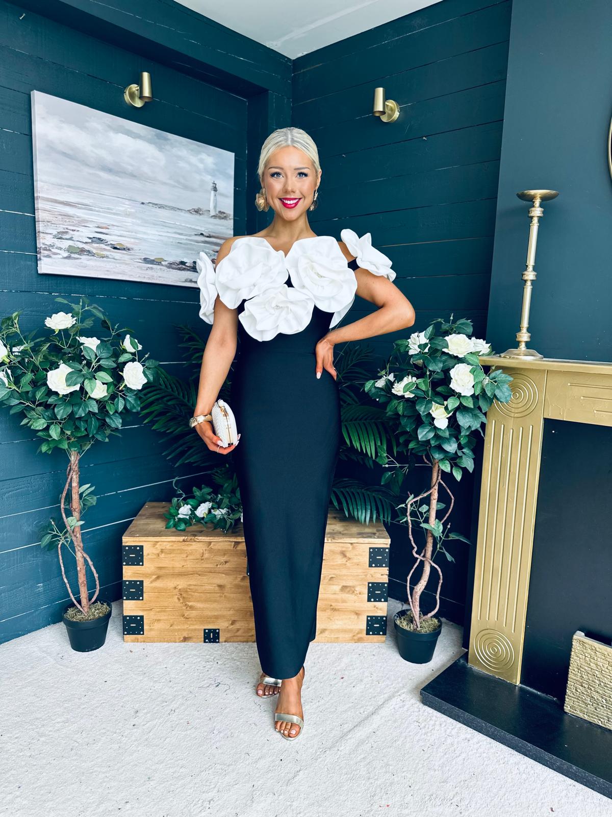 The most amazing occasion dress with large floral detailed neckline and huging skirt that is sure to make an entrance at any occasion.