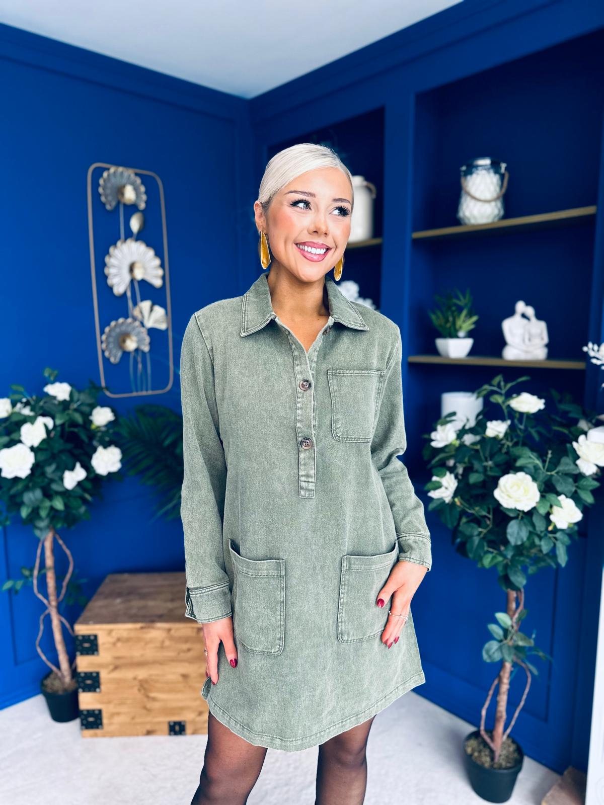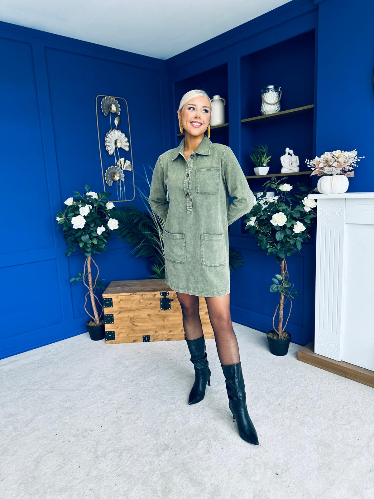Ryan Cord Mini Shift Dress Green