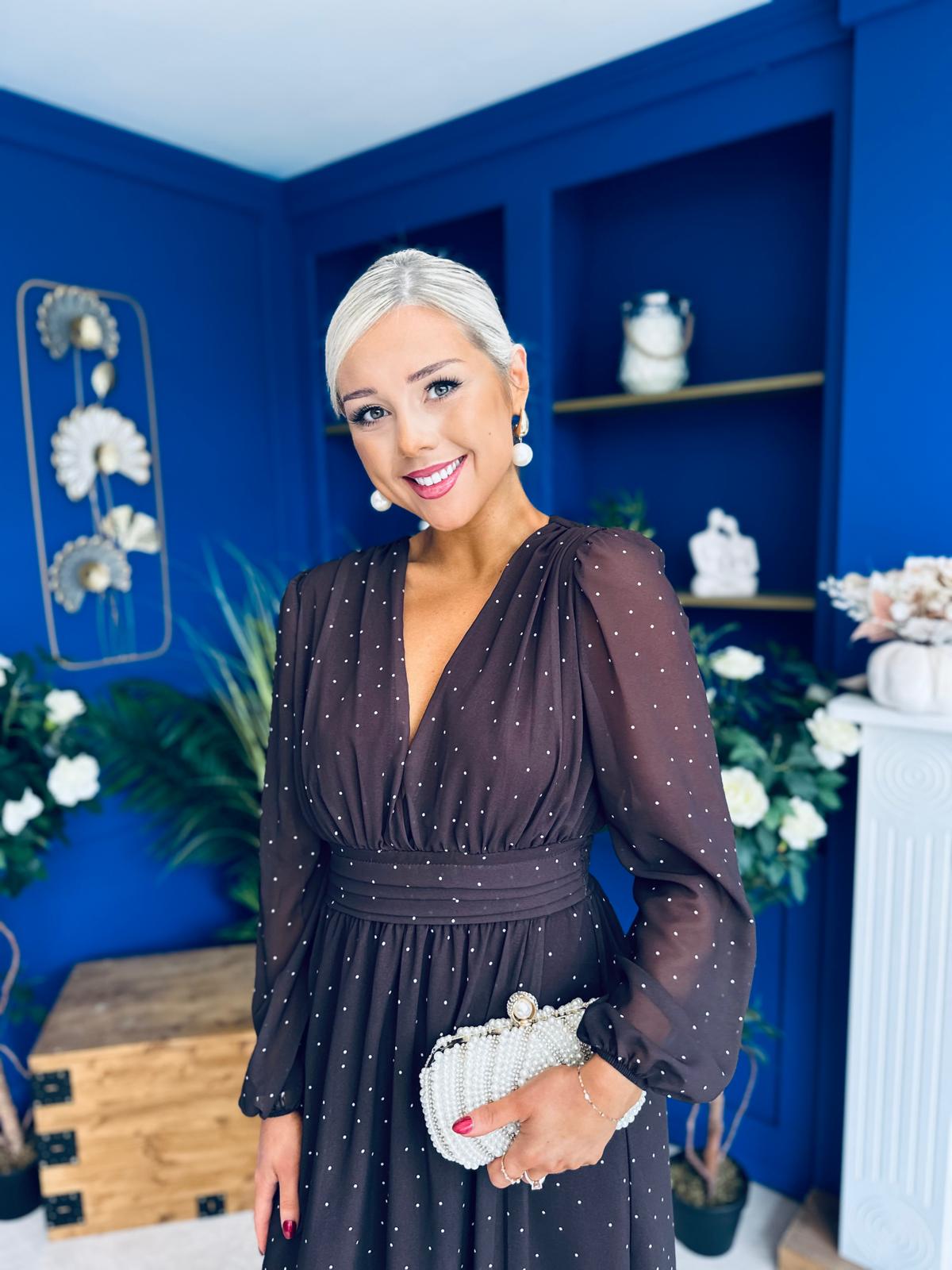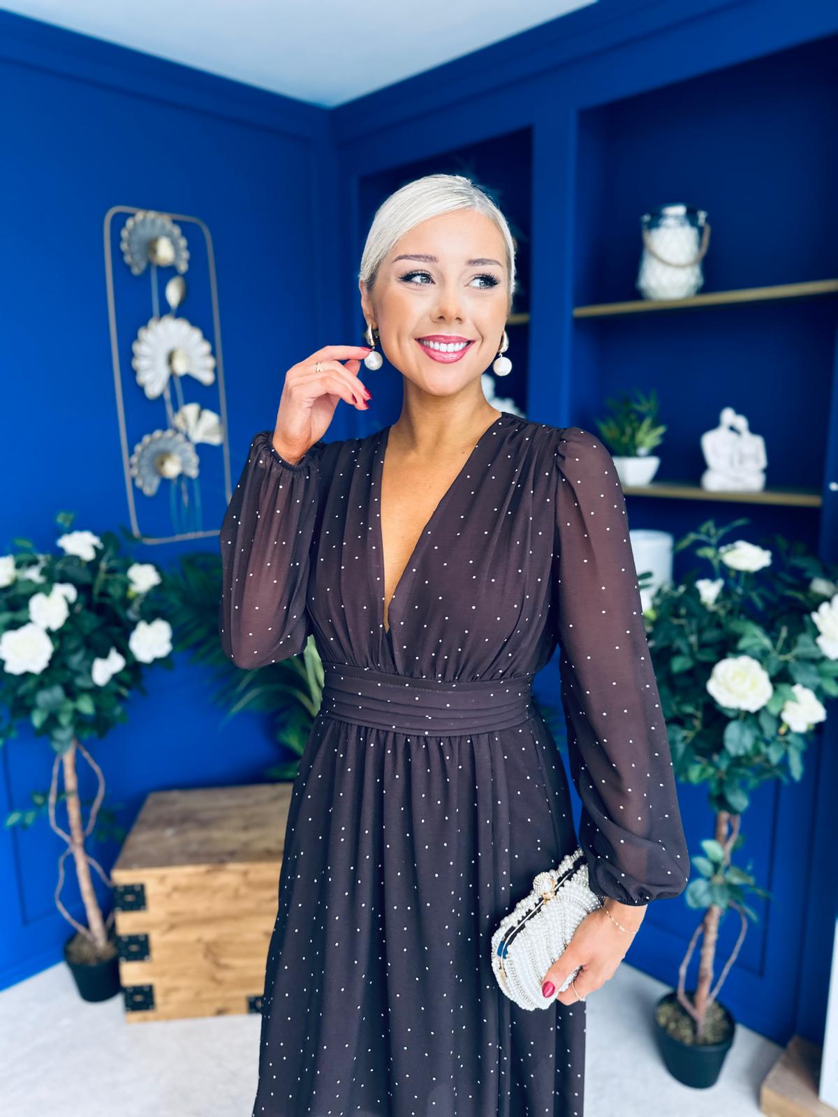 Sabrina Banded Midi Dress Polka Coffee
