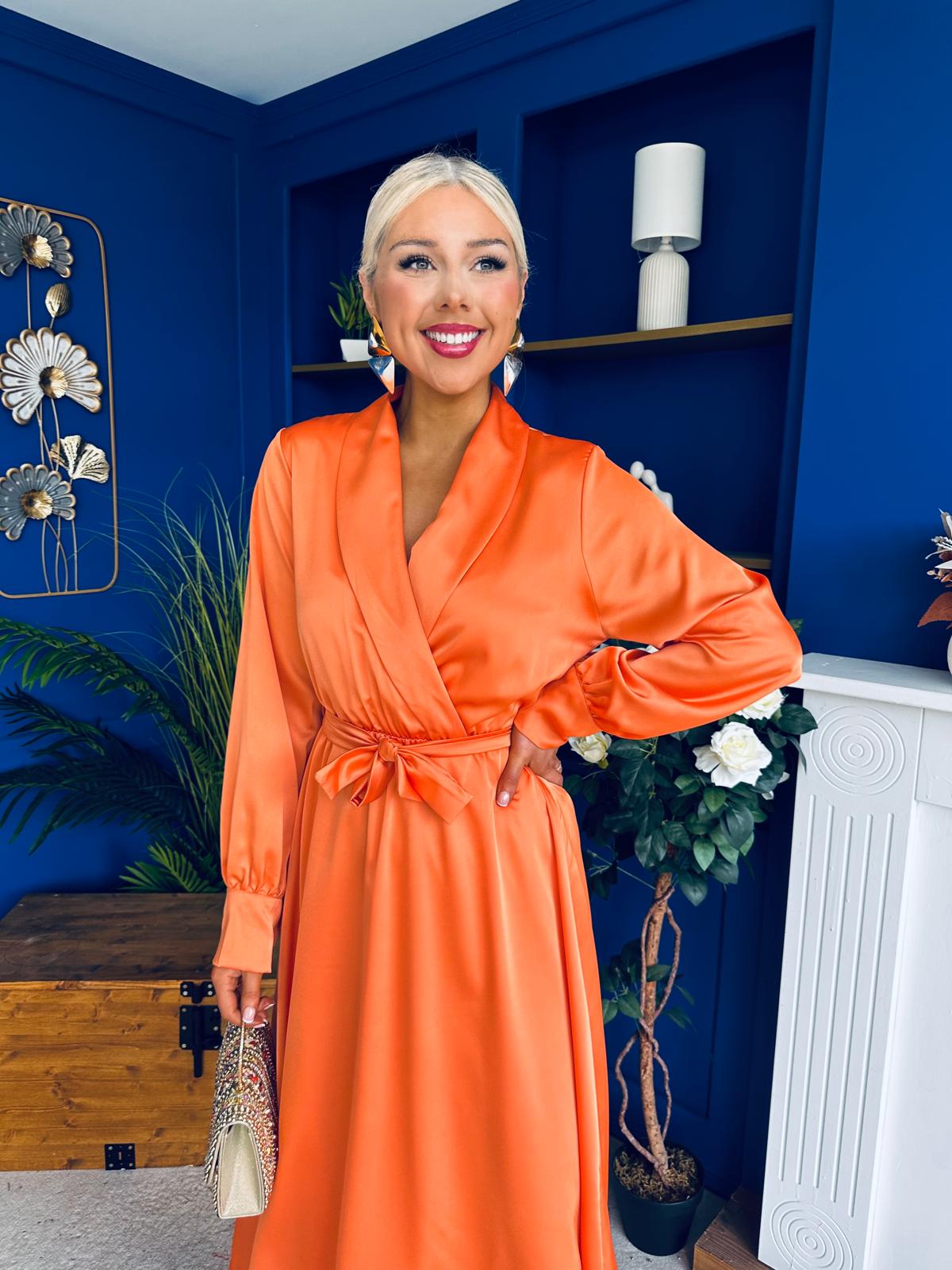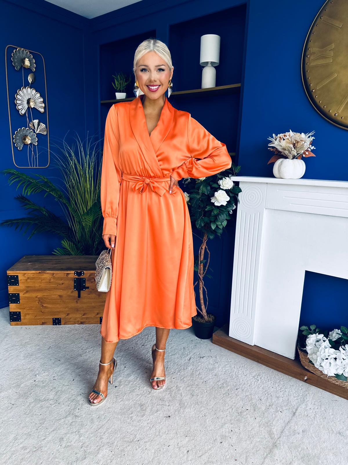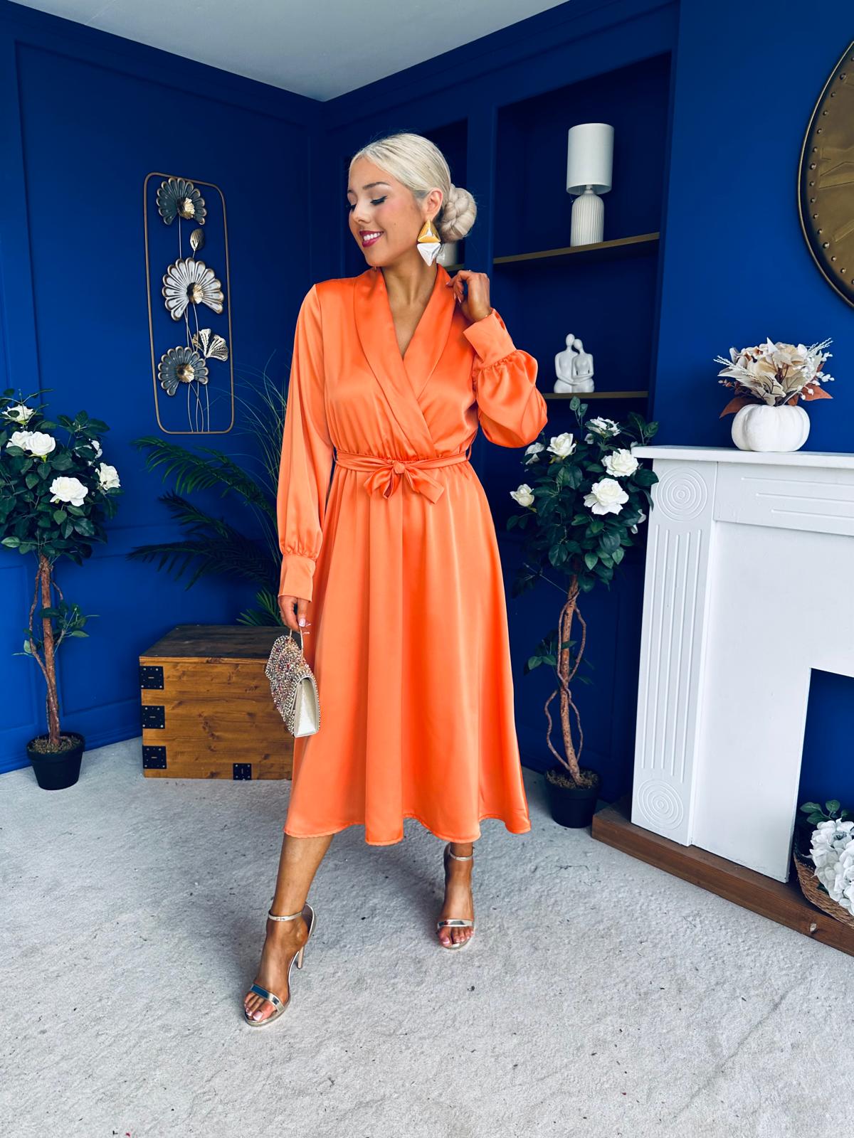 Sadhbh Detailed Satin Midi Dress Amber