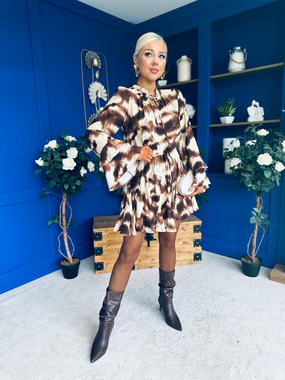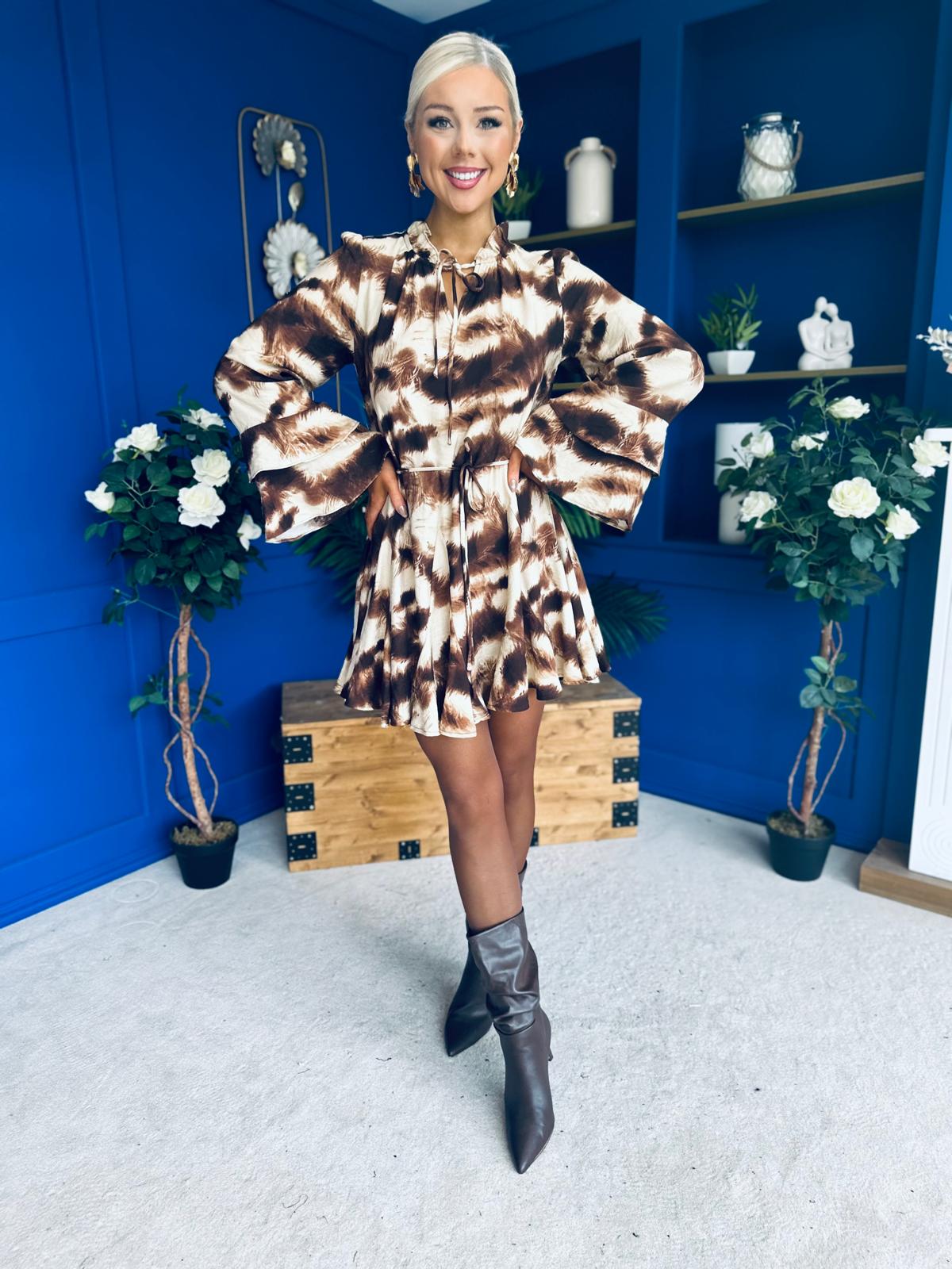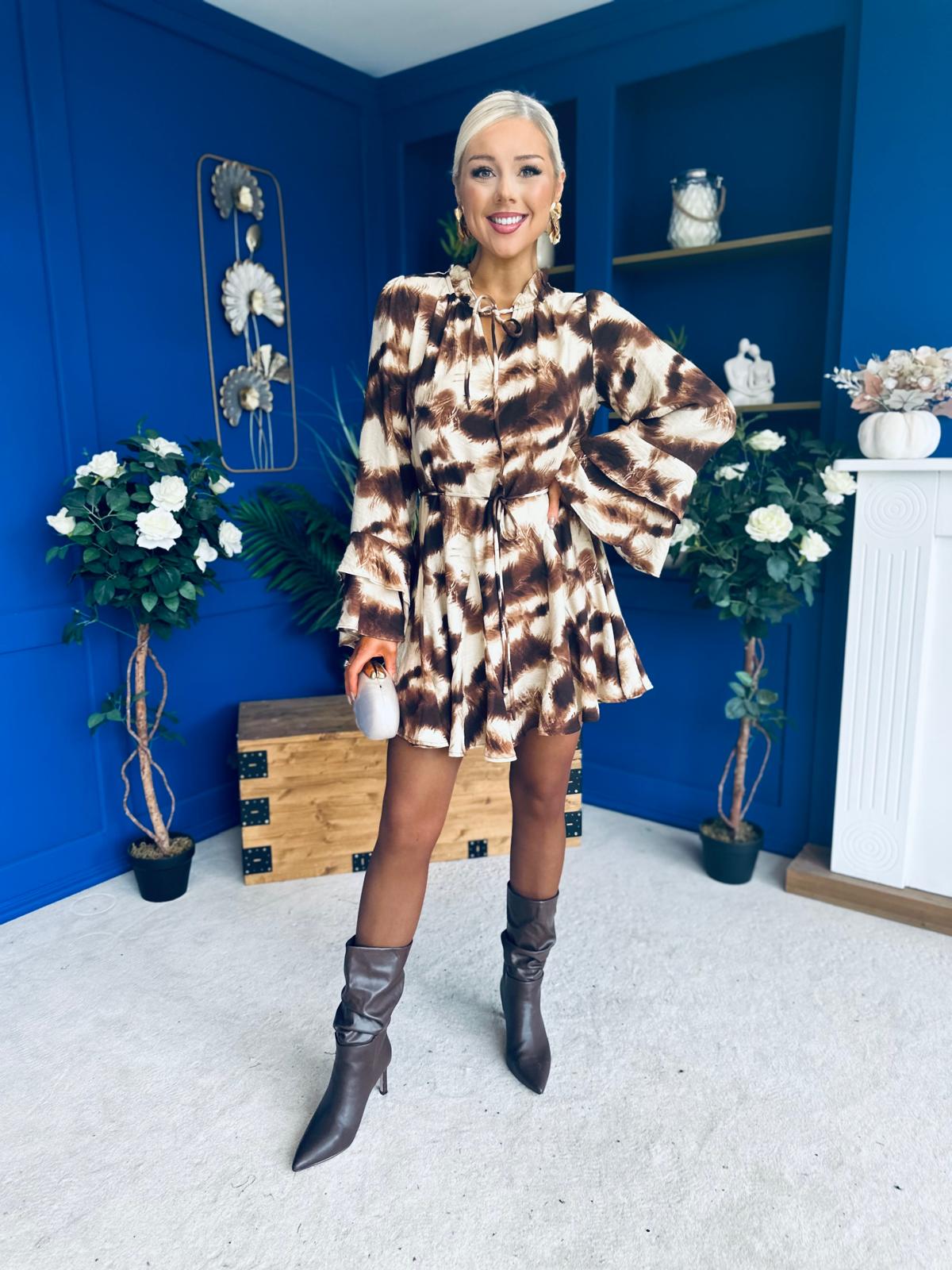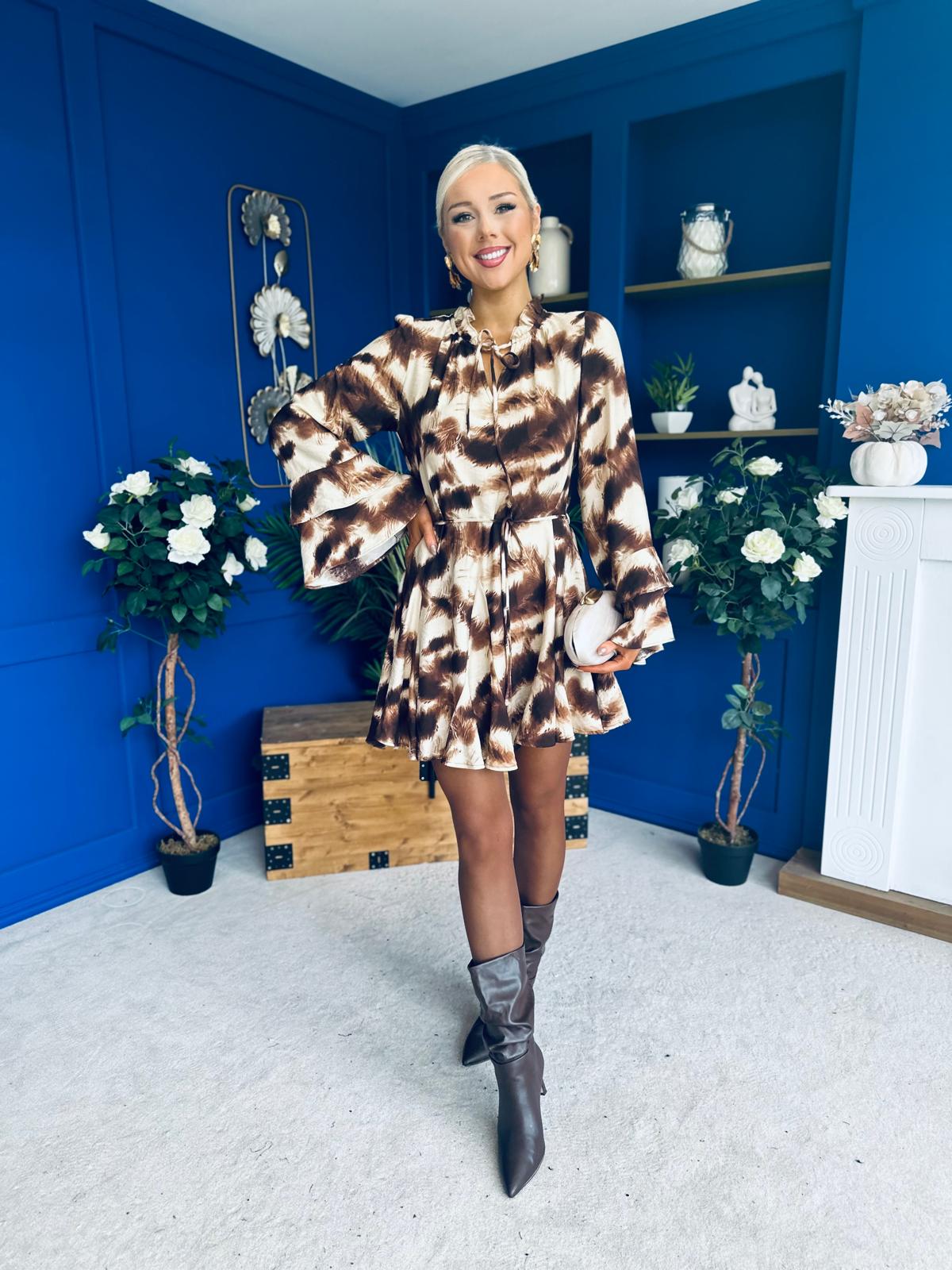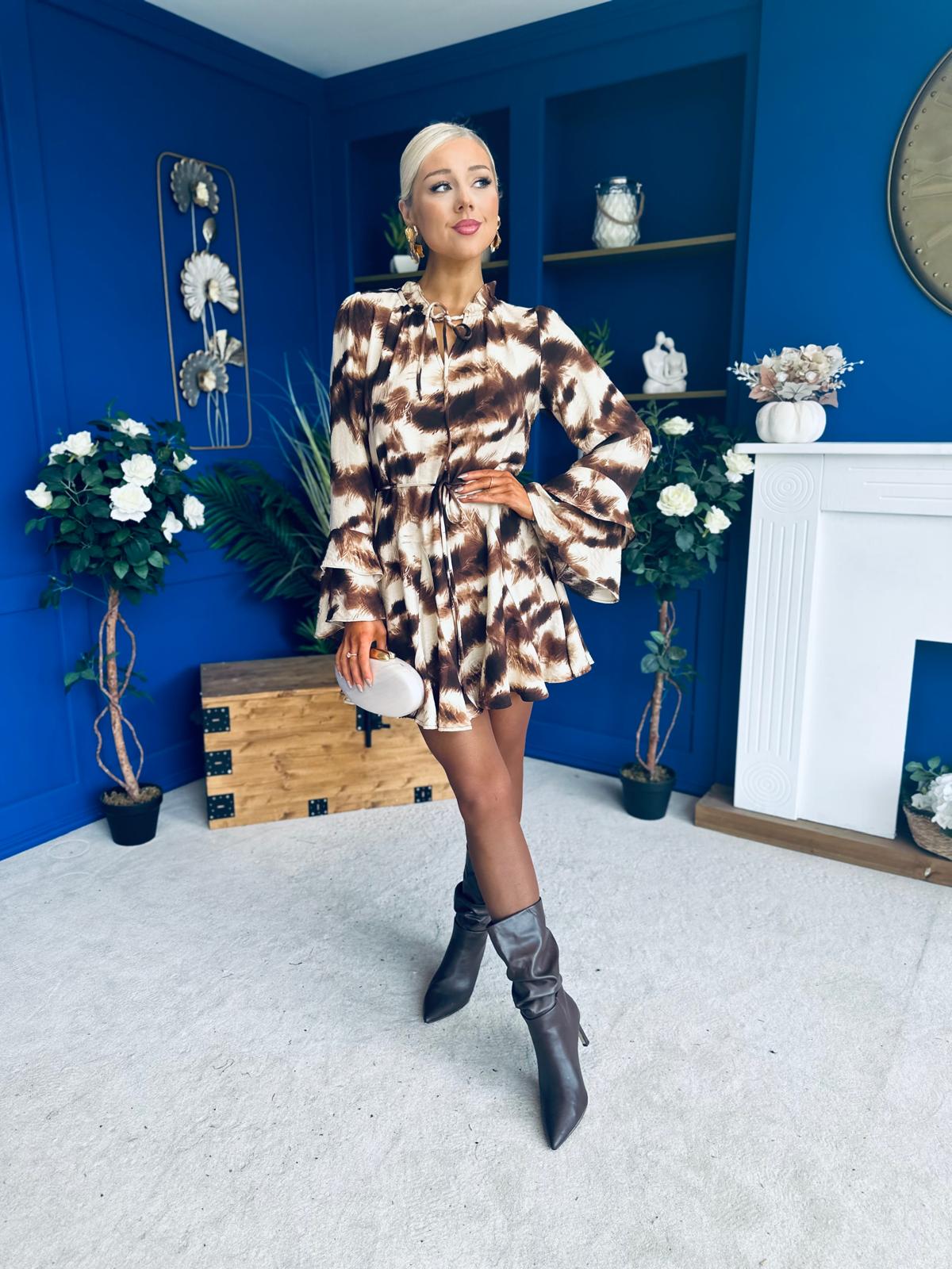Look on trend with this detailed mini dress in the most fabulous fabric 🥰