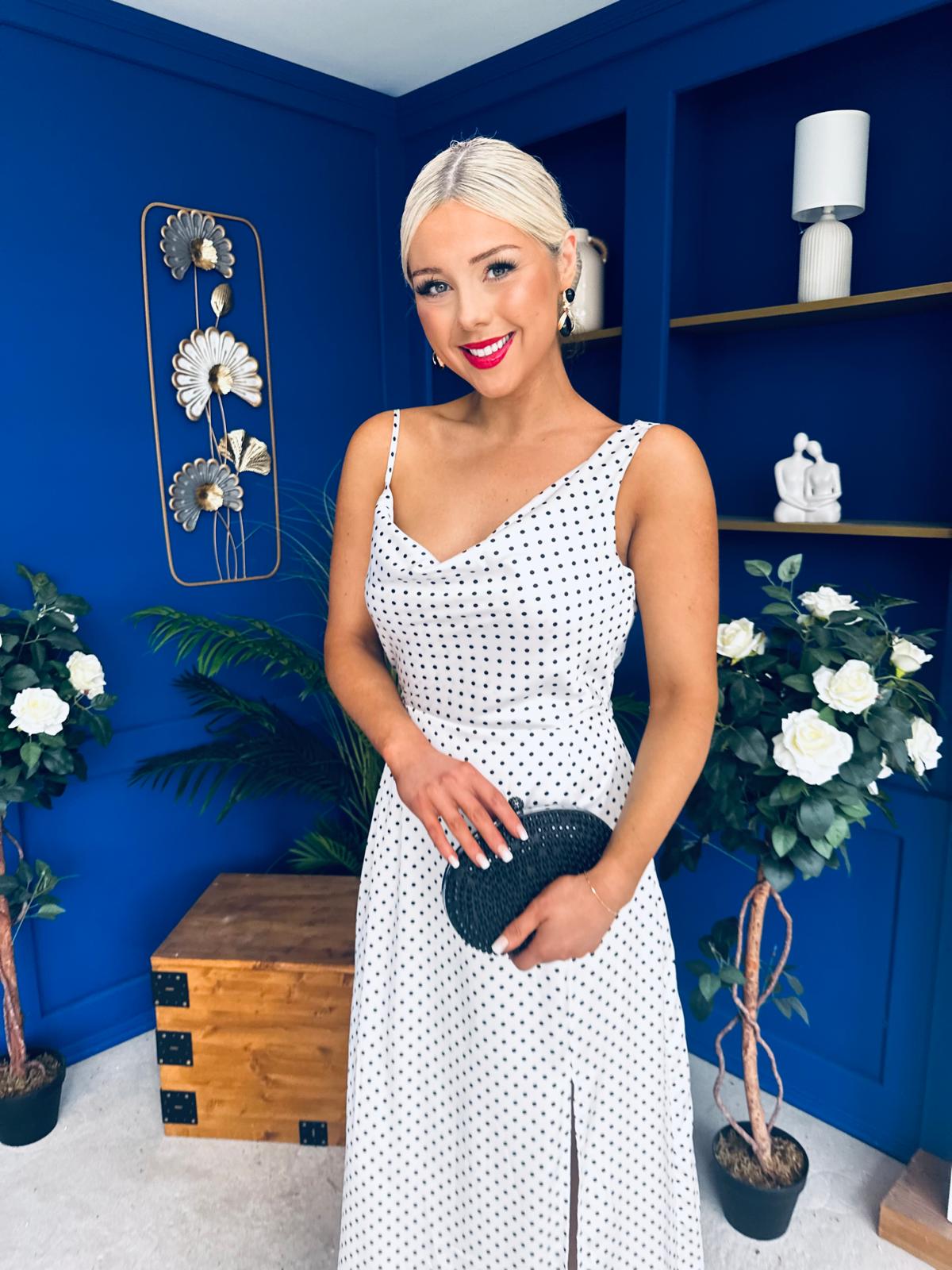 Senna Asymmetric Double Cowl Maxi Dress Polka White