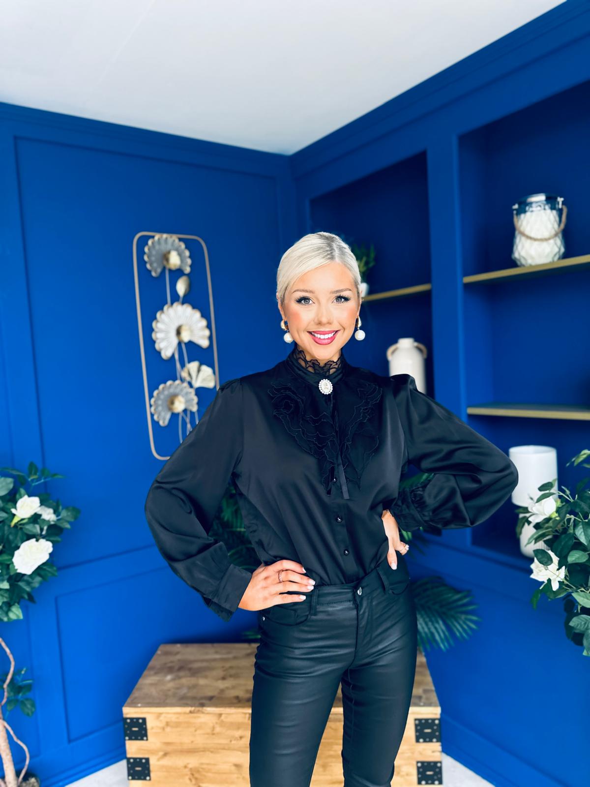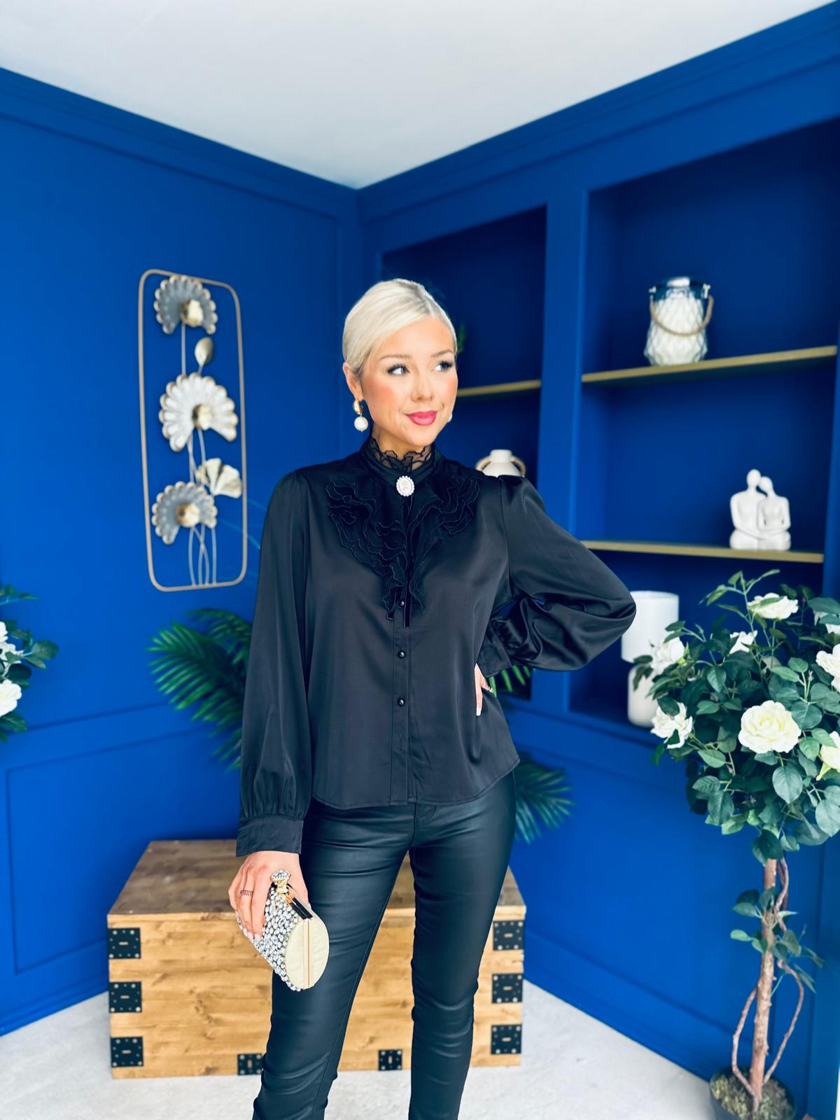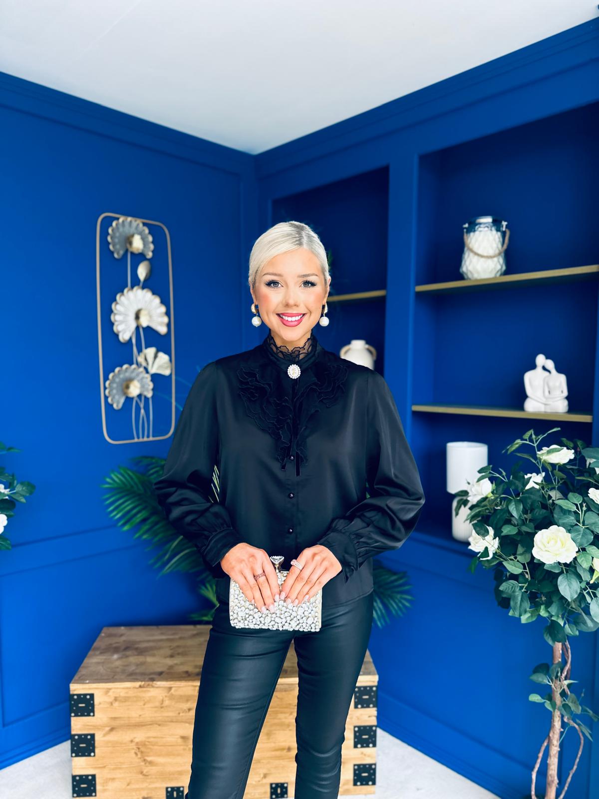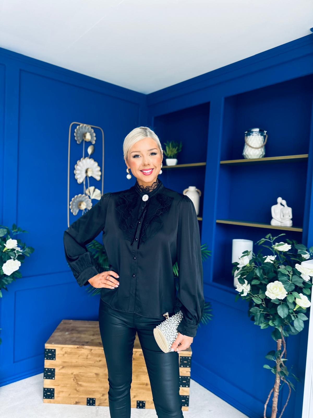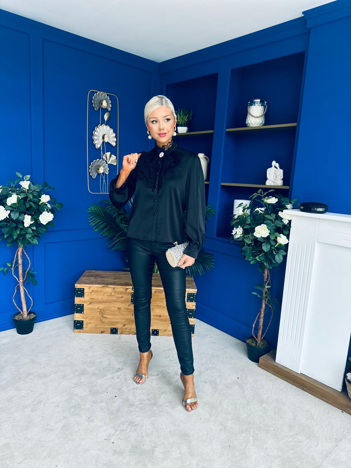 Crafted in a super soft premium silk feel material with organza detail & matching removable broach