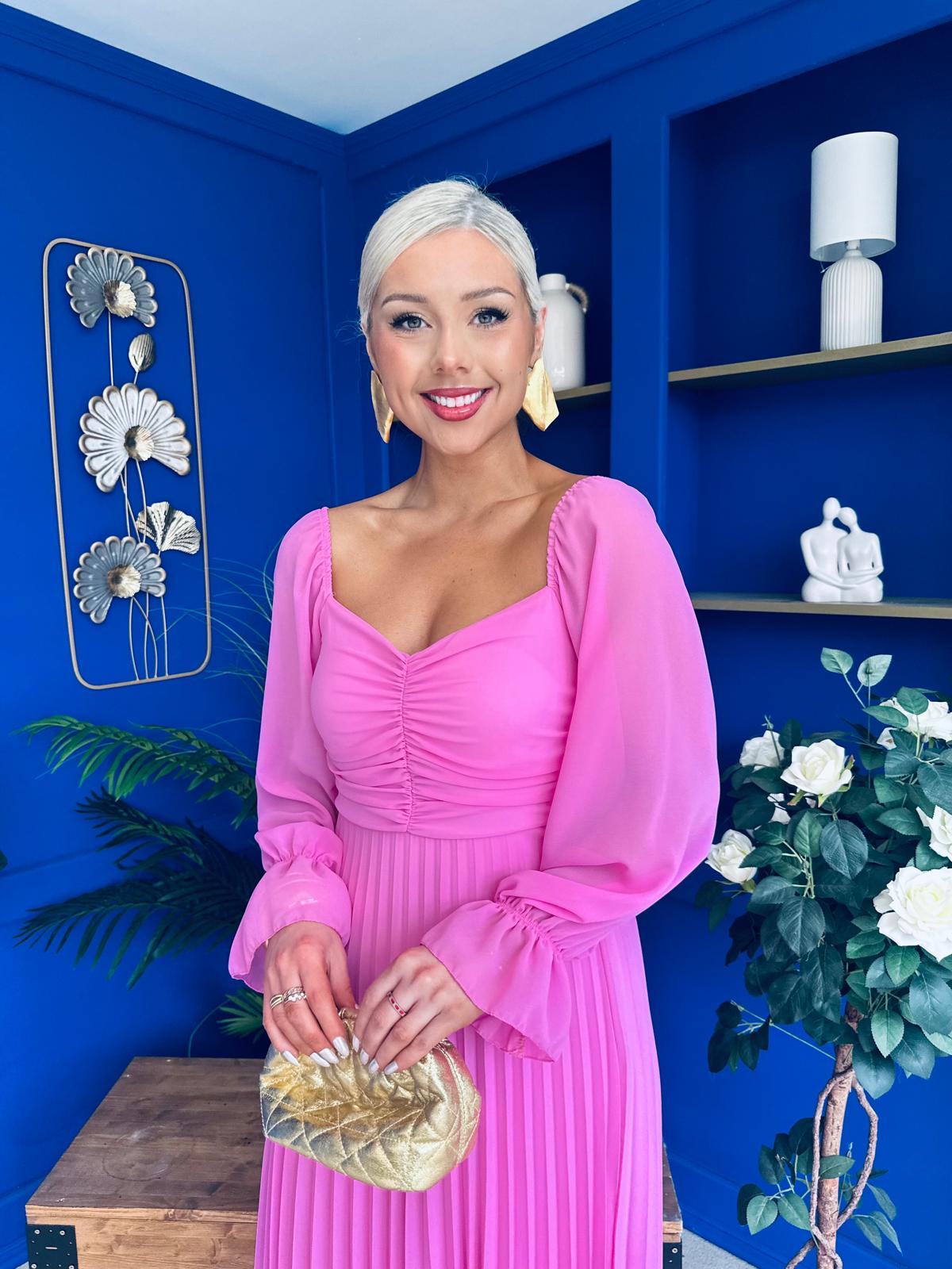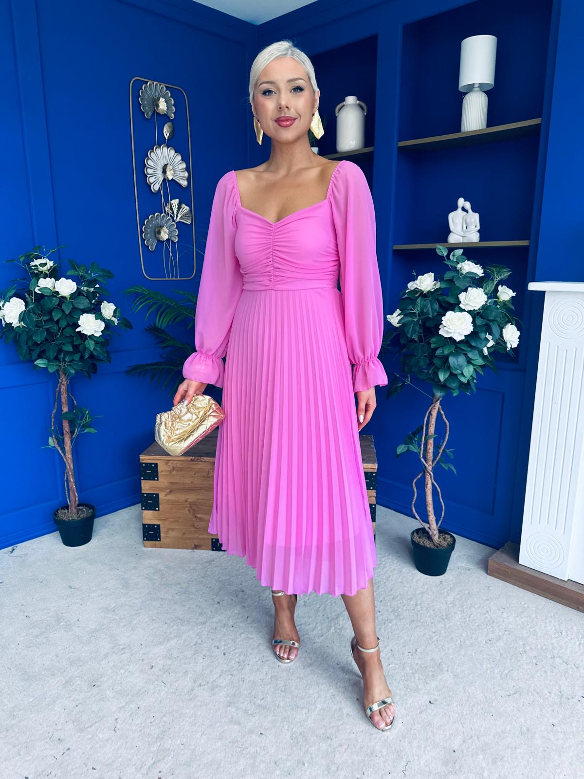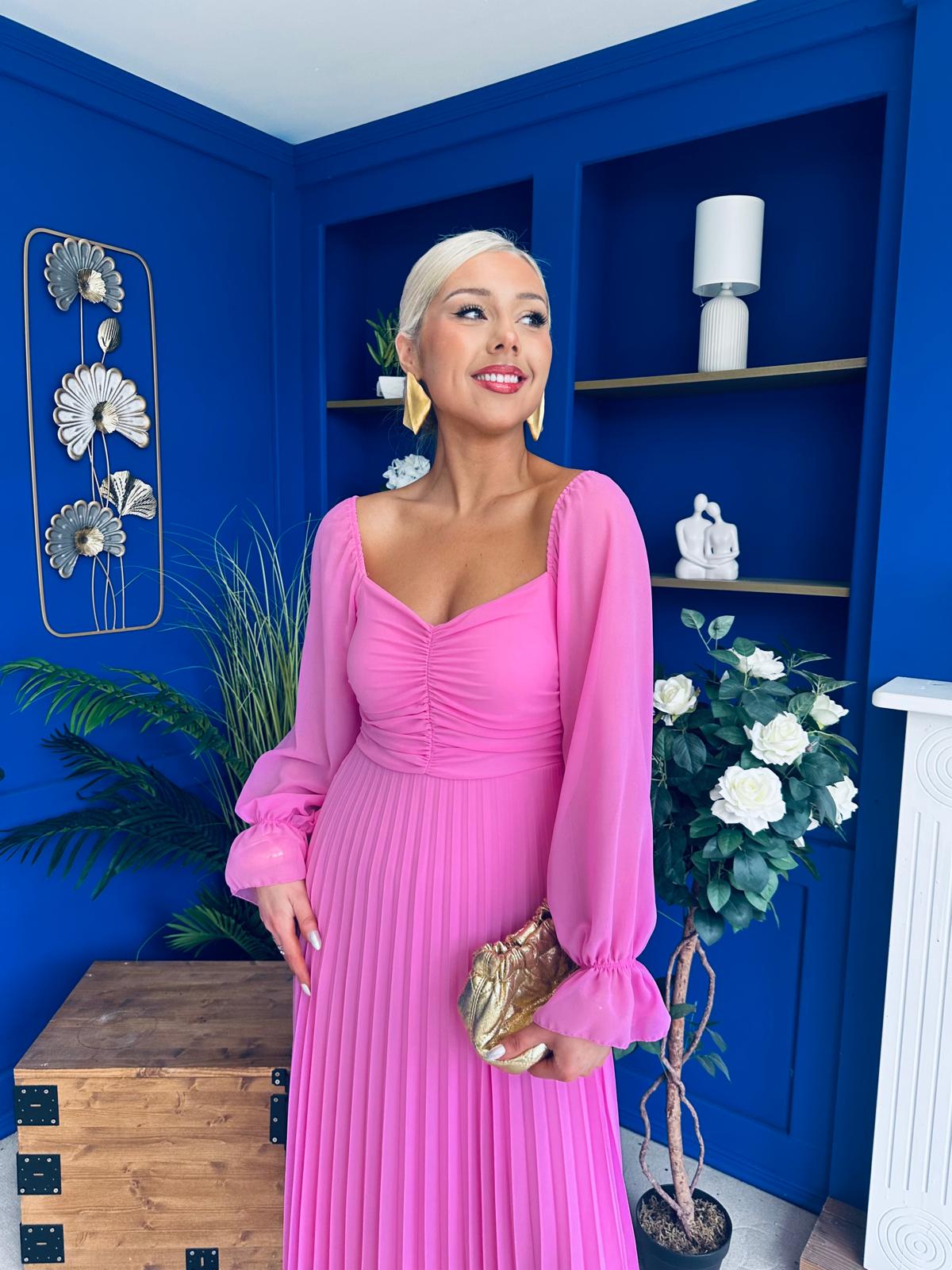 This dress comes in the most amazing bust detail, beautiful full sleeve, elasticated back to cinch and flowing pleated skirt to flatter