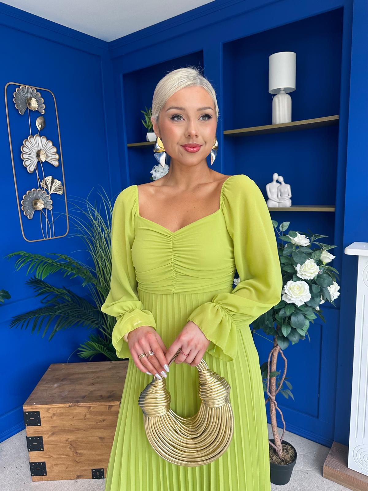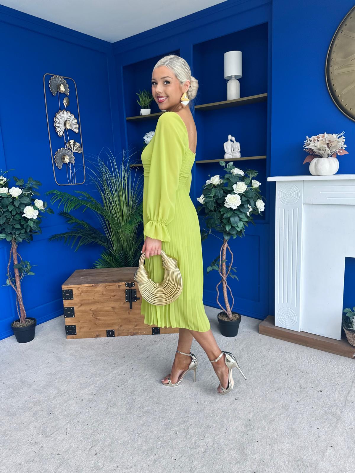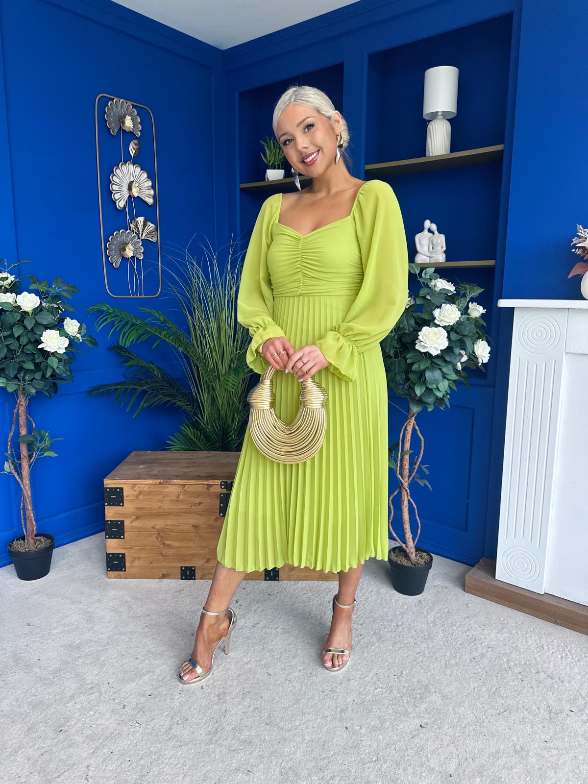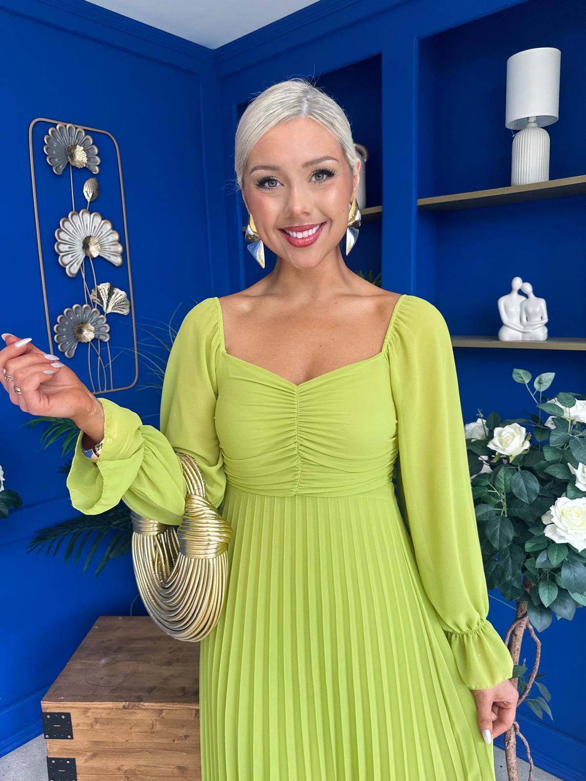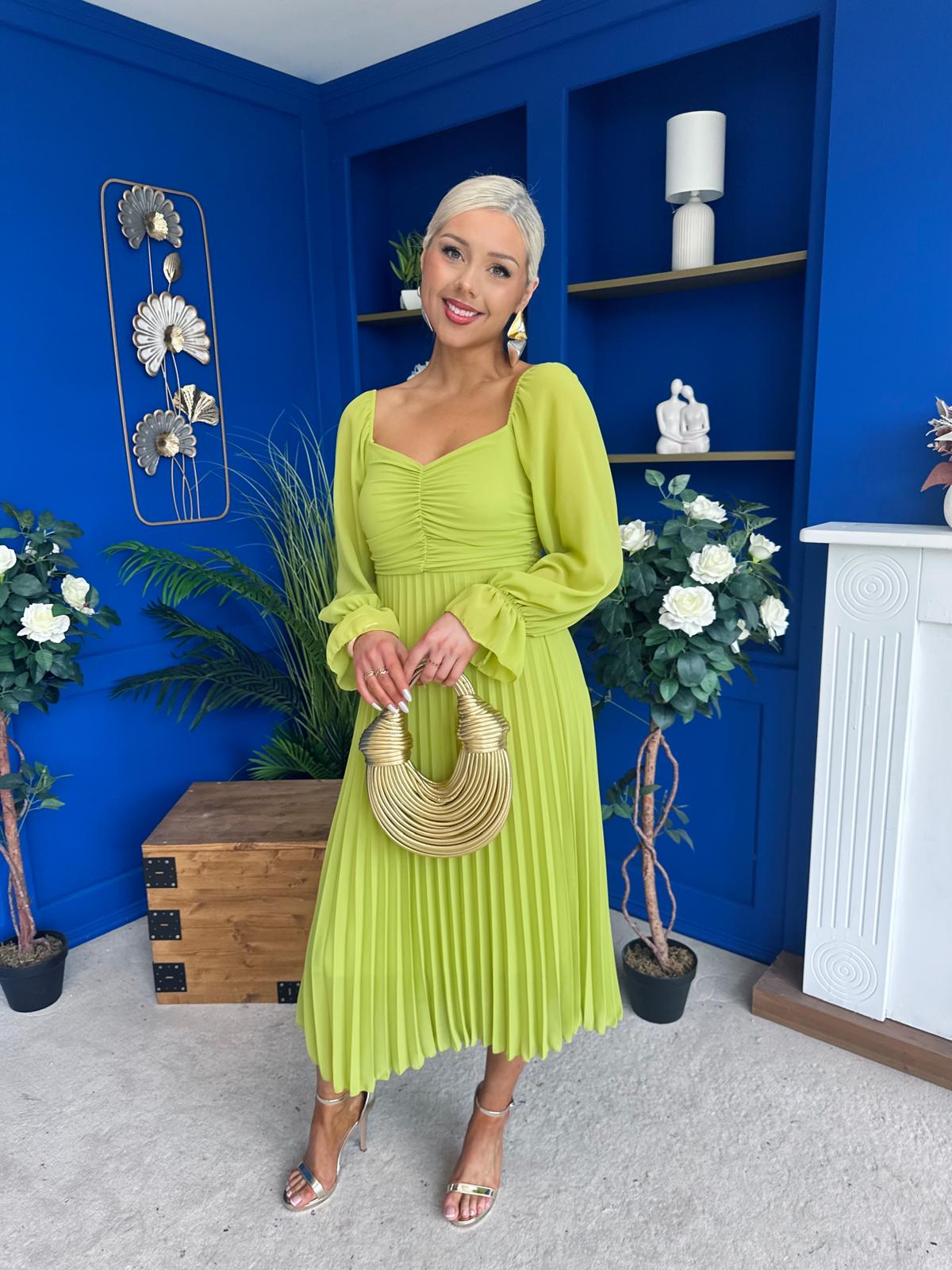 This dress comes in the most amazing bust detail, beautiful full sleeve, elasticated back to cinch and flowing pleated skirt to flatter