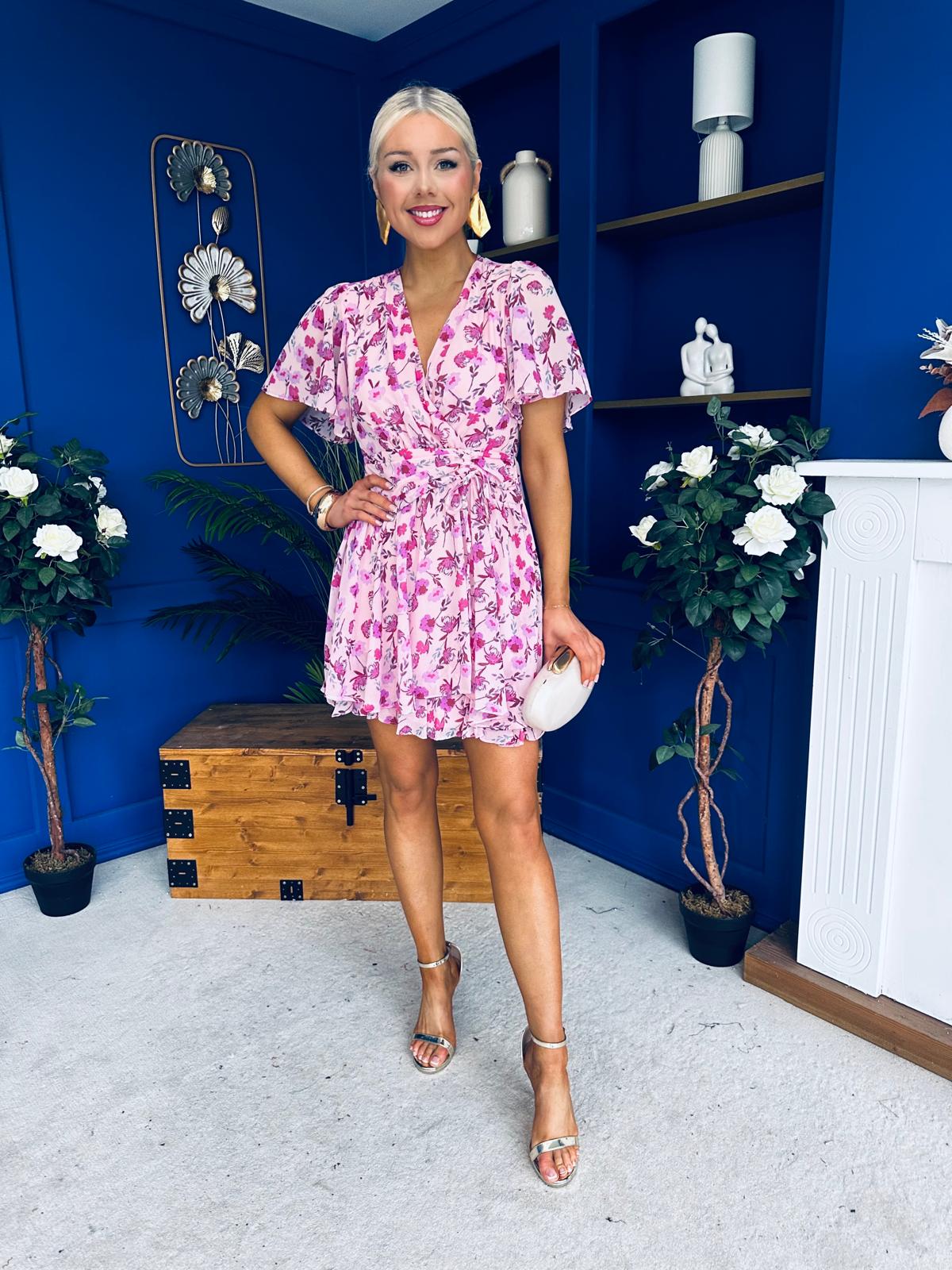 Skye Banded Mini Dress Floral Pink