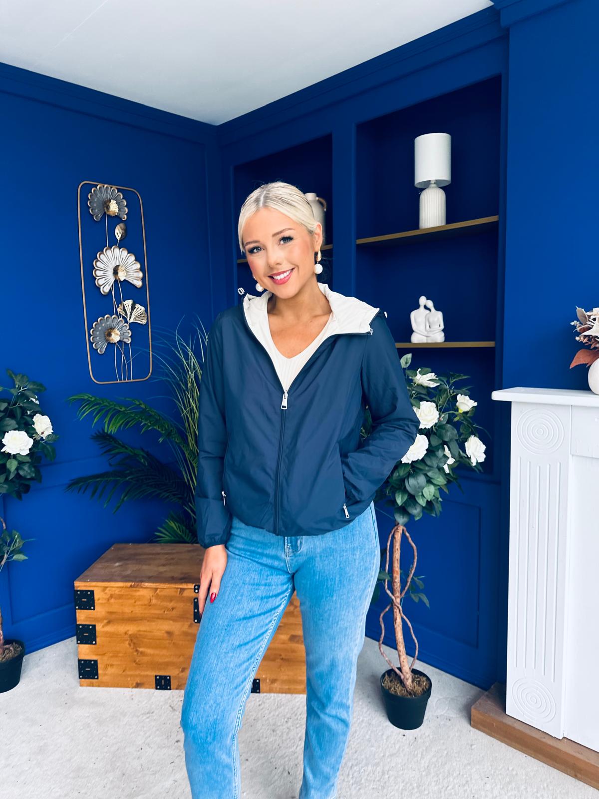 With the vibrant navy colour on one side this windbreaker can be reversed (pockets both sides) to cooler cream tone with the vibrant colour just on the trim.