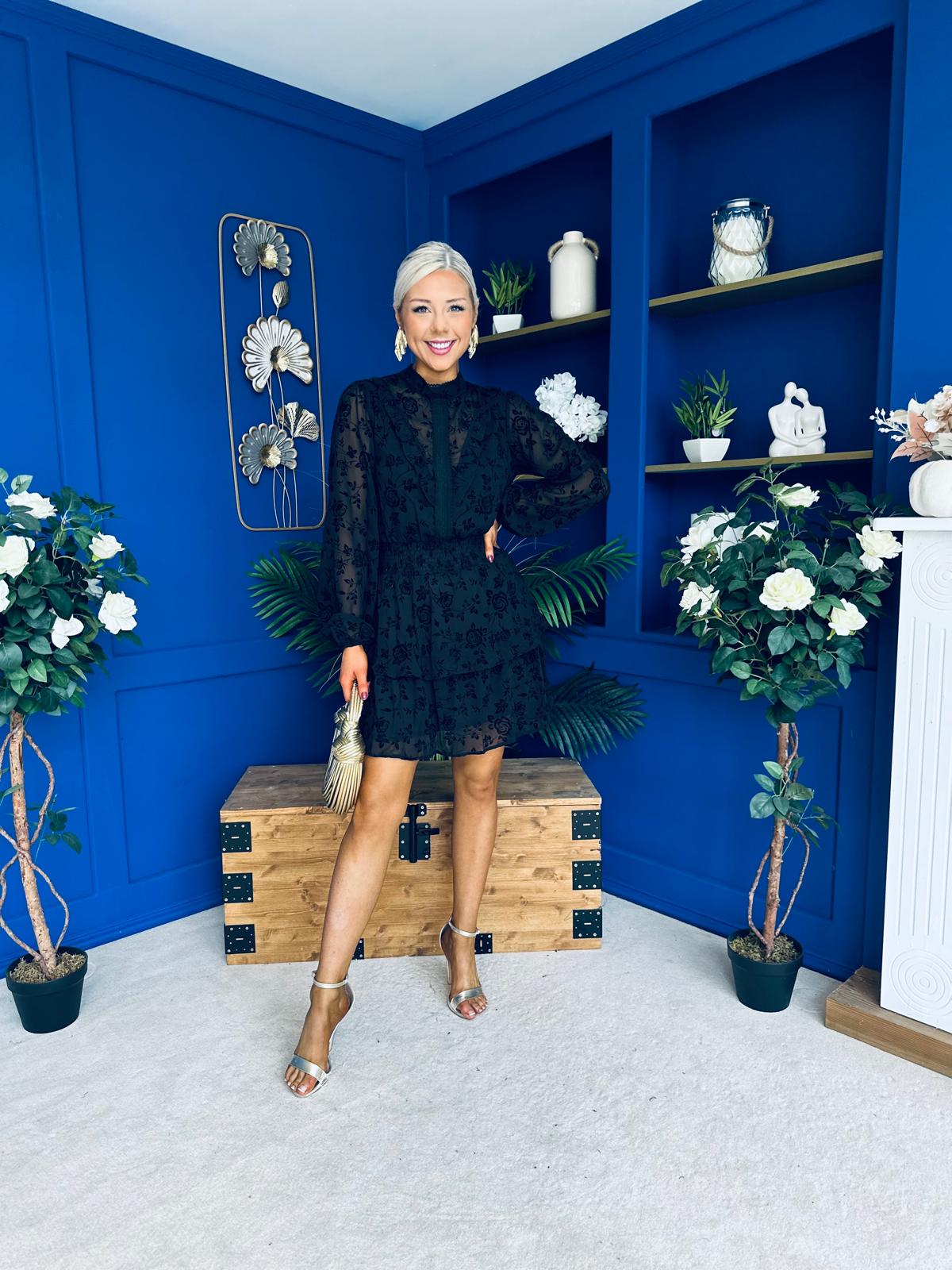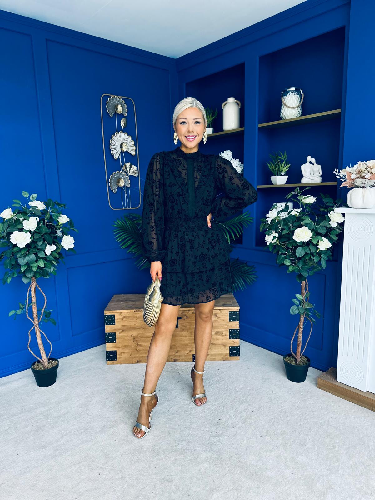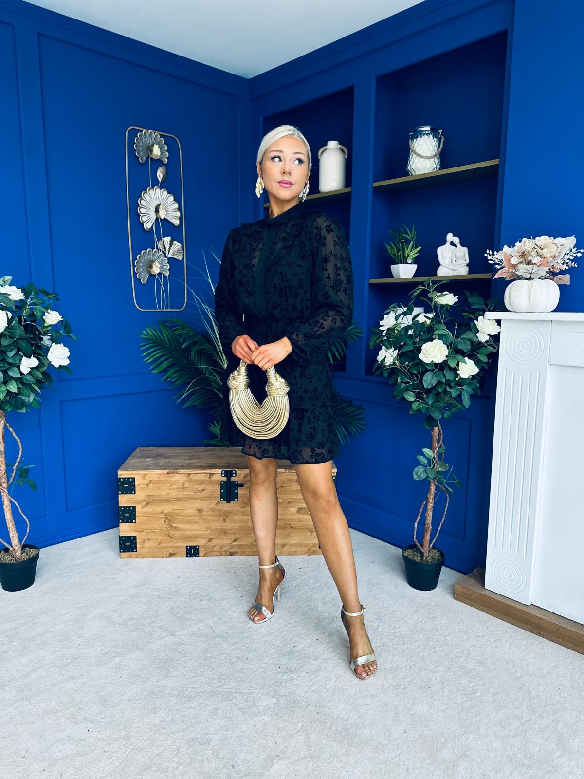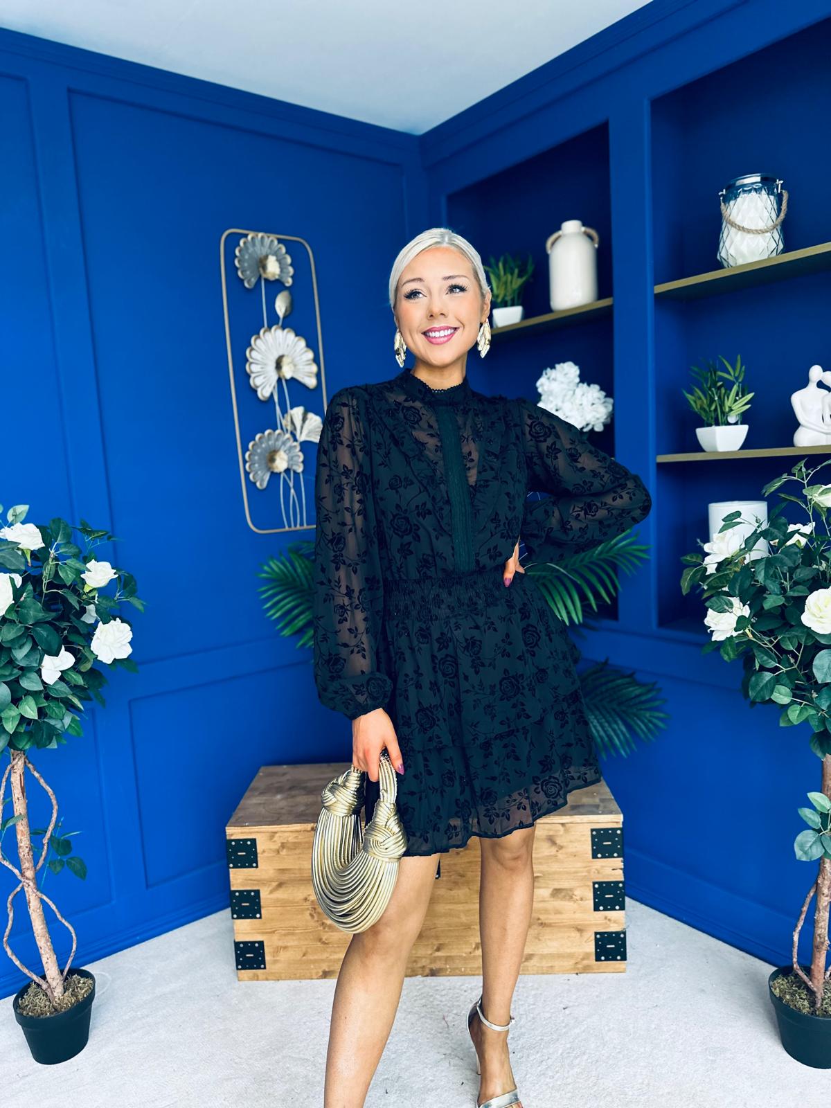Stacey High Neck Mini Dress Burnout Black