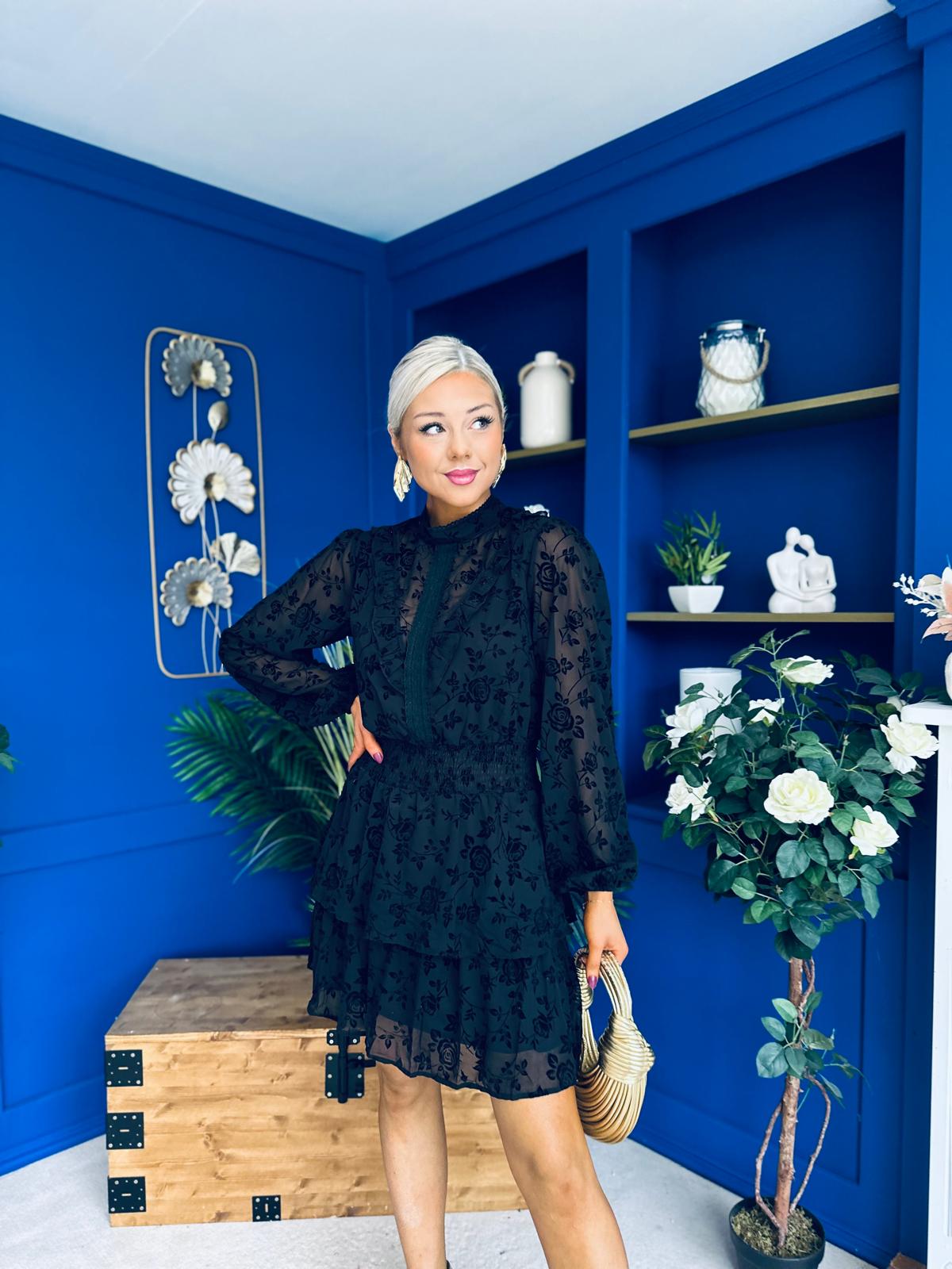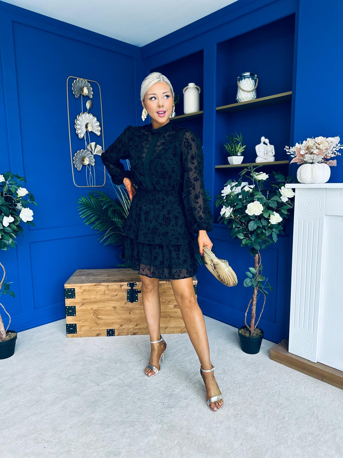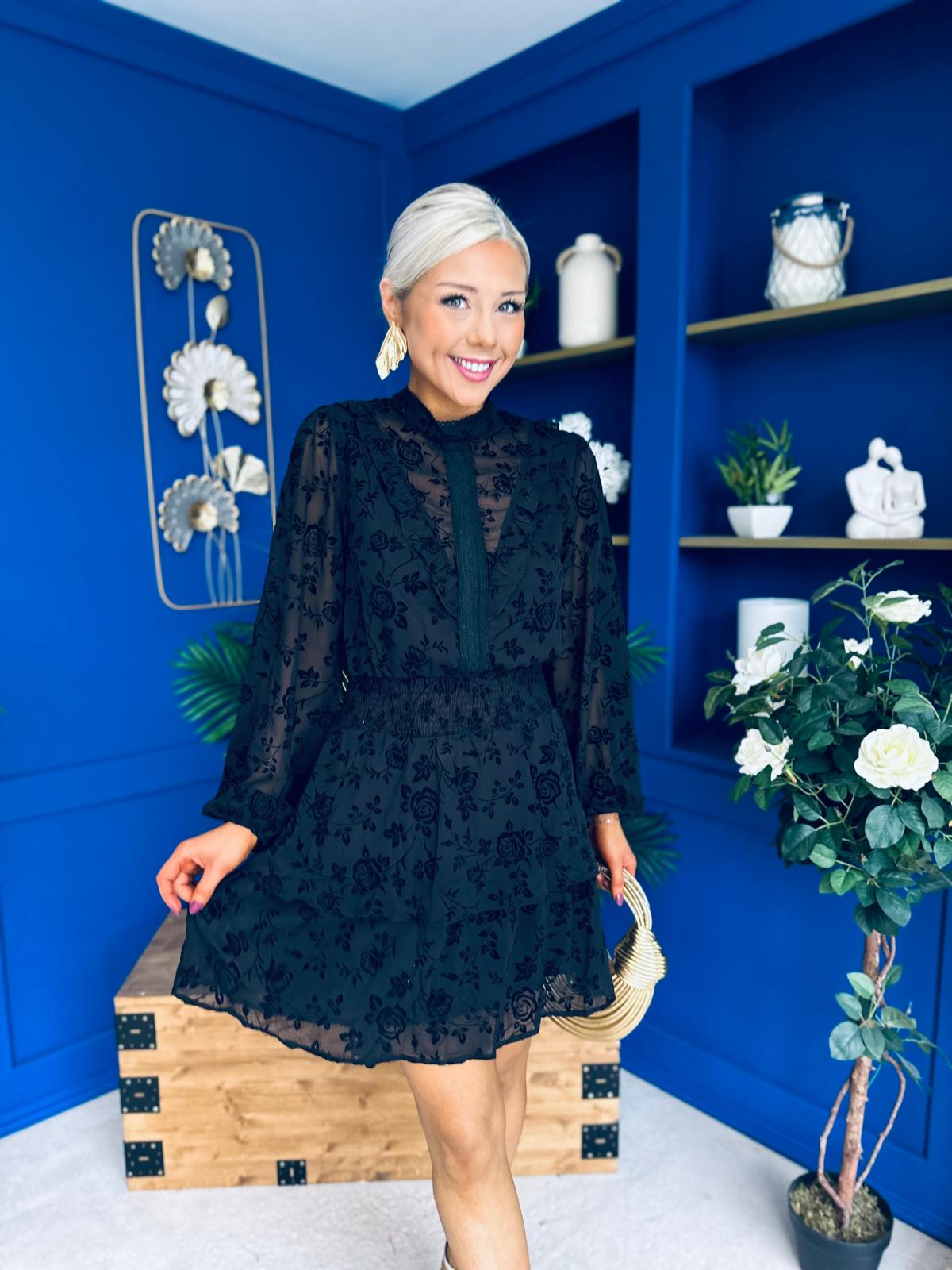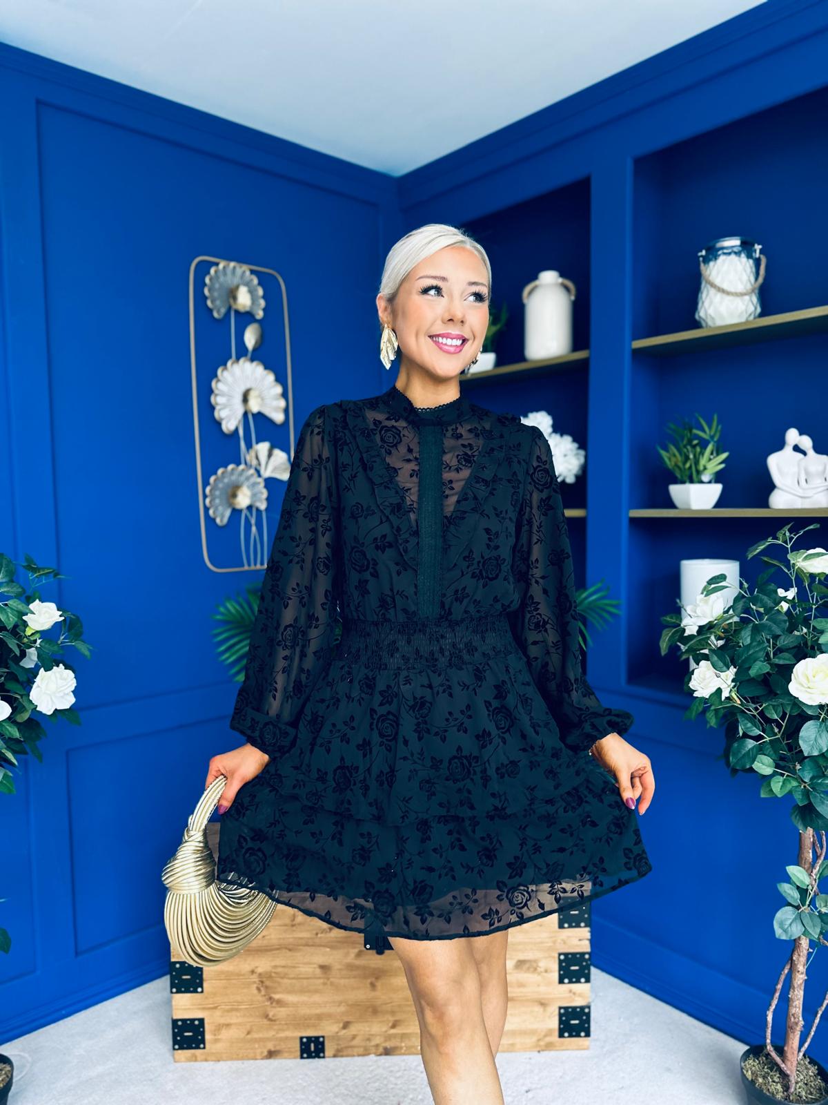 Stacey High Neck Mini Dress Burnout Black