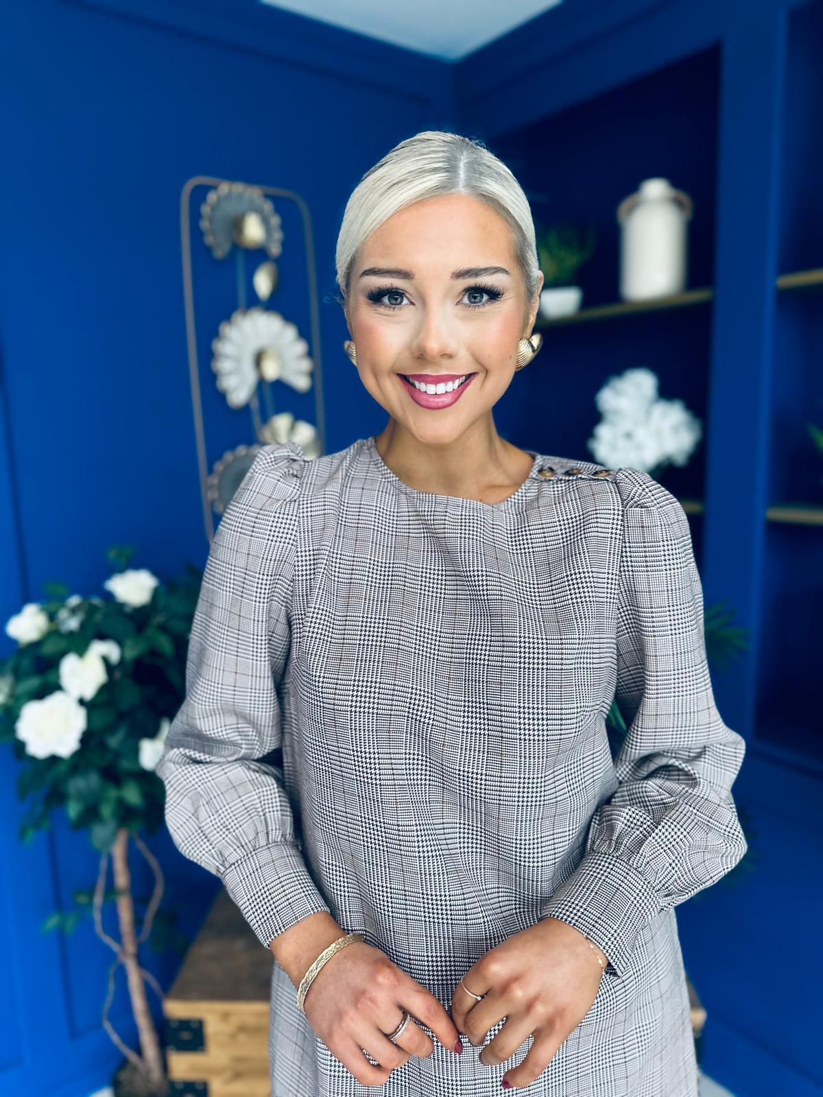 Crafted in a shape holding material, button detailing, full detailed sleeve and flowing skirt create a stand out country chic look
