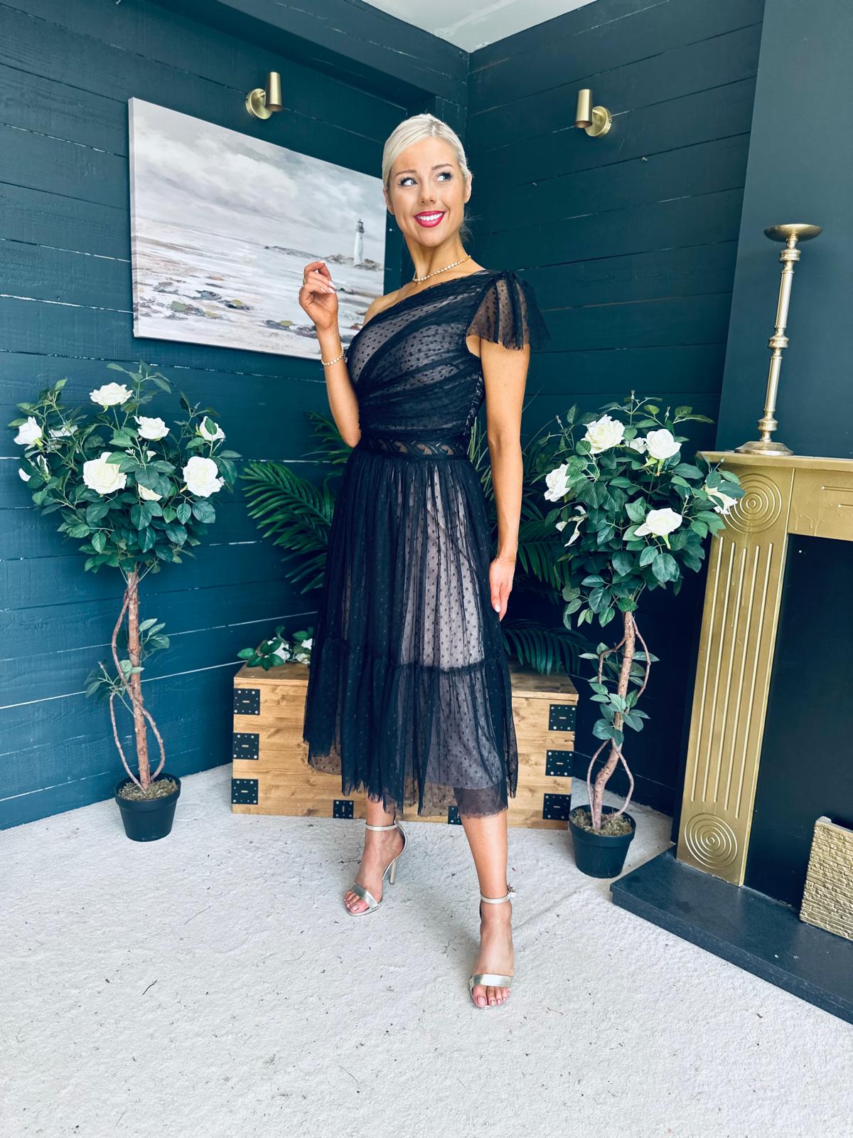 Suzan Occasion Tulle Midi Dress Black