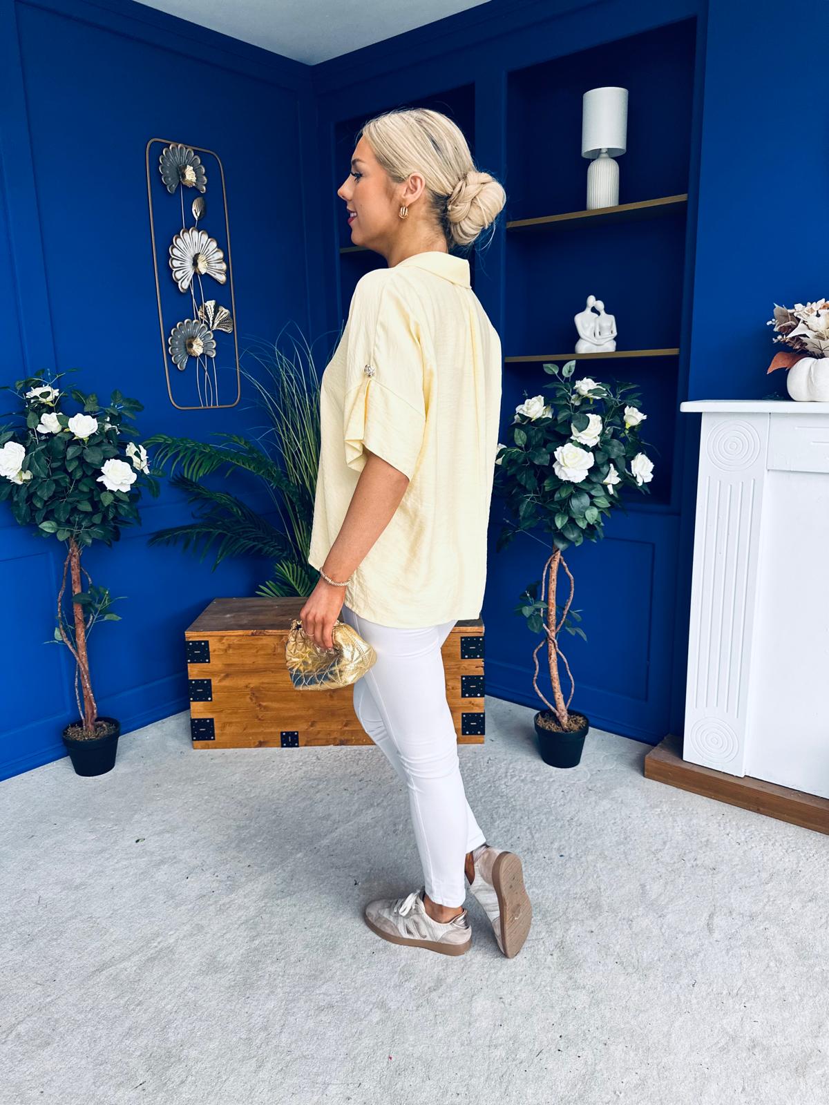Suzanne Detailed Shirt Collar Top Yellow