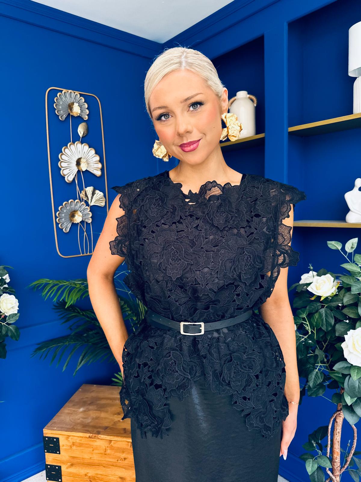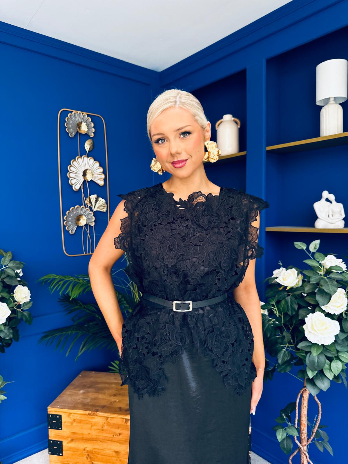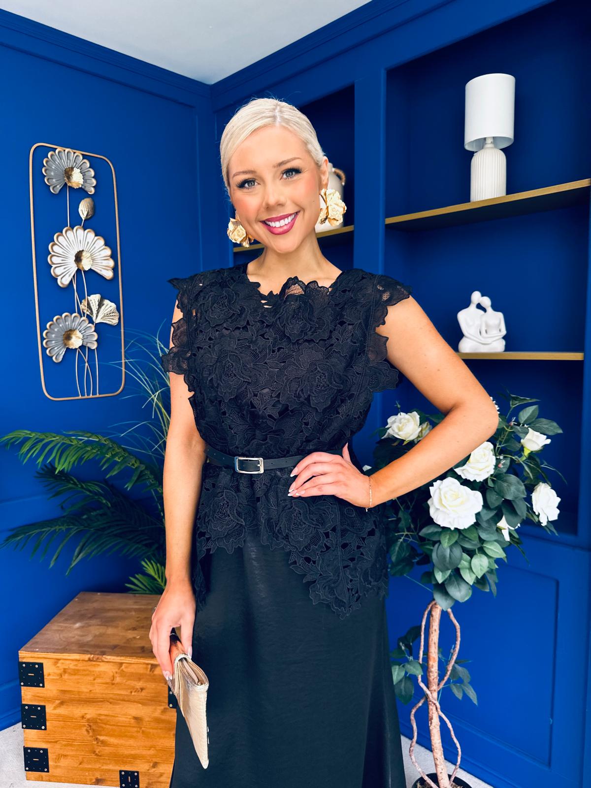 Tara Crochet Top & Satin Dress Set Black
