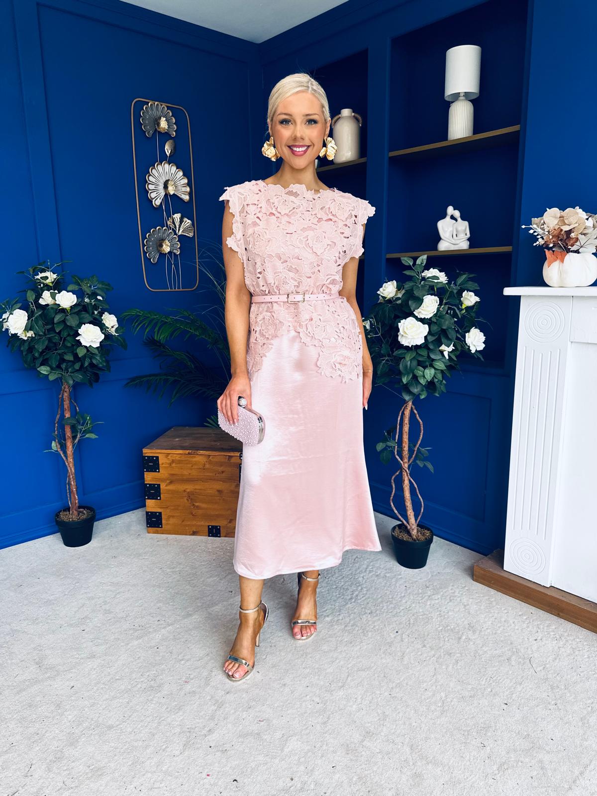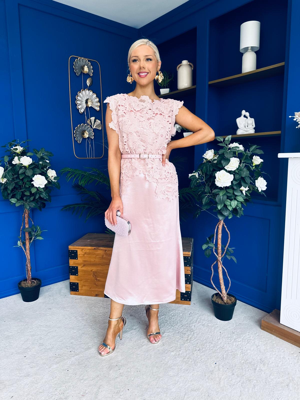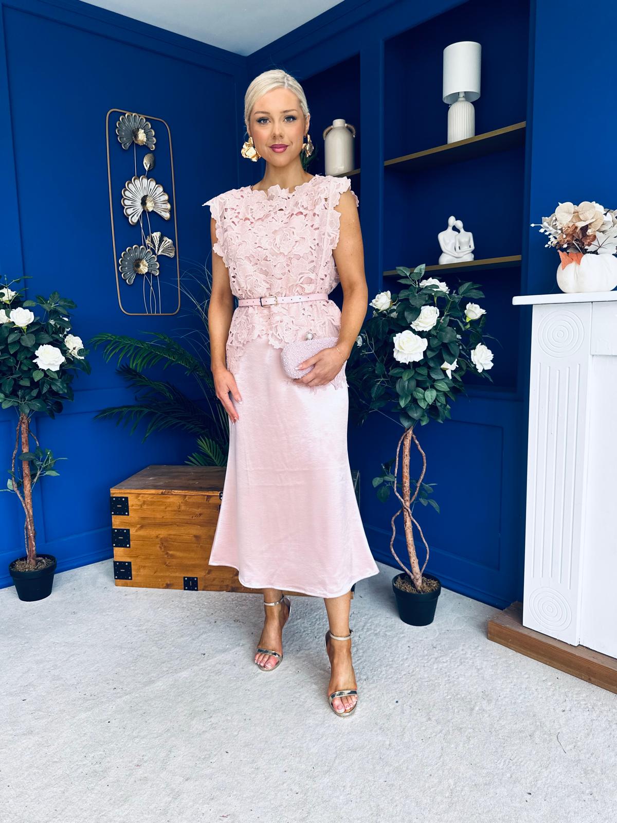 Tara Crochet Top & Satin Dress Set Pink