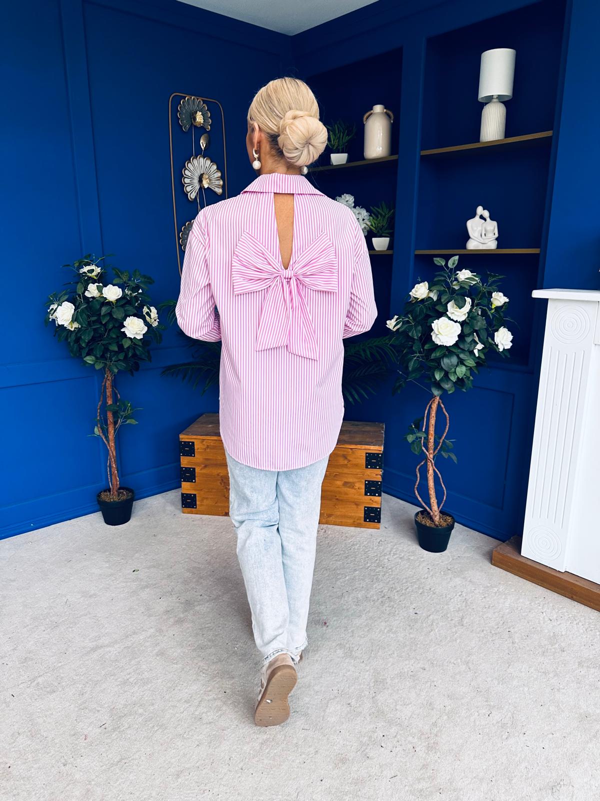 Verona Bow Detail Pin Stripe Shirt Pink