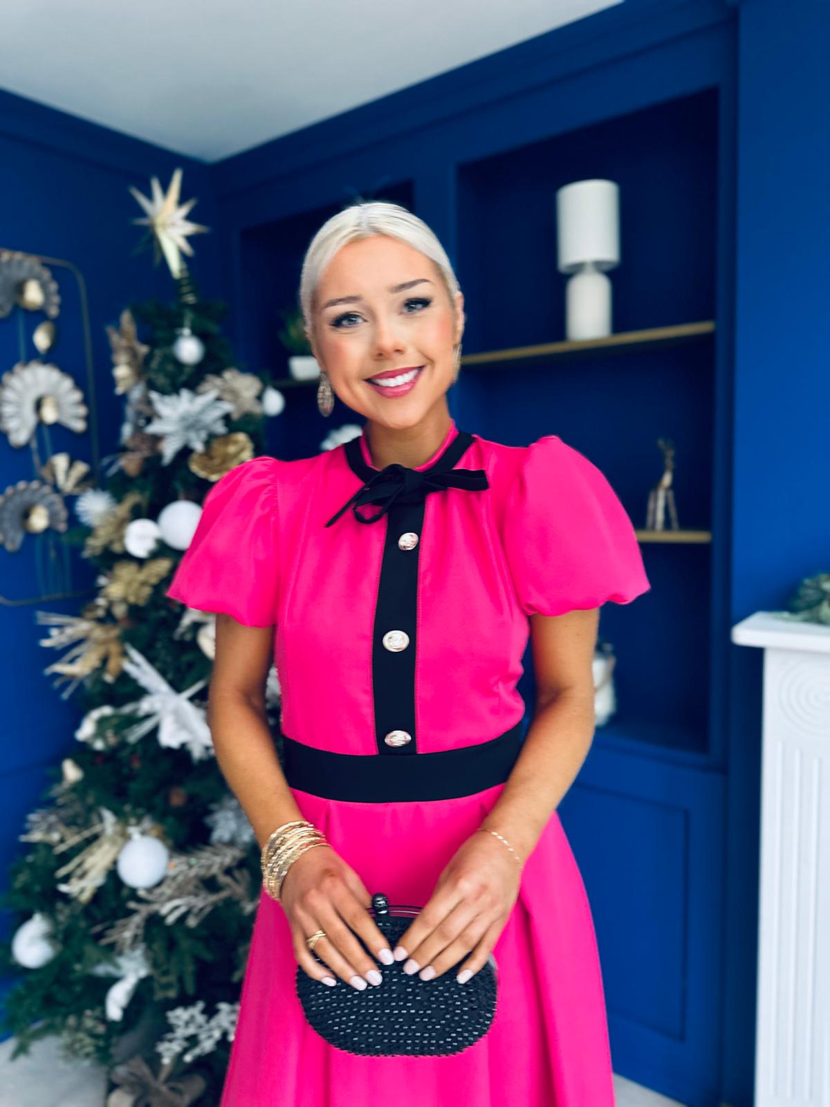 Vicky Detailed Occasion Midi Dress Raspberry Pink