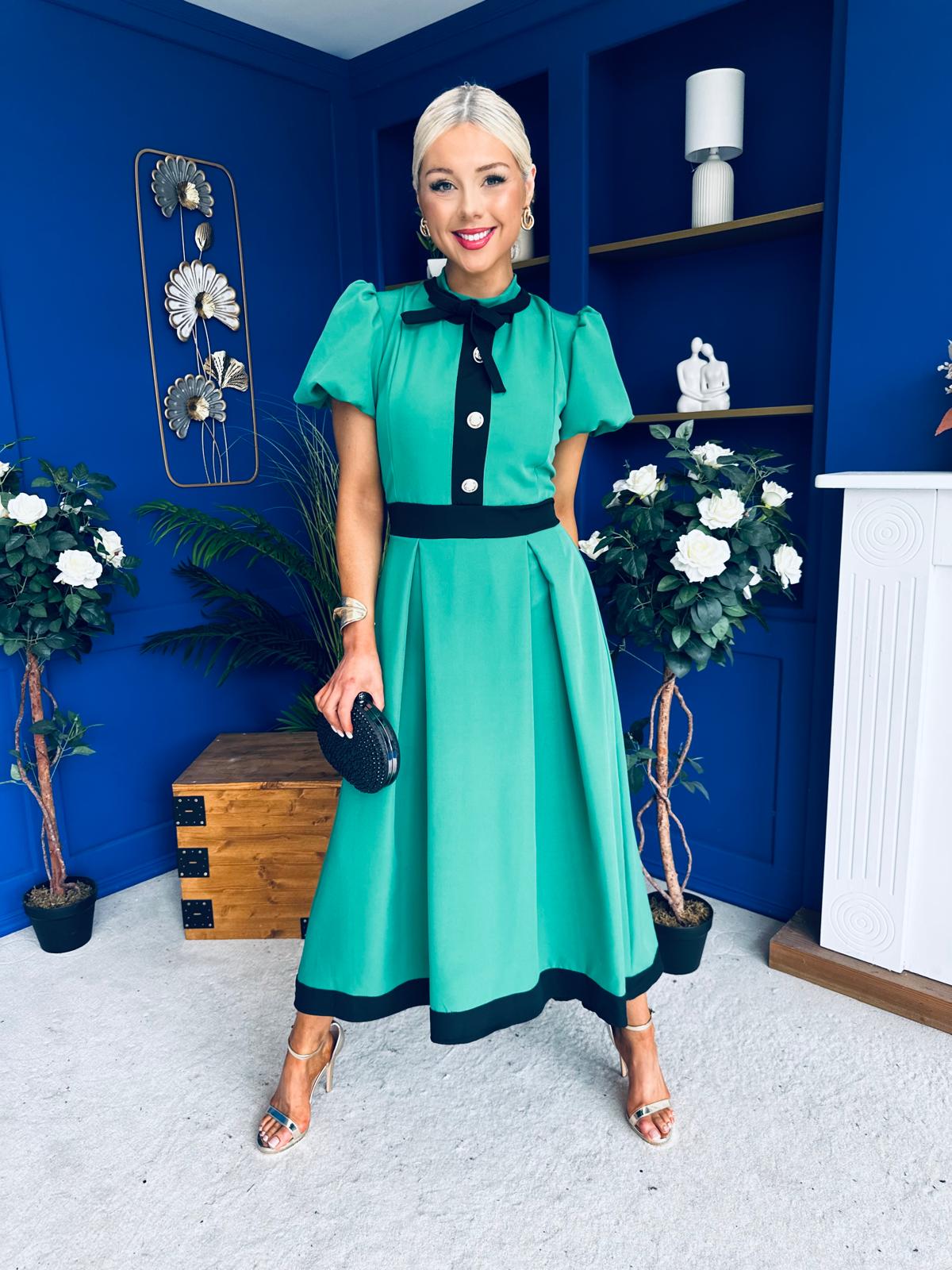 Vicky Puff Sleeve Occasion Midi Dress Emerald