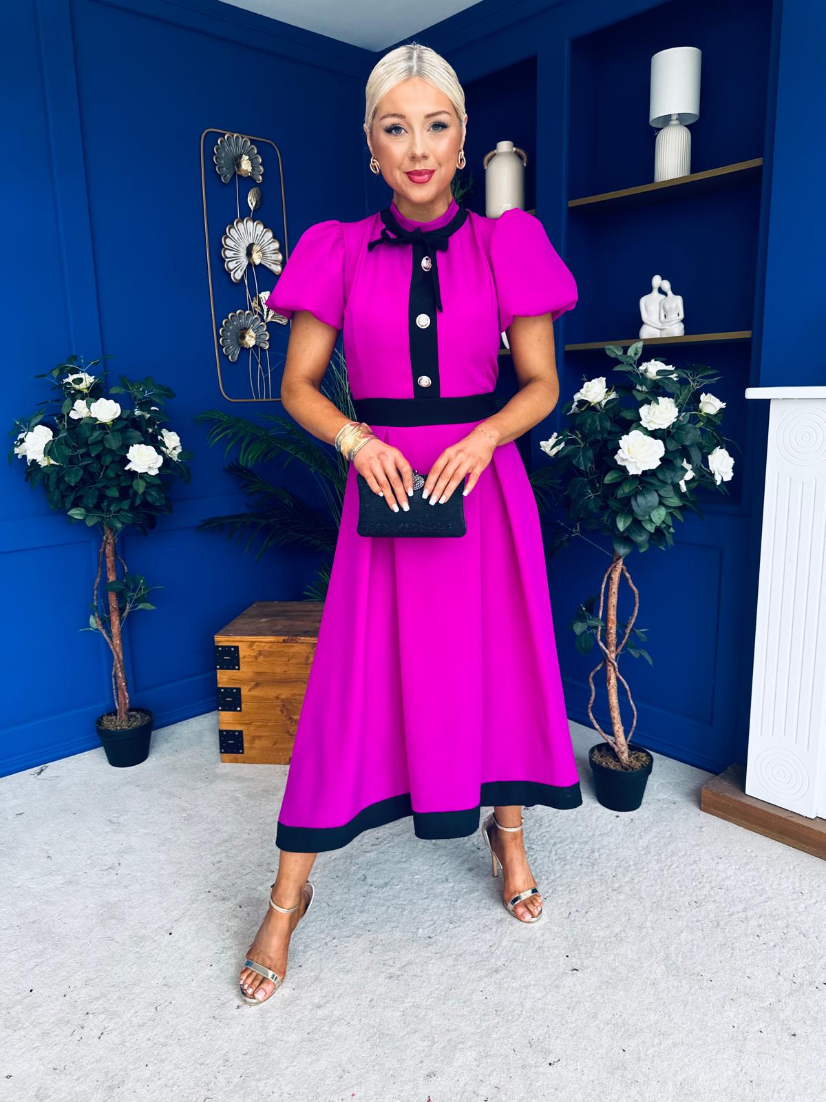 Vicky Puff Sleeve Occasion Midi Dress Orchid