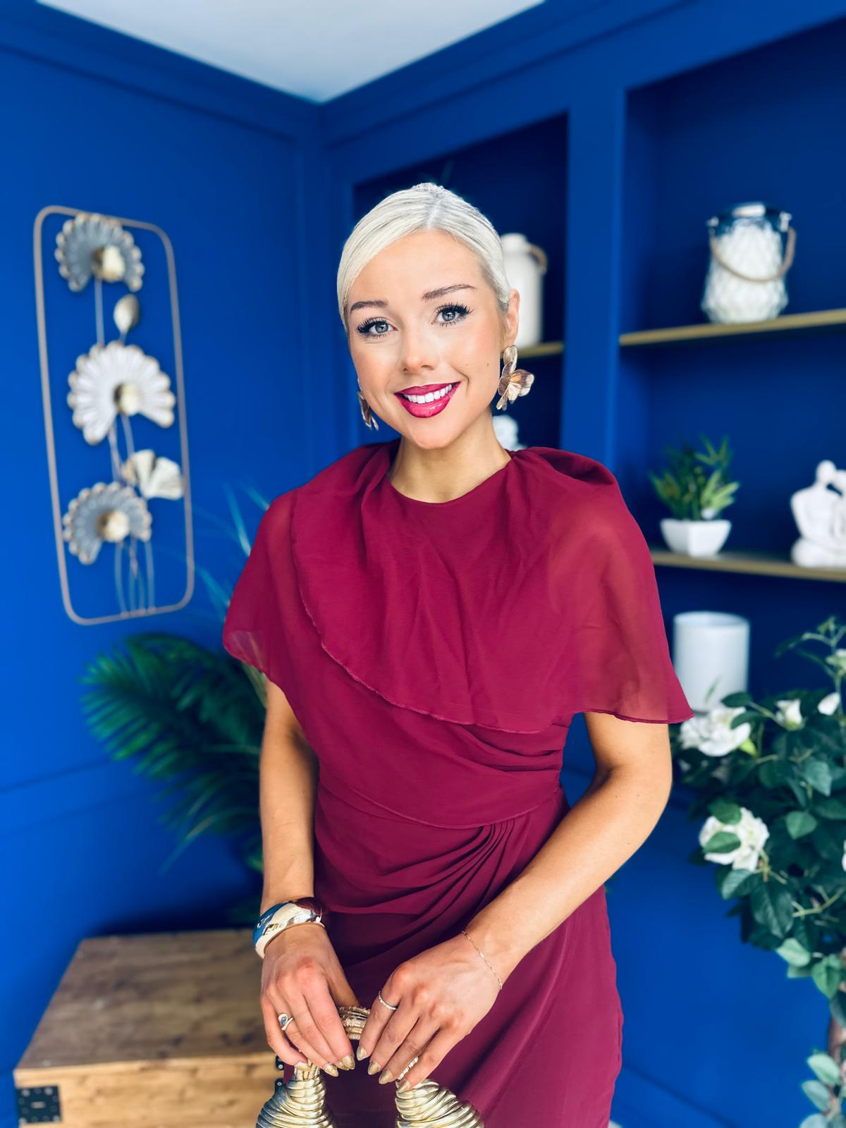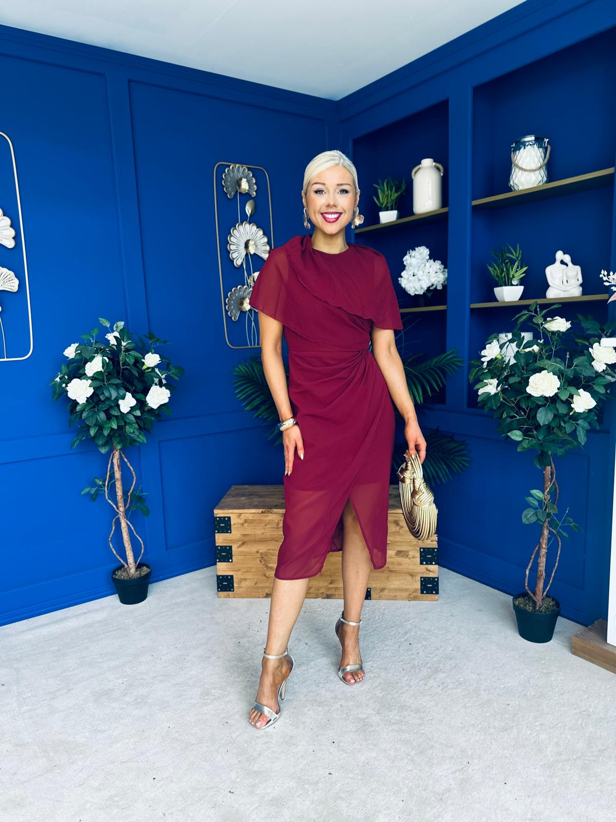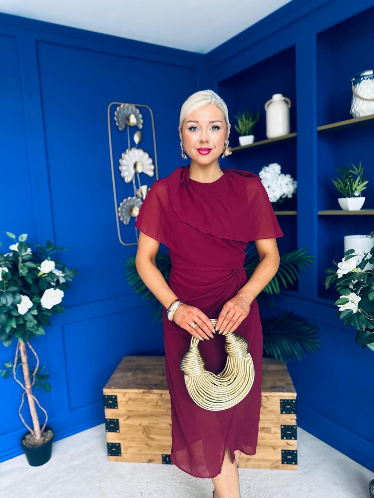 Vivienne Cape Detail Wrap Skirt Midi Dress Wine