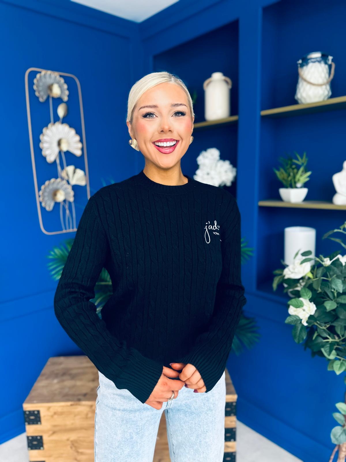 Super soft ropeknit material. Complete with embroidery detail "J'adore You"