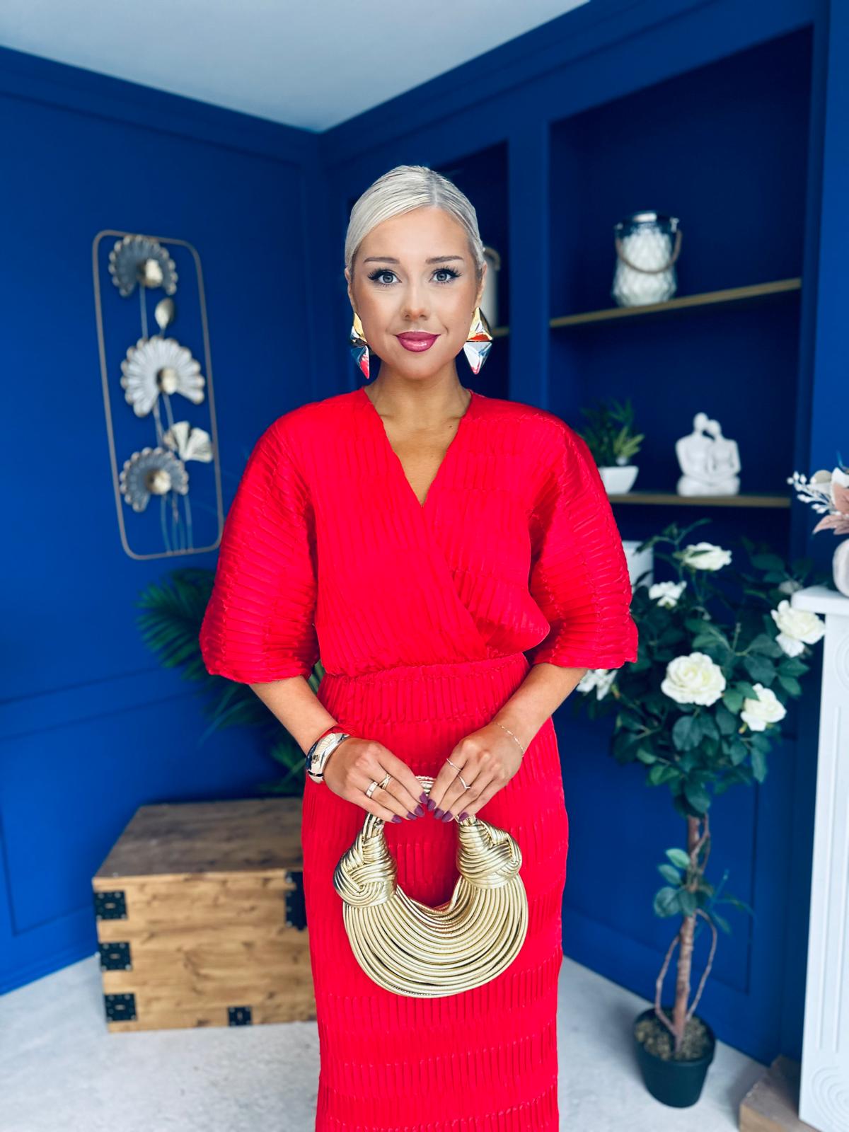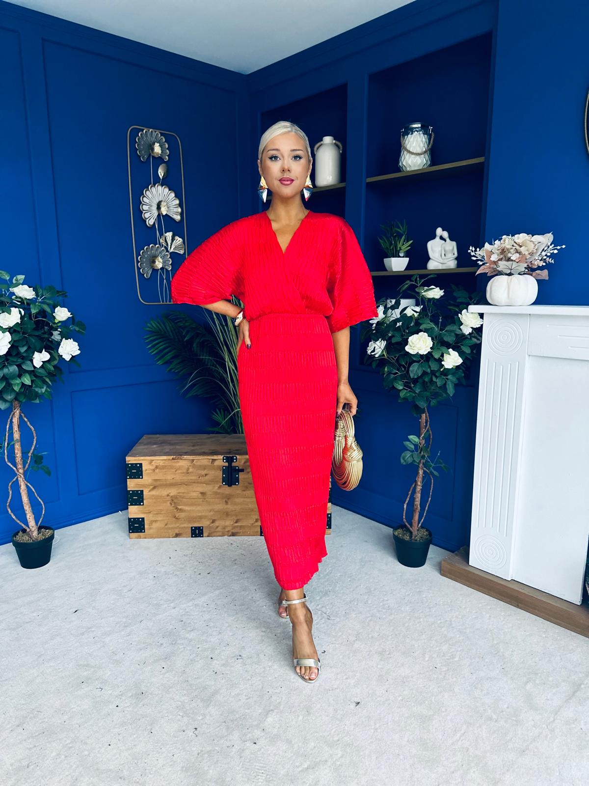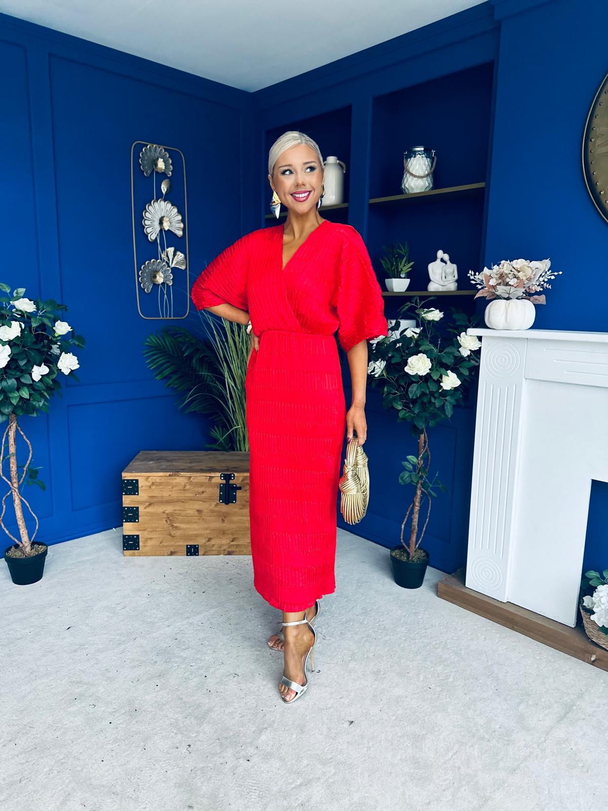 Willow Plisse Detail Midi Dress Red