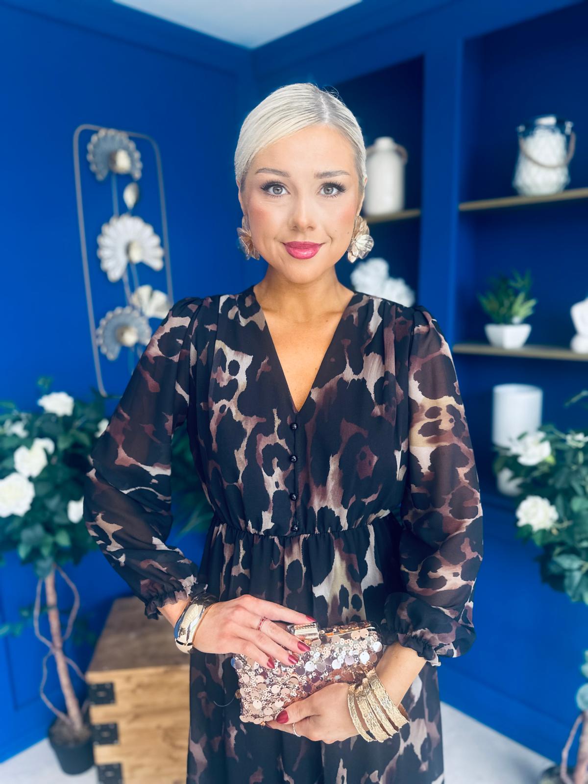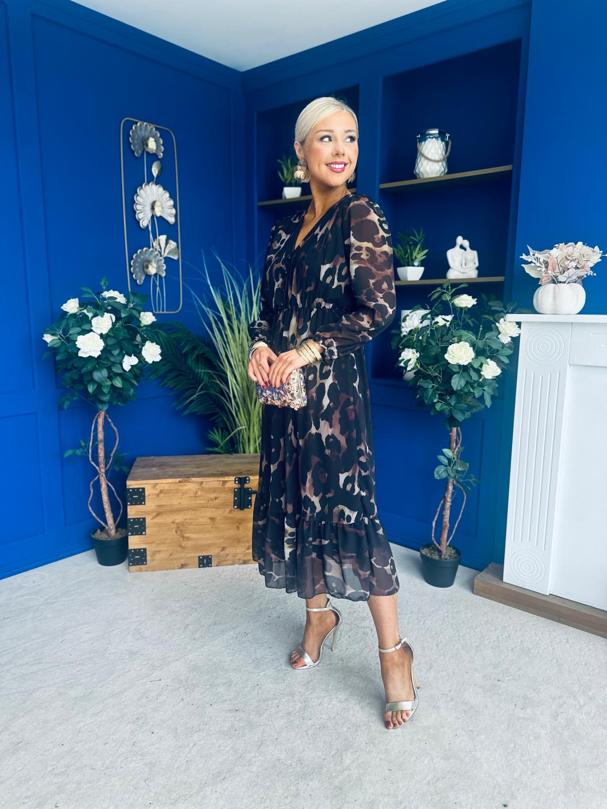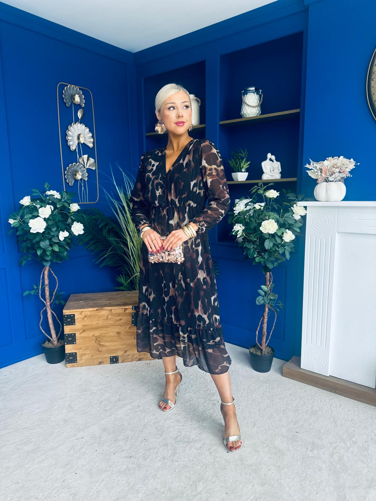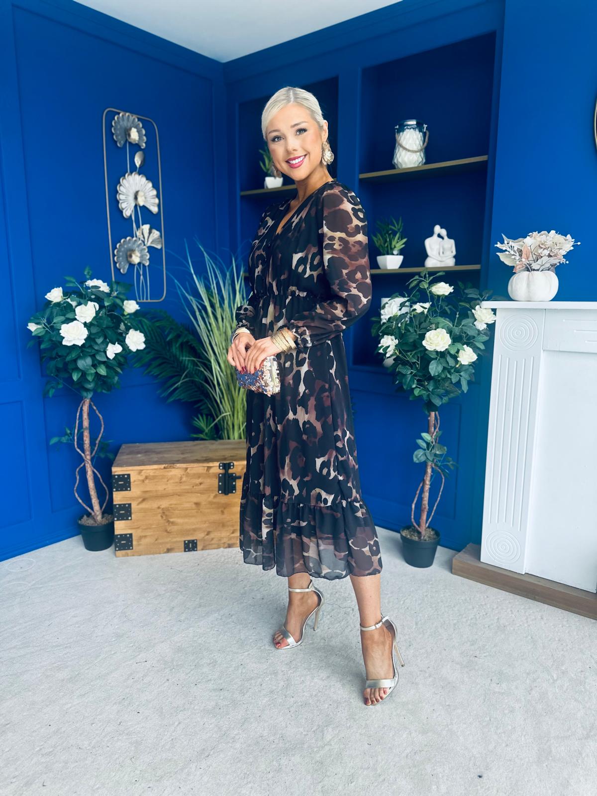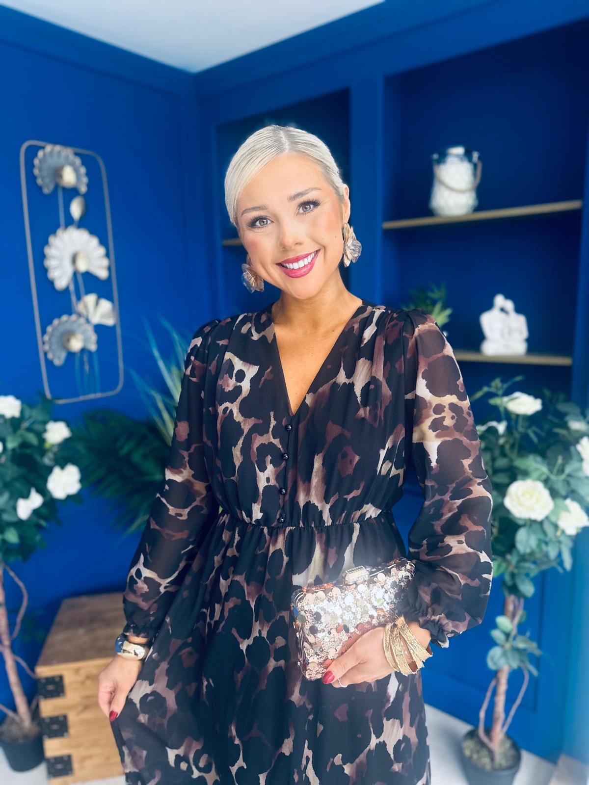 ThisĀ dress has a beautiful full sleeve, V neckline, button detail to bust, banded midriff, elasticatedĀ back panel and flowing skirt for a statement silhouette and a flattering look, this dress will make you feel and look your best.Ā
